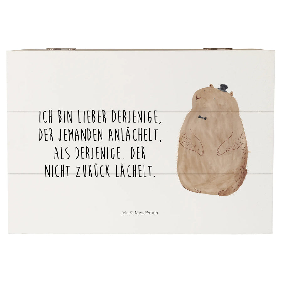 Skrzynia drewniana Świstak - 22 x 15 cm - z napisem - biały