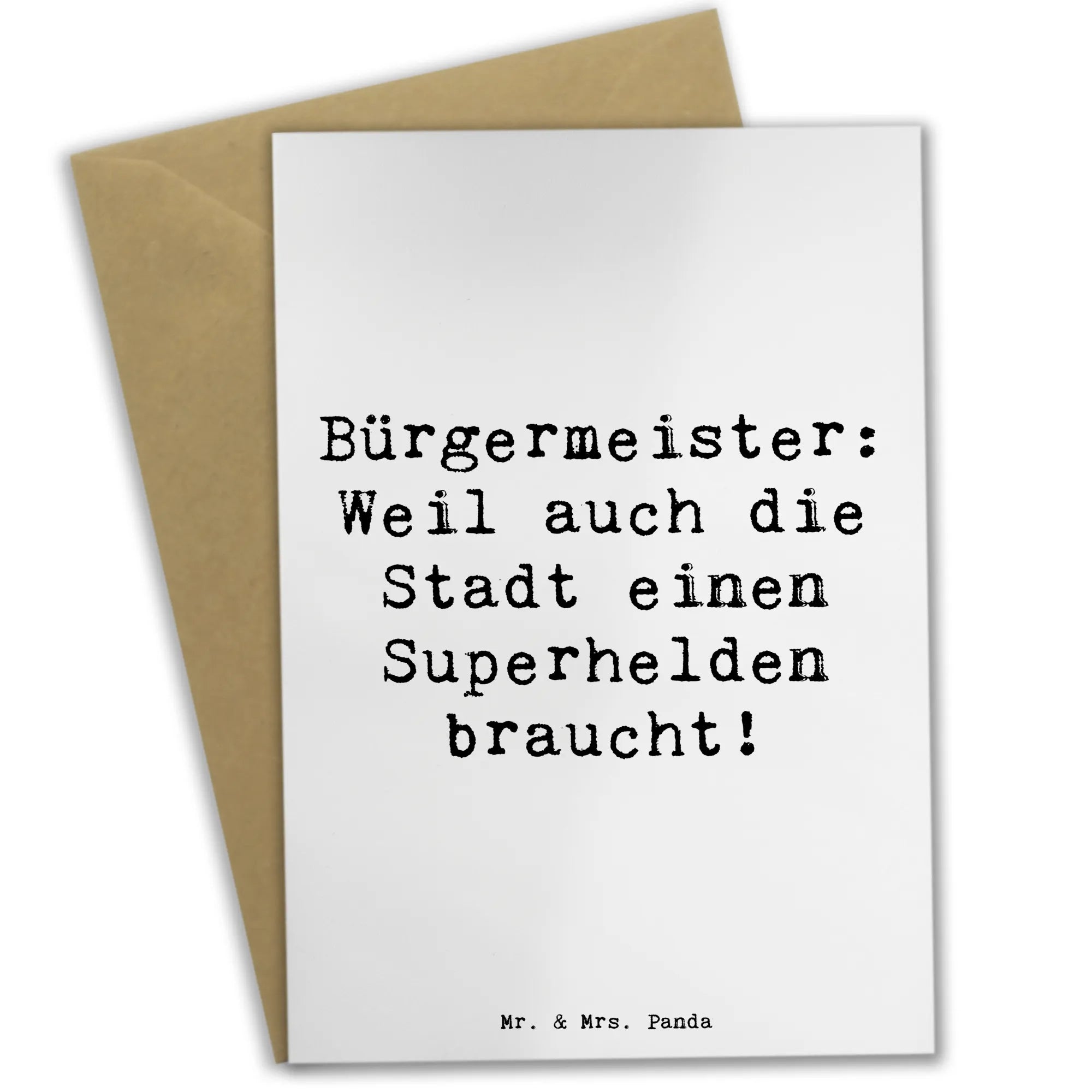 Die Grußkarte "Bürgermeister: Weil auch die Stadt einen Superhelden braucht!" von Mr. & Mrs. Panda ist das perfekte Geschenk für alle, die eine Wertschätzung oder einen herzlichen Glückwunsch aussprechen möchten. Ob zum Berufswechsel, zum Geburtstag oder einfach nur, um jemandem ein Lächeln ins Gesicht zu zaubern – diese Karte passt für jeden Anlass!