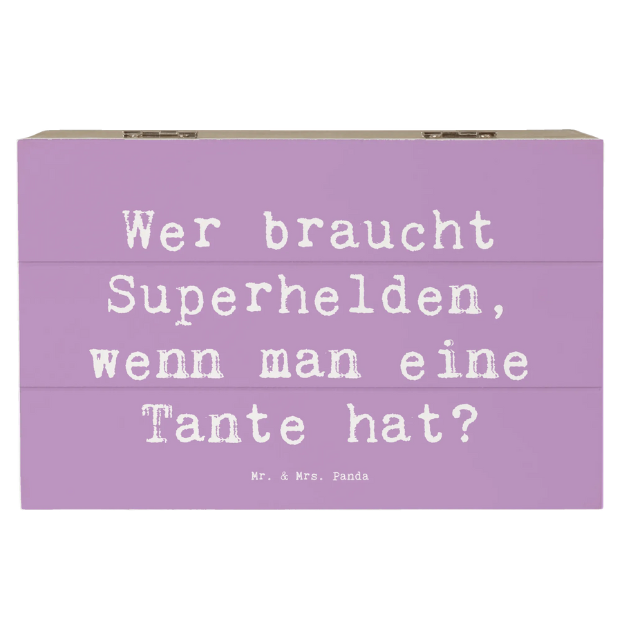 Die wunderschöne Holzkiste von Mr. & Mrs. Panda ist das perfekte Geschenk für all die besonderen Menschen in deinem Leben, besonders für deine Tante! Mit dem liebevollen Motiv "Wer braucht Superhelden, wenn man eine Tante hat?" plastisch auf hochwertigem Material, strahlt diese Kiste eine besondere Wärme und Zuneigung aus.
