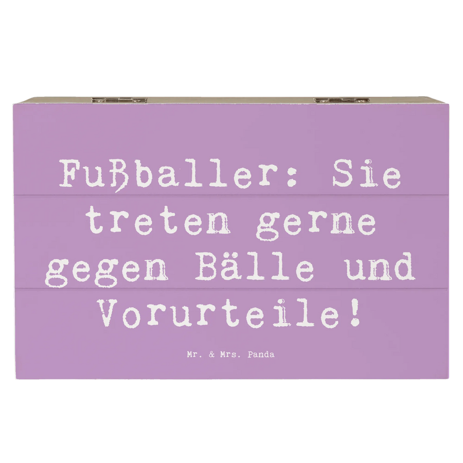 Die Holzkiste "Fußballer" von Mr. & Mrs. Panda ist das perfekte Geschenk für kleine und große Fußballfans! Mit dem Slogan "Fußballer: Sie treten gerne gegen Bälle und Vorurteile!" bringt diese wunderschöne Kiste Freude und Nostalgie in jedes Zuhause. Gefertigt aus robuster Holzfaser und ausgestattet mit Einschlagscharniere, ist sie nicht nur ein echter Blickfang, sondern auch ausgesprochen praktisch.