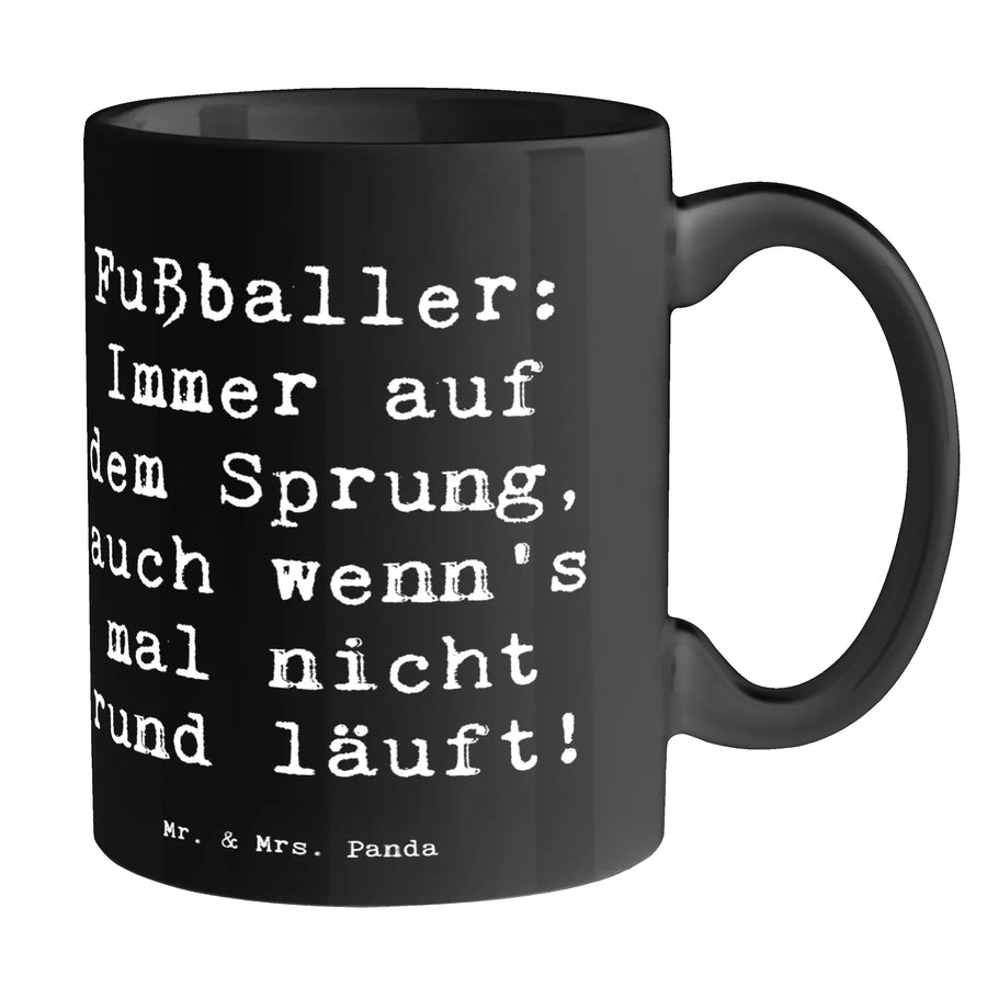 Tasse Spruch Fußballer: Immer auf dem Sprung, auch wenn's mal nicht rund läuft! - Schwarz