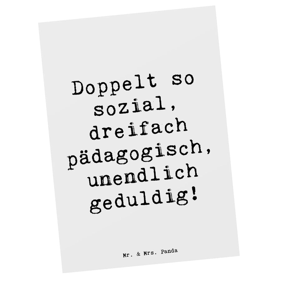 Postkarte Spruch Doppelt so sozial, dreifach pädagogisch, unendlich geduldig! - Weiß
