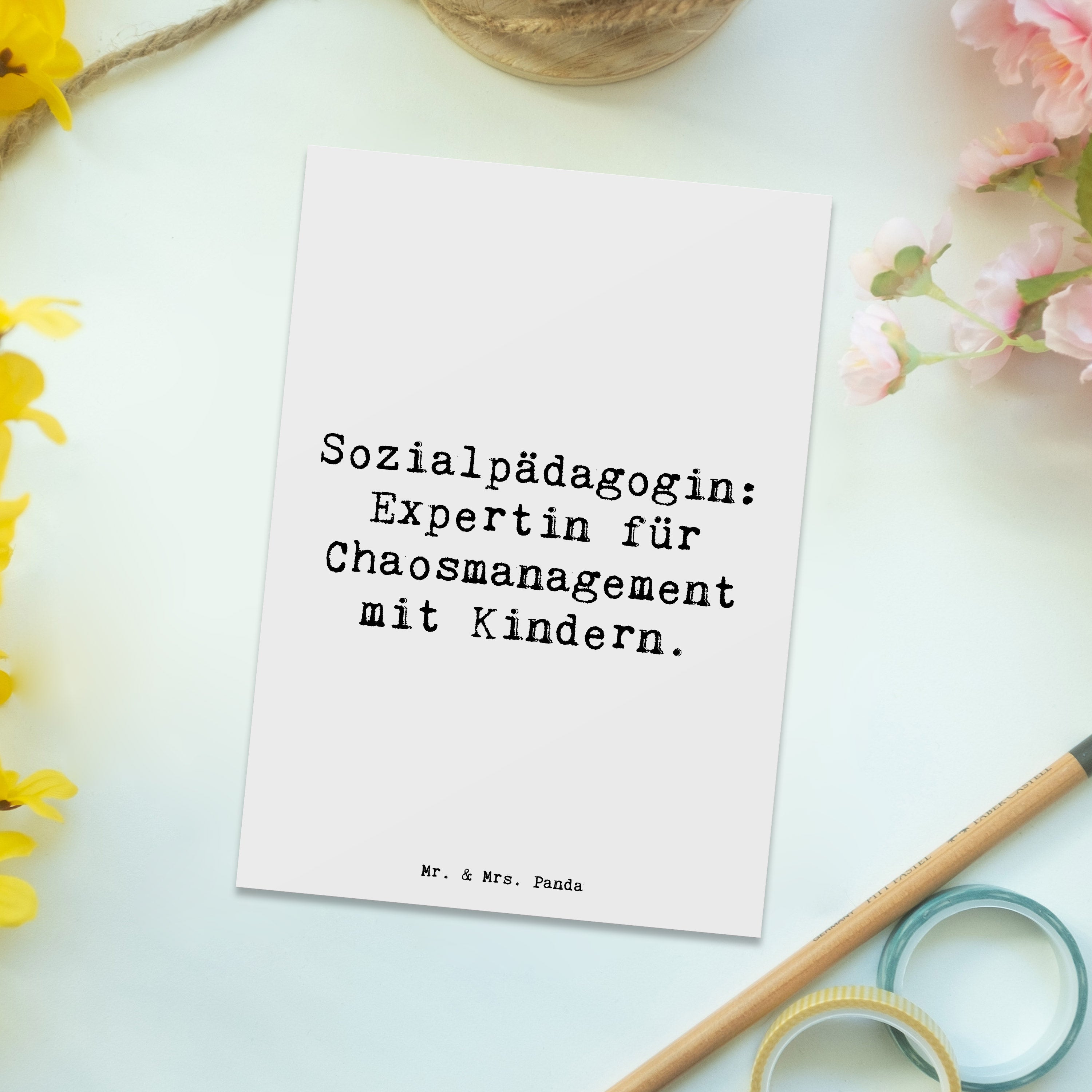 Postkarte Spruch Sozialpädagogin: Expertin für Chaosmanagement mit Kindern. - Weiß