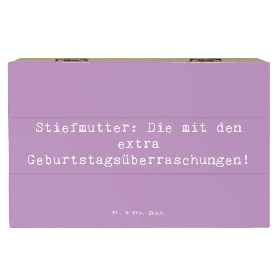 Die Wunderschöne Holzkiste von Mr. & Mrs. Panda ist das perfekte Geschenk für alle Stiefmütter, die mehr als nur eine Rolle im Leben ihrer Stiefkinder spielen. Mit dem liebevoll gestalteten Spruch 'Stiefmutter: Die mit den extra Geburtstagsüberraschungen!' ist diese Kiste ein echter Hingucker und eine wunderbare Möglichkeit, Liebe und Dankbarkeit auszudrücken.