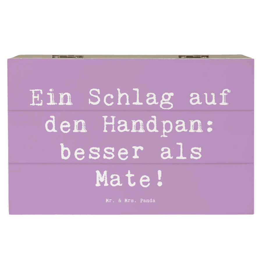 Gönn dir und deinen Liebsten diesen Hauch von Magie und Musik mit der Holzkiste von Mr. & Mrs. Panda. Die Kiste bietet die ideale Gelegenheit, um all die kleinen Schätze des Lebens sicher und schön zu verstauen. Zudem ist sie ein prachtvolles Erinnerungsstück, das immer ein Lächeln ins Gesicht zaubert. Und während du deinen Freunden von der Bedeutung des Handpan spazierst, denk daran: "Ein Schlag auf den Handpan: besser als Mate!"