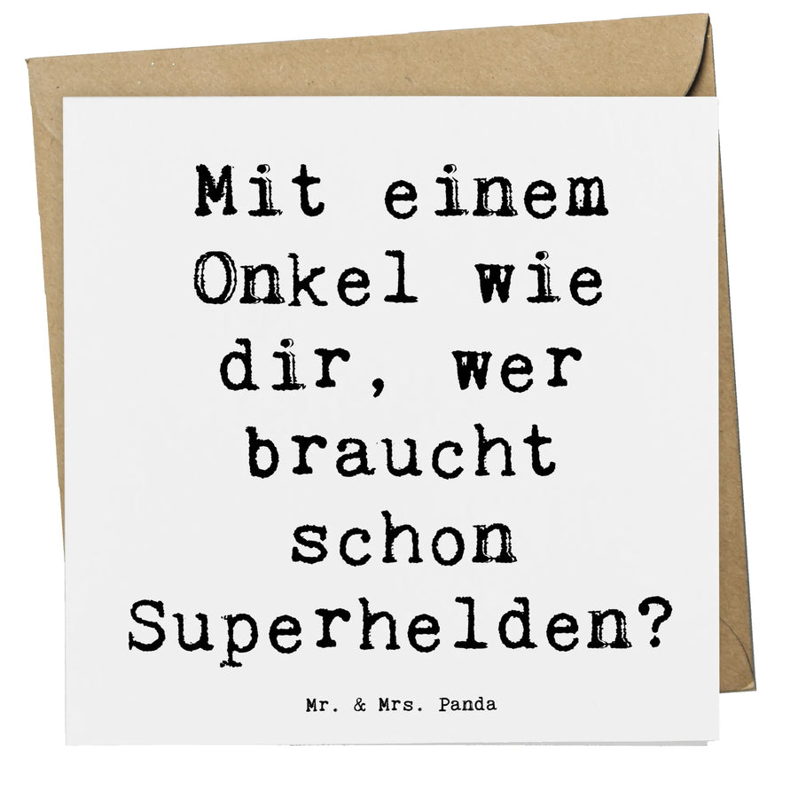Egal ob Du eine Geburtstagskarte, eine Glückwunschkarte zur Hochzeit oder einfach nur ein Dankeschön für Deinen Lieblingsonkel suchst, diese Karte wird vielen Anlässen gerecht. Auf der Vorderseite ist der herzerwärmende Spruch: "Mit einem Onkel wie dir, wer braucht schon Superhelden?" abgebildet, der die besondere Rolle eines Onkels in der Familie auf den Punkt bringt.