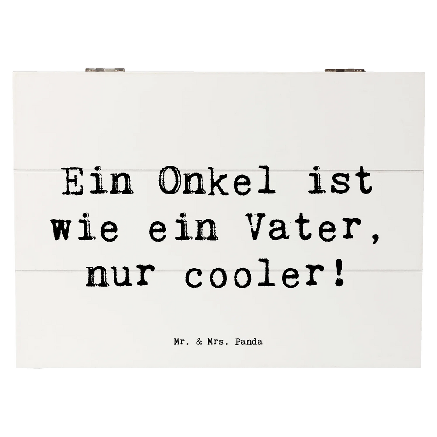 Die wunderschöne Holzkiste von Mr. & Mrs. Panda ist das perfekte Geschenk für deinen Onkel, der wie ein Vater ist, nur cooler! Diese bezaubernde Erinnerungskiste ist nicht nur praktisch, sondern auch ein echter Hingucker. Mit einem warmherzigen Spruch, der besagt 'Ein Onkel ist wie ein Vater, nur cooler!', ist sie ideal, um besondere Momente und Schätze zu bewahren.