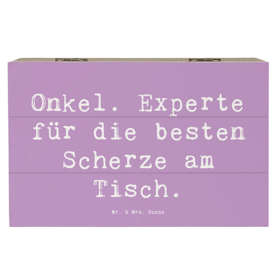 Suchst du nach einem besonderen Geschenk für deinen Onkel? Dann ist die wunderschöne Holzkiste von Mr. & Mrs. Panda genau das richtige für dich! Mit ihrem charmanten Design und dem Spruch "Onkel. Experte für die besten Scherze am Tisch." wird diese Kiste zu einem ganz besonderen Erinnerungsstück.