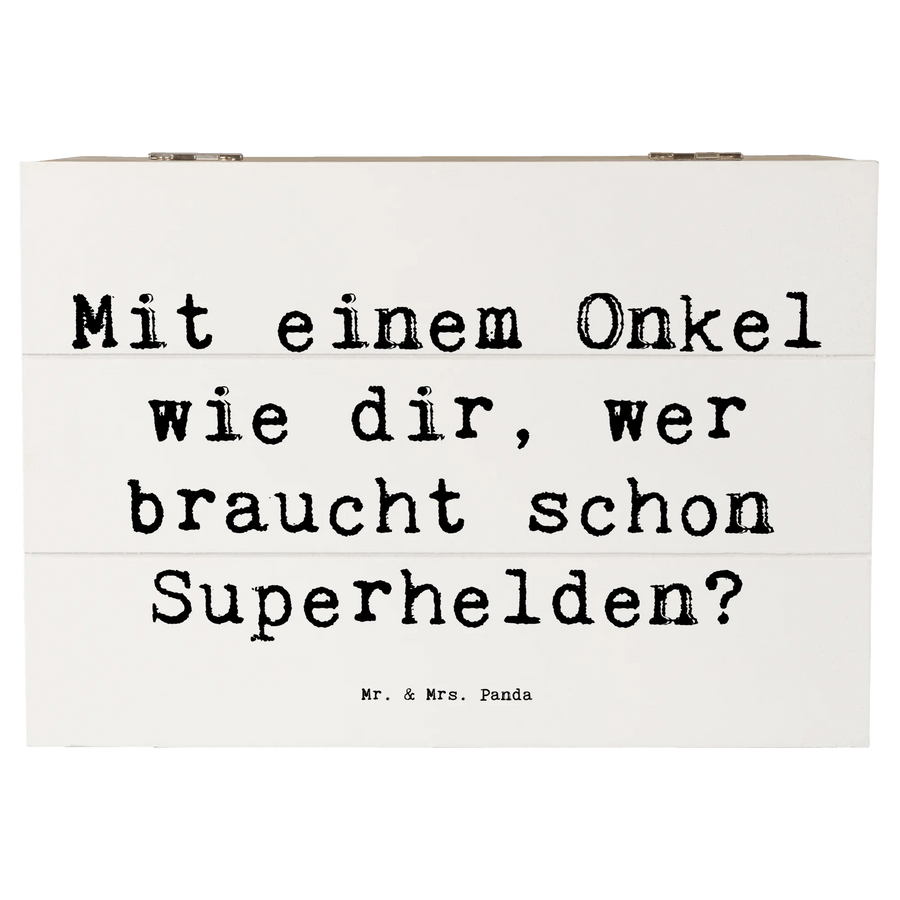 Die wunderschöne Holzkiste von Mr. & Mrs. Panda ist das perfekte Geschenk für Onkel, die in der Familie eine besondere Rolle spielen. Mit dem liebevollen Slogan "Mit einem Onkel wie dir, wer braucht schon Superhelden?" wird diese Kiste zu einem tollen Erinnerungsstück und echten Hingucker.
