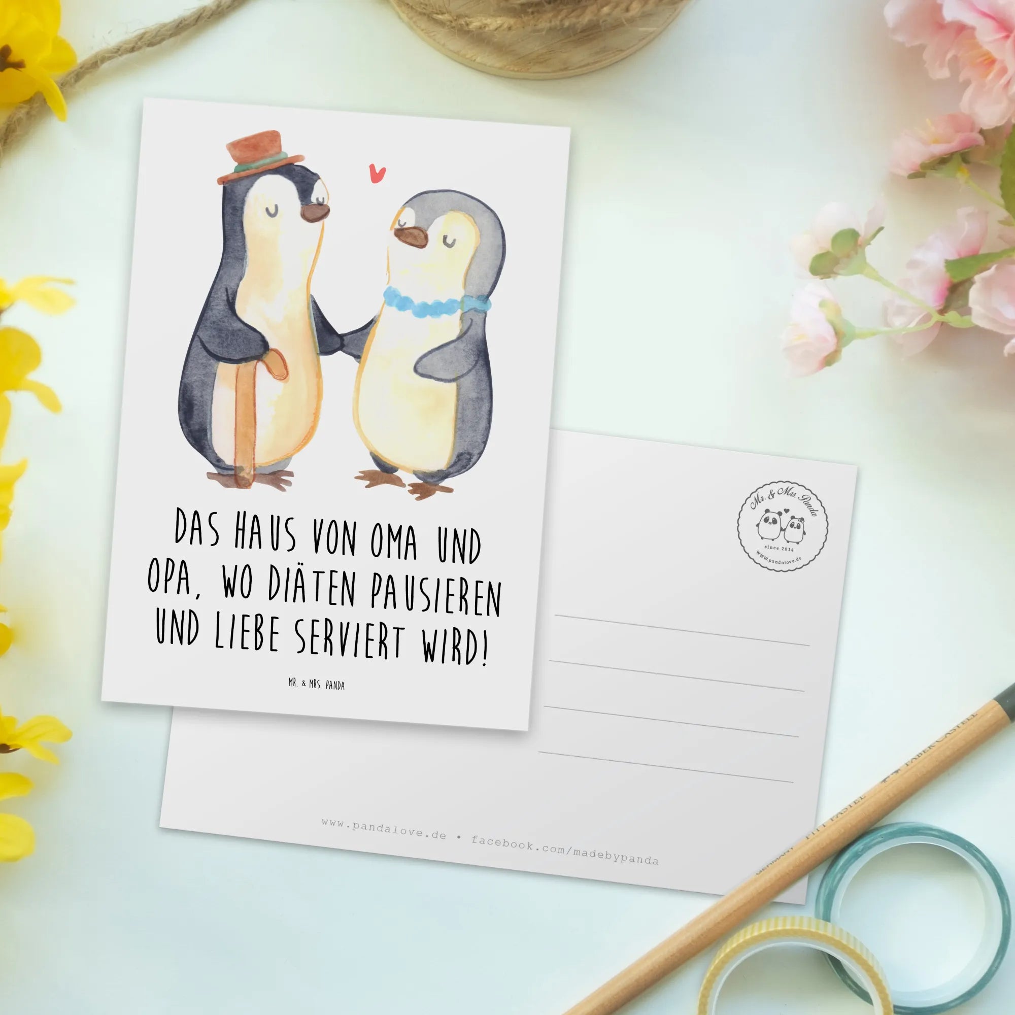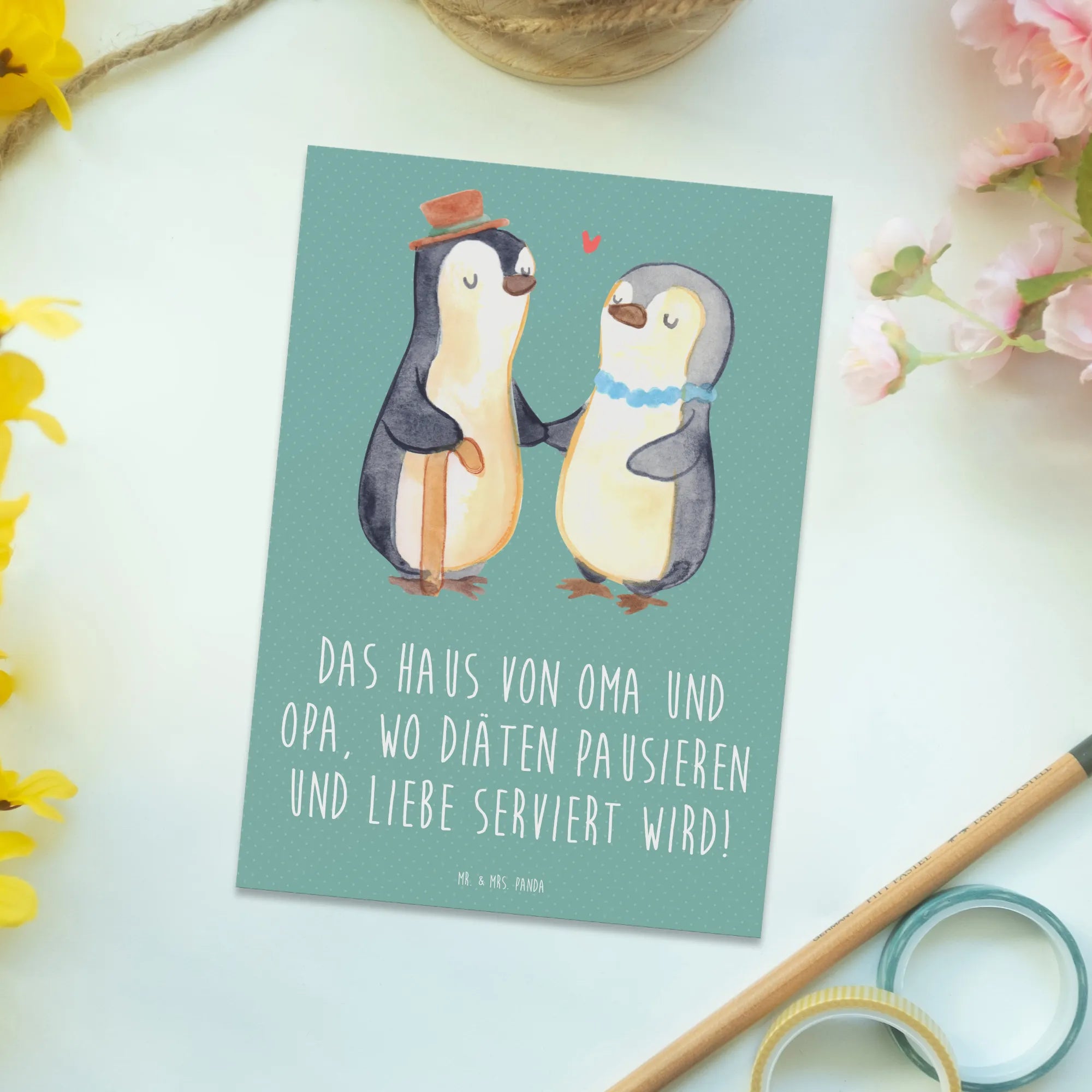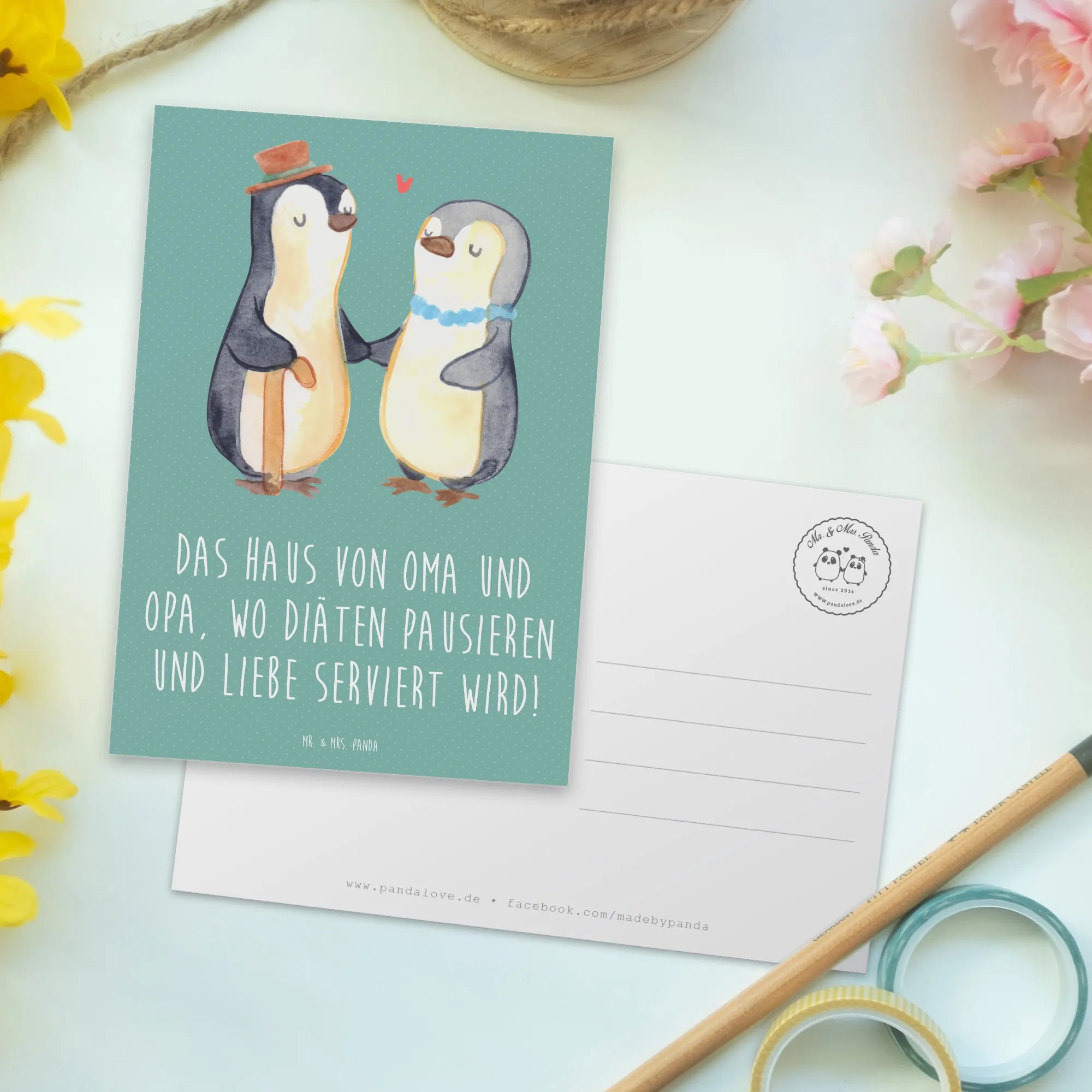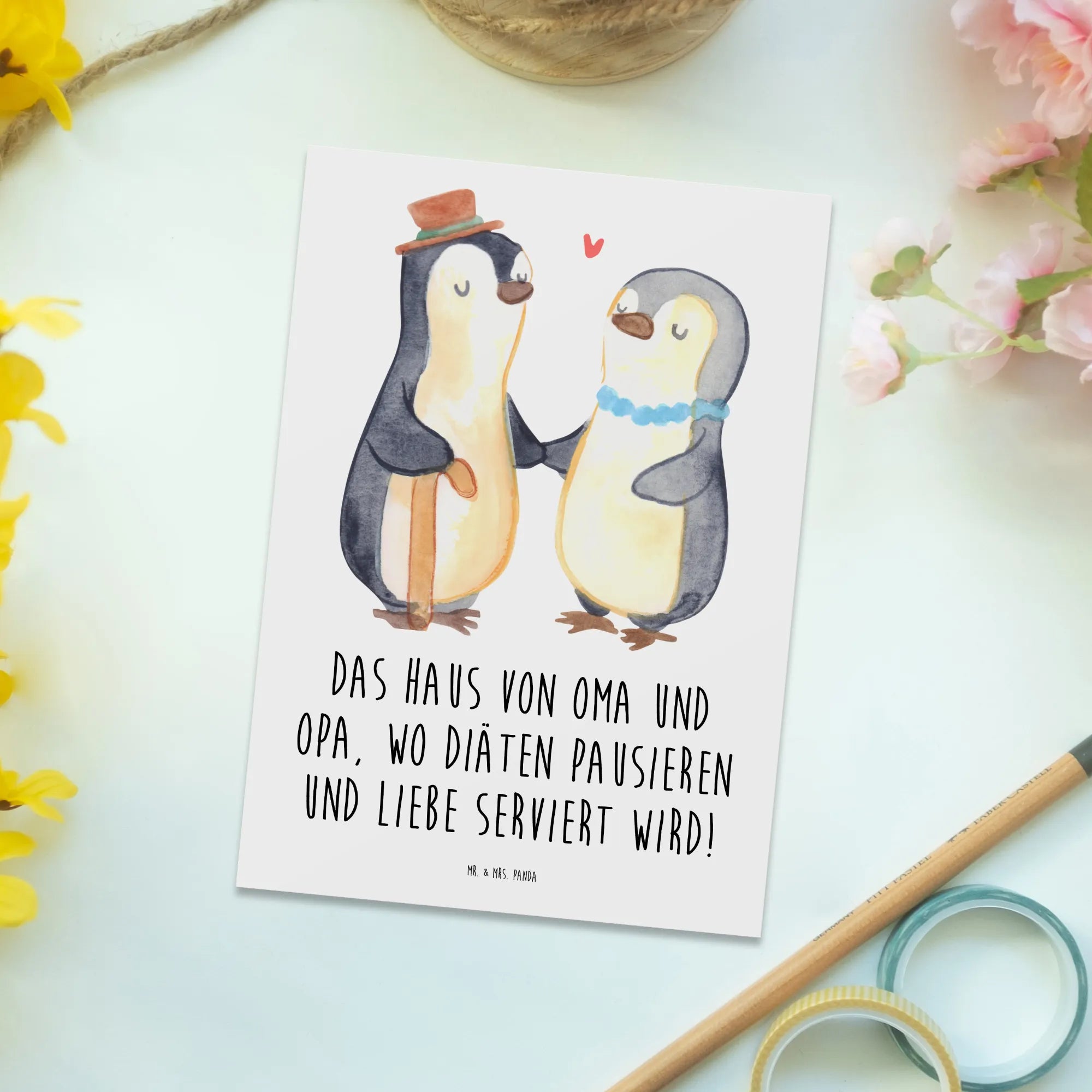 Entdecke die zauberhafte Postkarte von Mr. & Mrs. Panda mit dem liebevollen Motiv "Großeltern" aus unserer besonderen Kollektion Familie & Verwandte! Diese einzigartige Postkarte ist perfekt, um Deinen Großeltern zu zeigen, wie sehr Du sie schätzt. Der witzige Spruch "Das Haus von Oma und Opa, wo Diäten pausieren und Liebe serviert wird!" bringt sicherlich ein Lächeln auf ihre Gesichter.