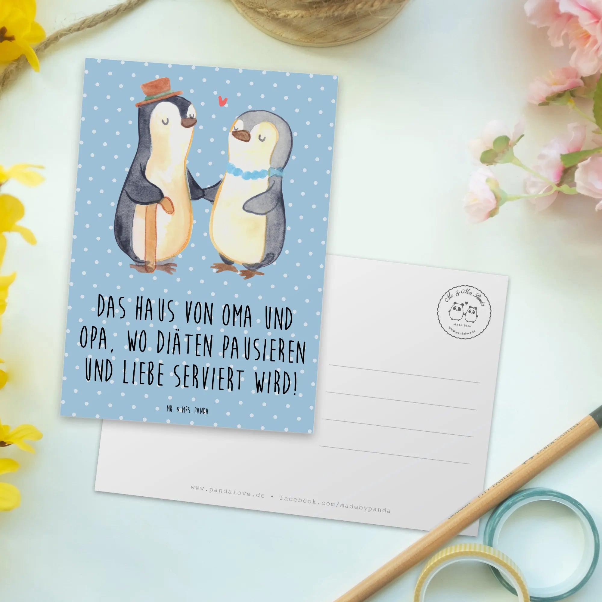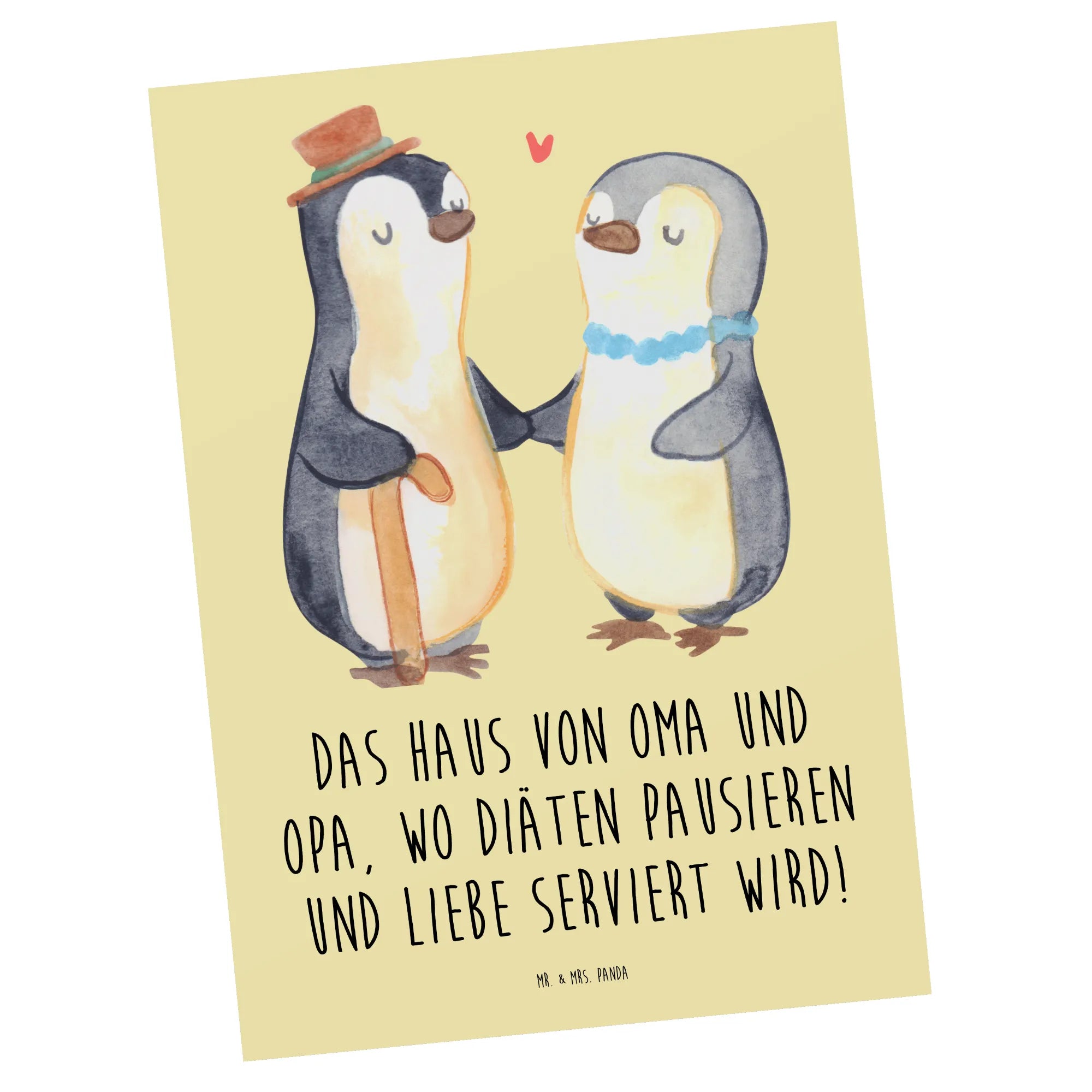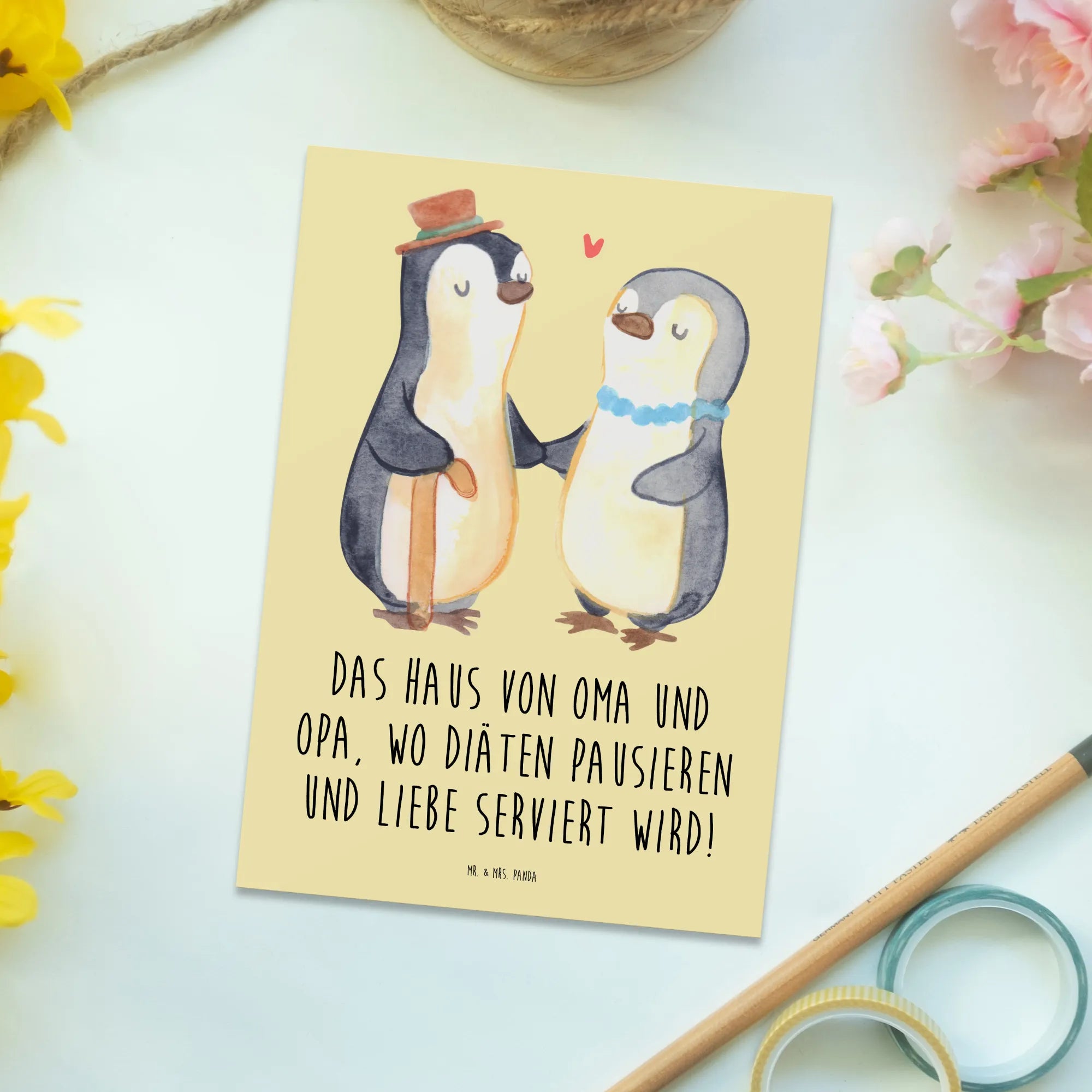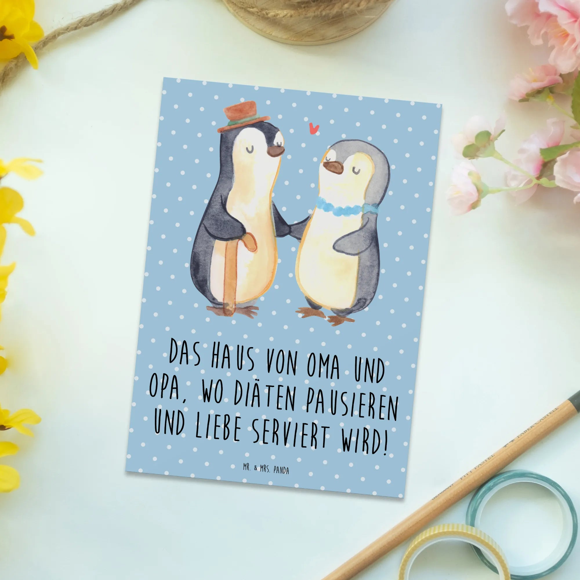 Entdecke die zauberhafte Postkarte von Mr. & Mrs. Panda mit dem liebevollen Motiv "Großeltern" aus unserer besonderen Kollektion Familie & Verwandte! Diese einzigartige Postkarte ist perfekt, um Deinen Großeltern zu zeigen, wie sehr Du sie schätzt. Der witzige Spruch "Das Haus von Oma und Opa, wo Diäten pausieren und Liebe serviert wird!" bringt sicherlich ein Lächeln auf ihre Gesichter.