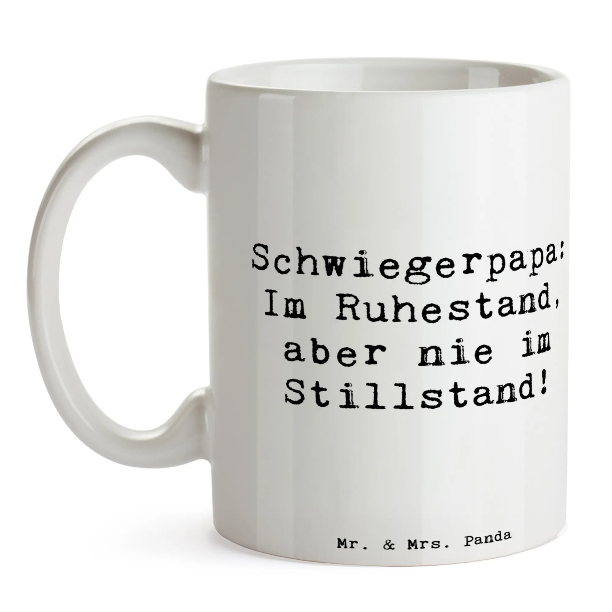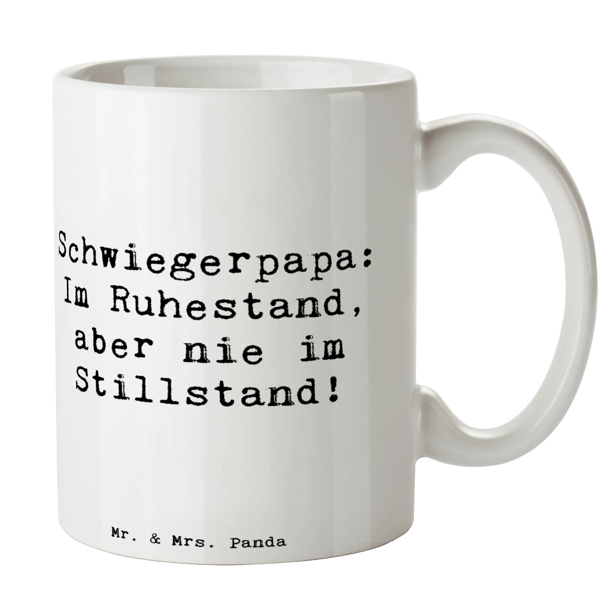 Auf der Suche nach dem perfekten Geschenk für den Schwiegerpapa? Unsere Mr. & Mrs. Panda Tasse „Schwiegerpapa: Im Ruhestand, aber nie im Stillstand!“ verbindet Herz, Humor und Alltagstauglichkeit – ideal als Geschenktasse für Geburtstage, Ruhestand, Vatertag oder einfach als Dankeschön.