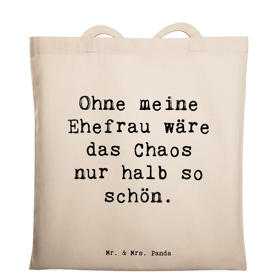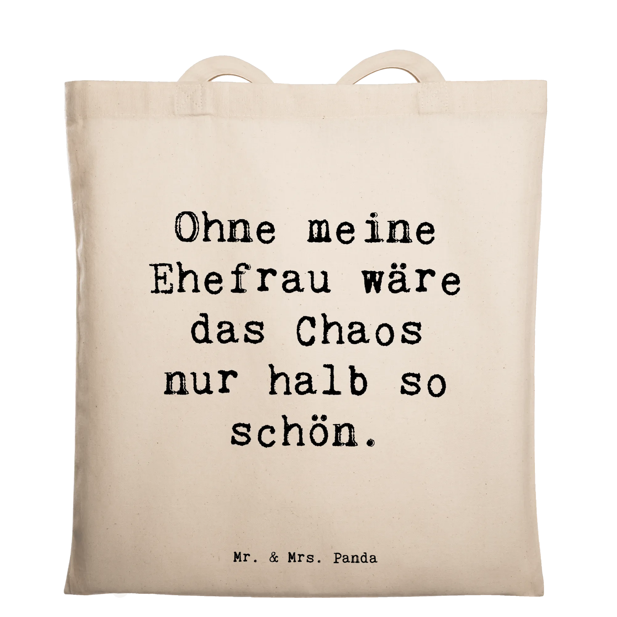 Tragetasche Spruch Ohne meine Ehefrau wäre das Chaos nur halb so schön. - Transparent