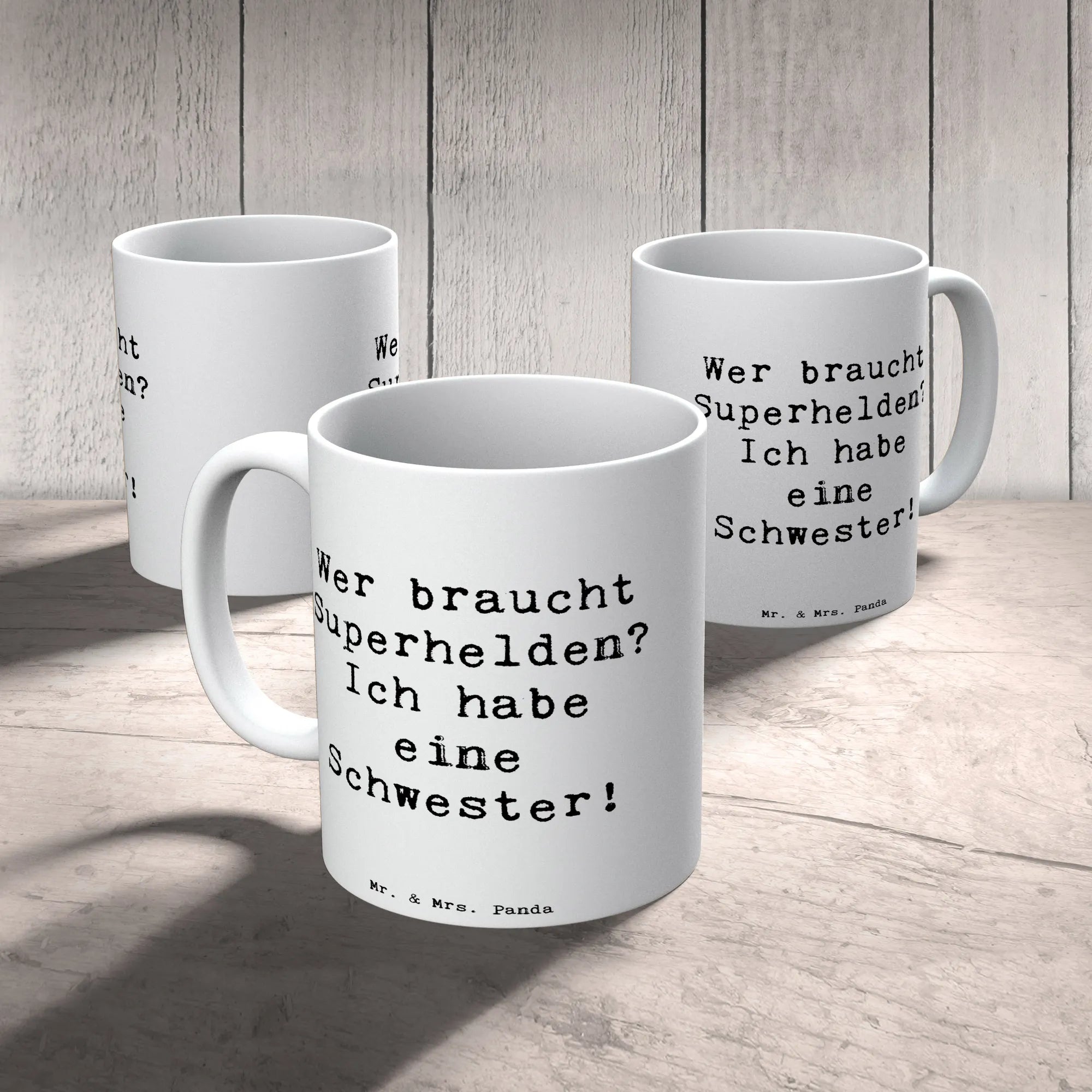 Kubek Cytat Wer braucht Superhelden? Ich habe eine Schwester! - Meeresbrise