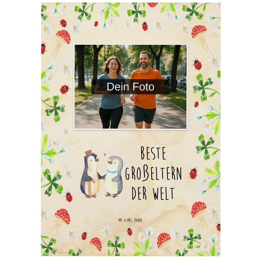 Die personalisierte Foto Postkarte mit dem süßen Motiv "Pinguin Beste Großeltern der Welt" von Mr. & Mrs. Panda ist das ideale Geschenk für deine Großeltern, Omi und Opi! Diese herzliche Karte eignet sich hervorragend, um Großeltern an Geburtstagen oder besonderen Anlässen eine Freude zu machen. Egal, ob du einfach mal 'Danke' sagen möchtest oder ein kleines Mitbringsel für den nächsten Besuch suchst, diese Postkarte wird garantiert ein Lächeln auf die Gesichter deiner liebsten Senioren zaubern.