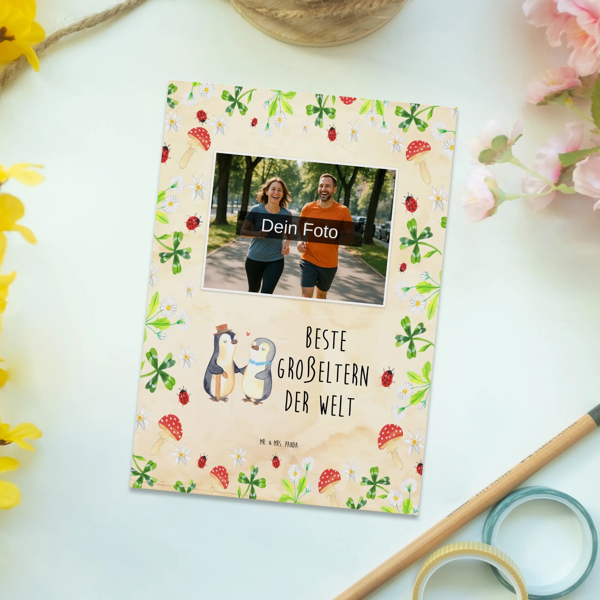 Personalisierte Foto Postkarte Pinguin Beste Großeltern der Welt - Naturpapier