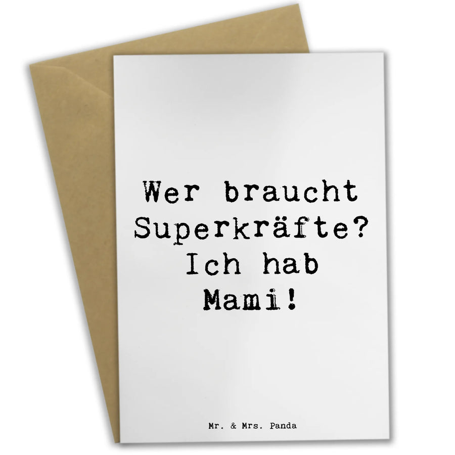 Kartka okolicznościowa Powiedzenie Wer braucht Superkräfte? Ich hab Mami! - biały