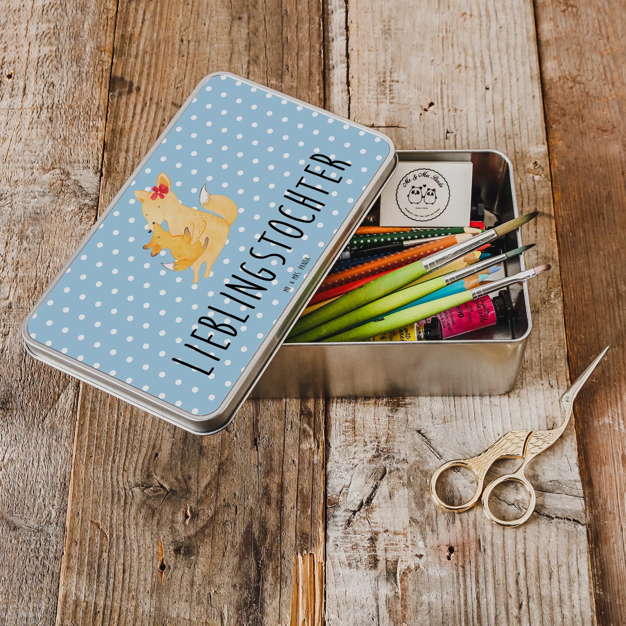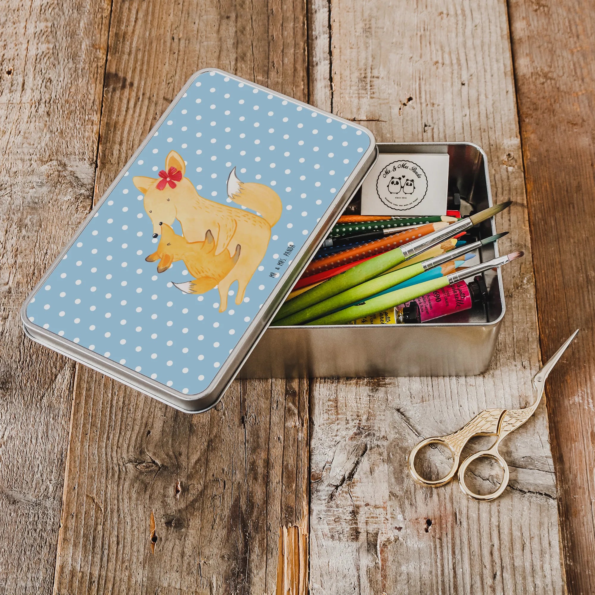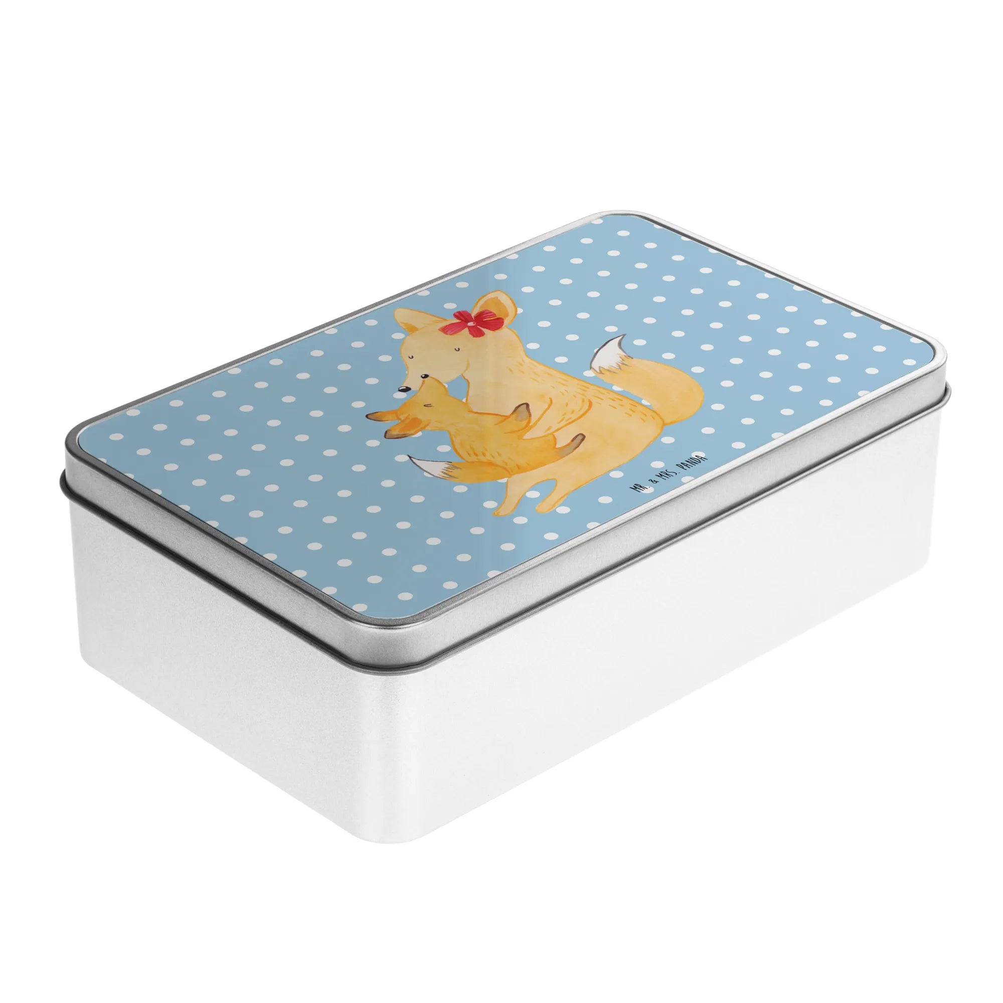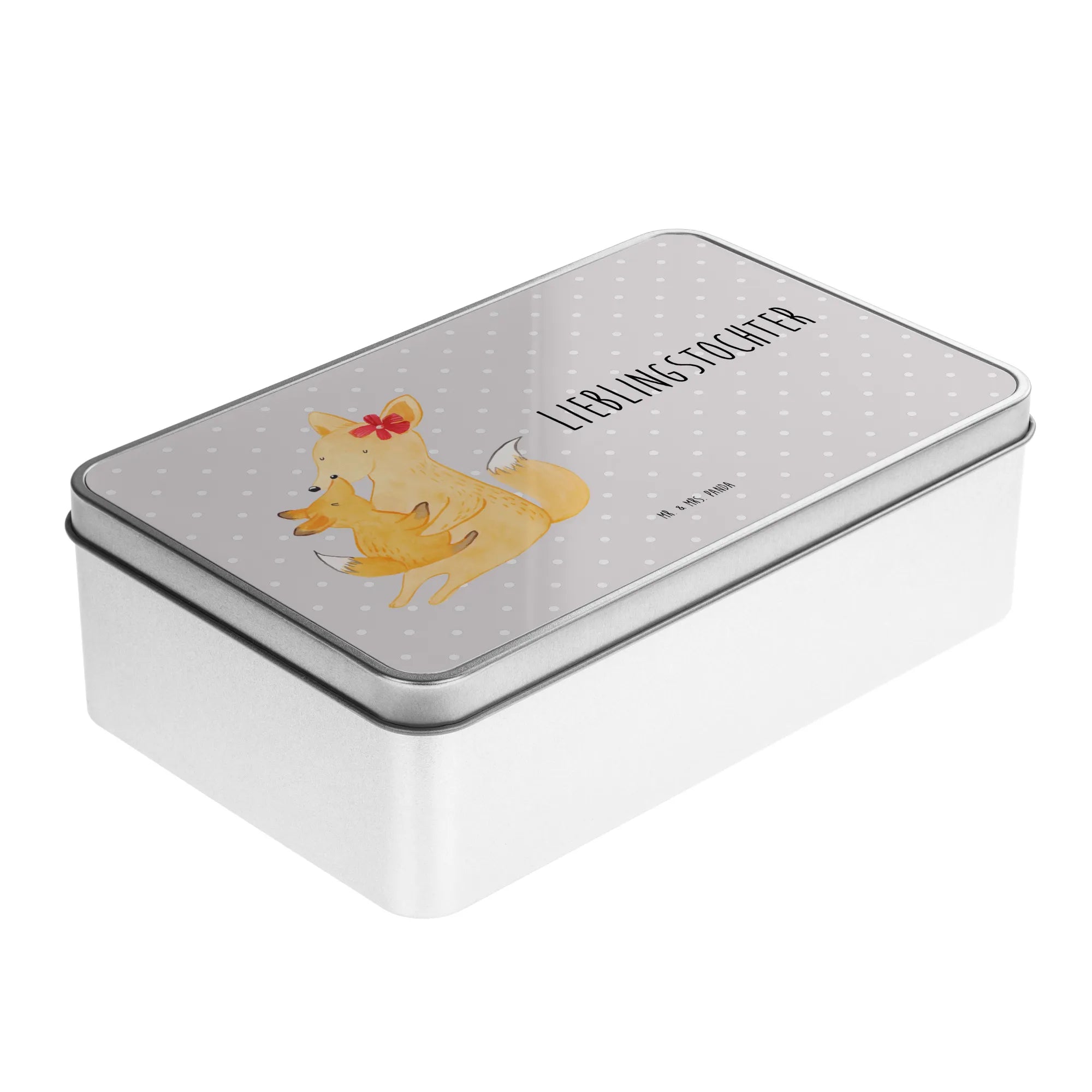 Metalowa puszka Lis Mama - z napisem - Pastelowy szary