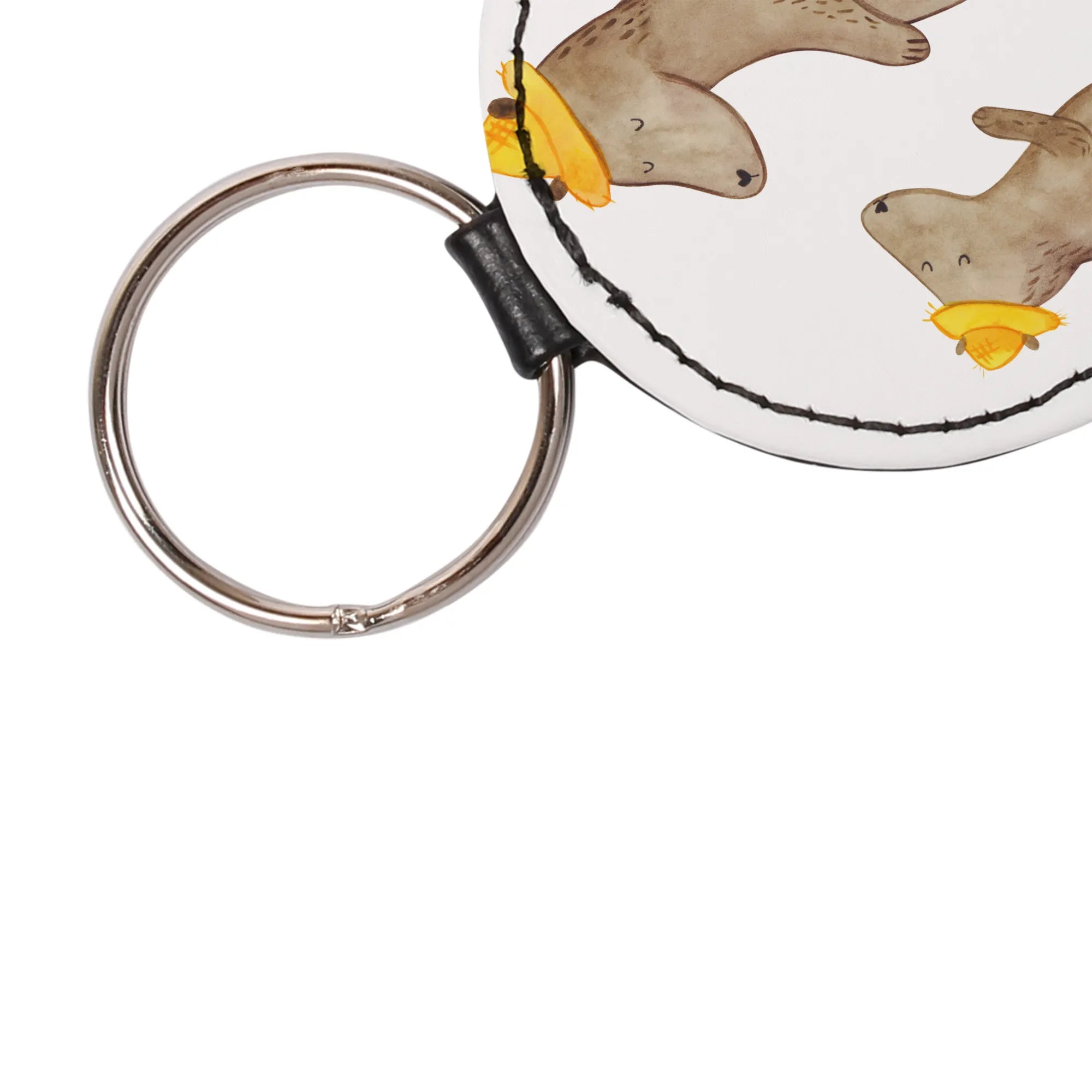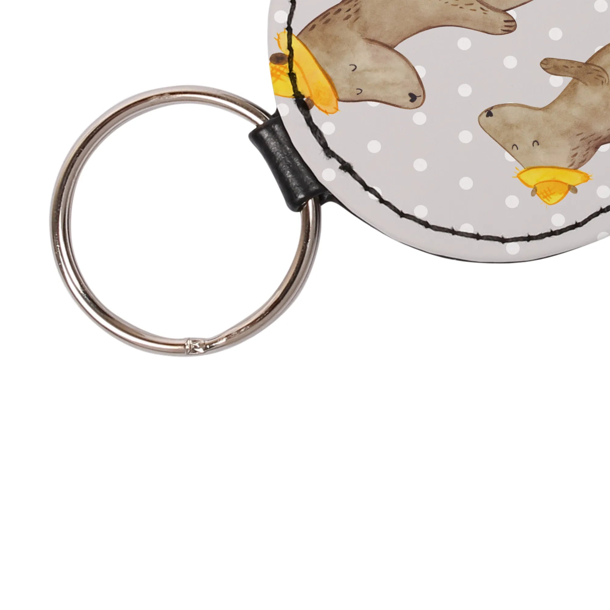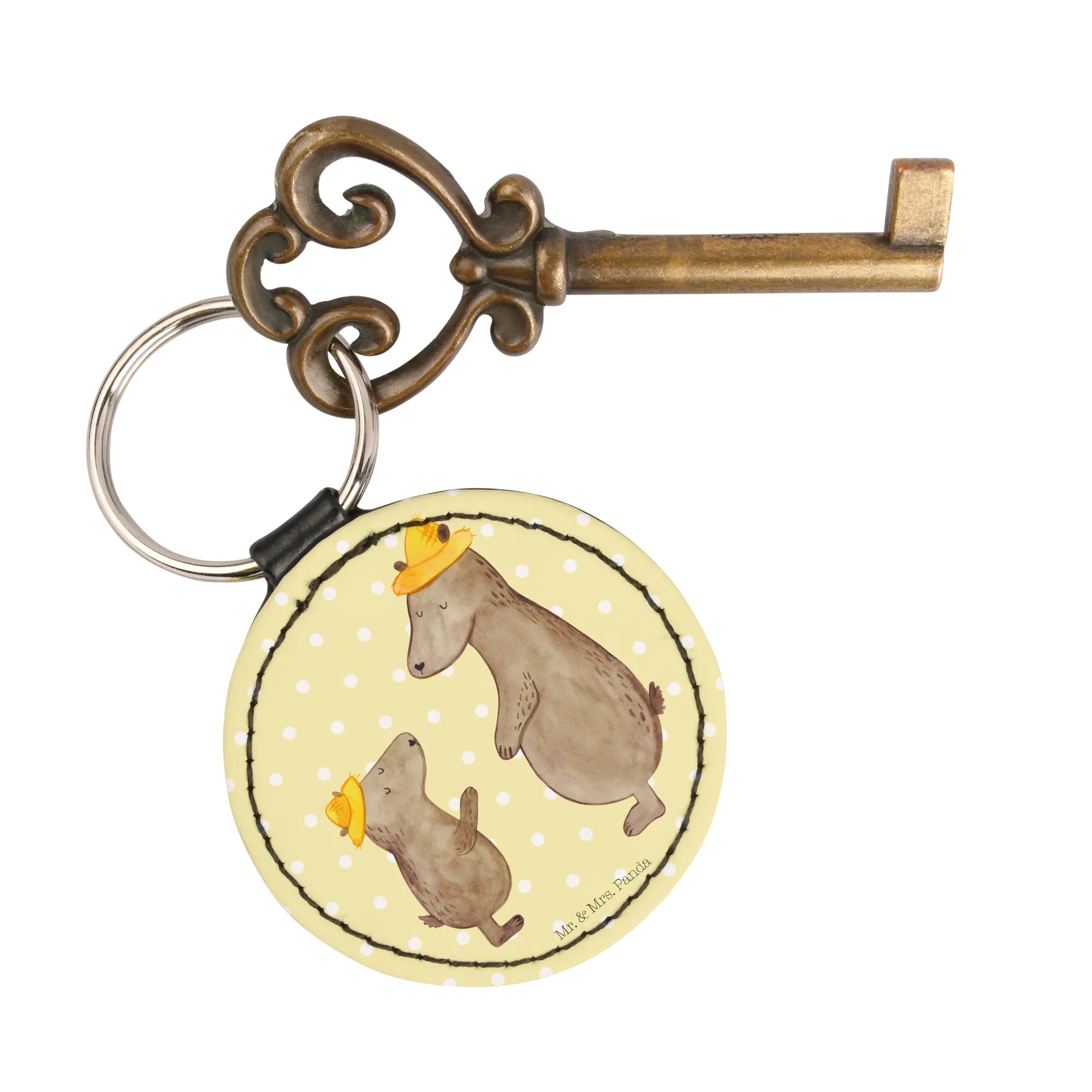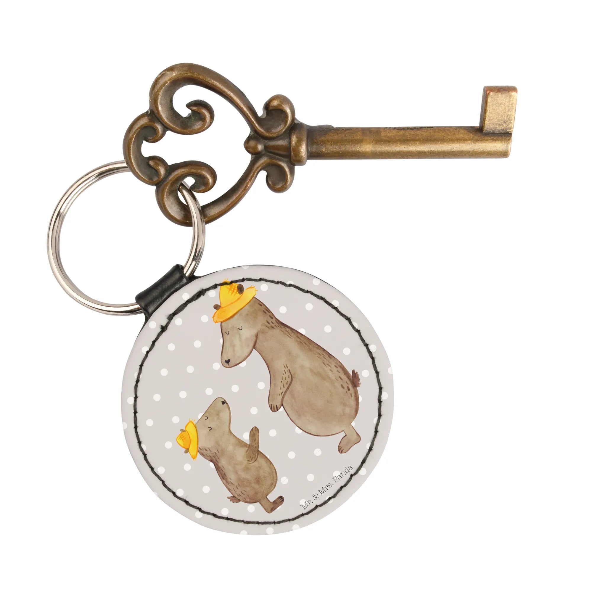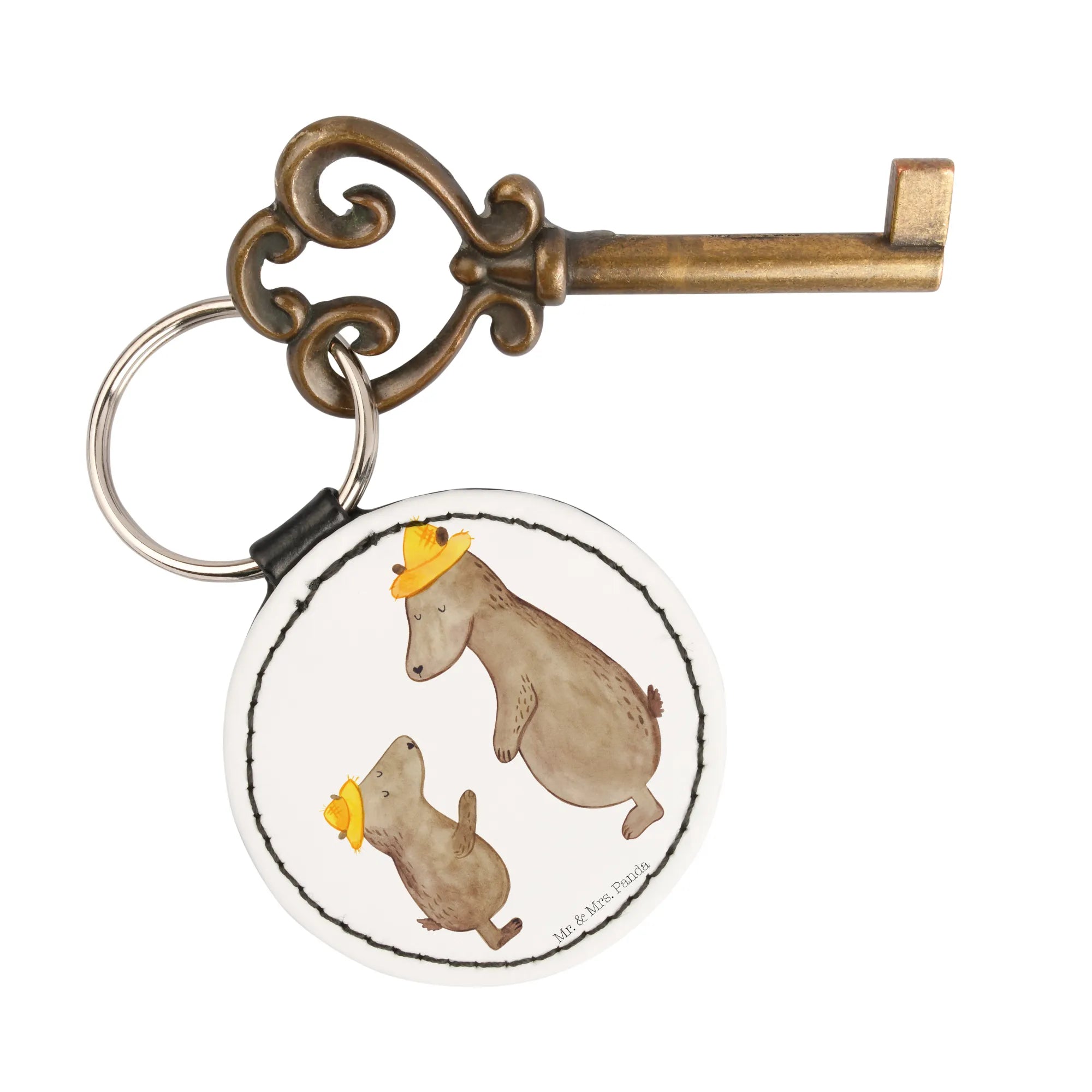 Okrągły brelok Niedźwiedzie z kapeluszami - biały