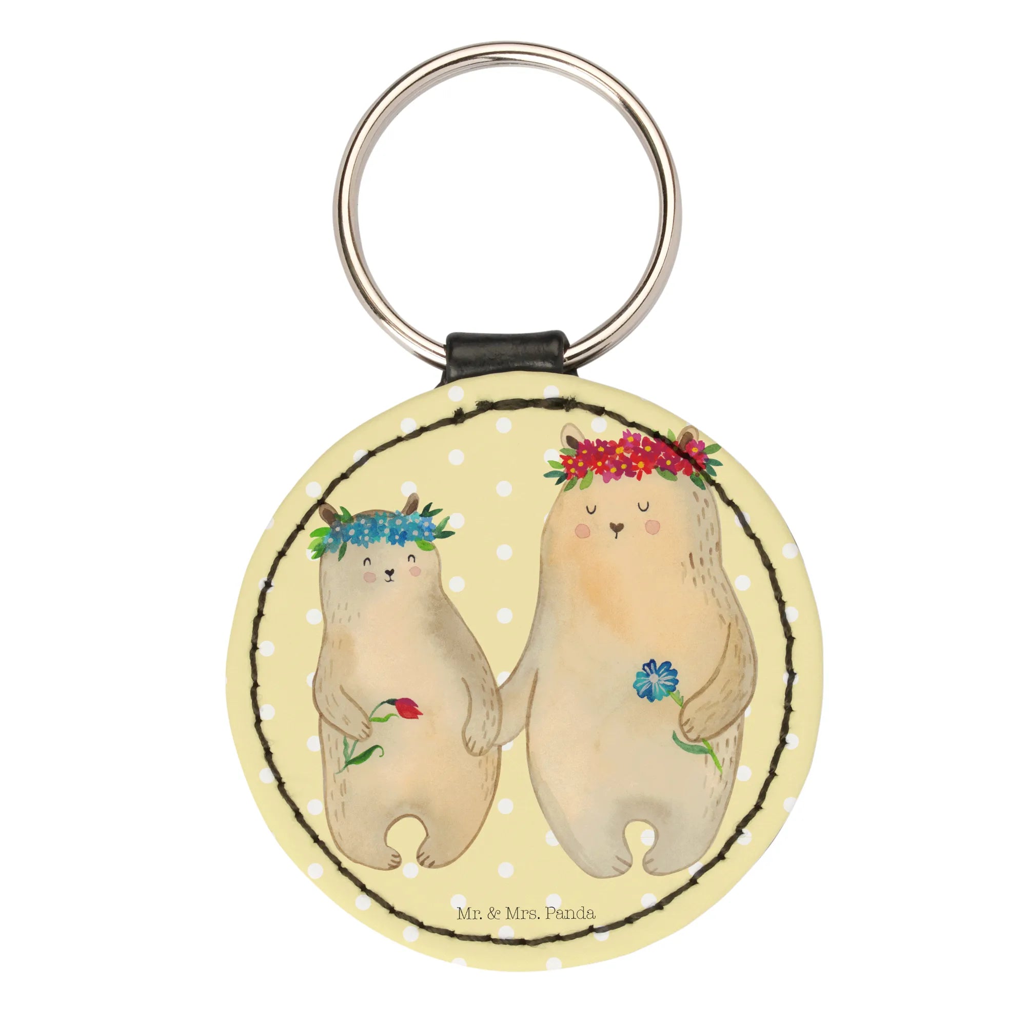 Okrągły brelok Niedźwiedzie z wianuszkiem - Żółty Pastel