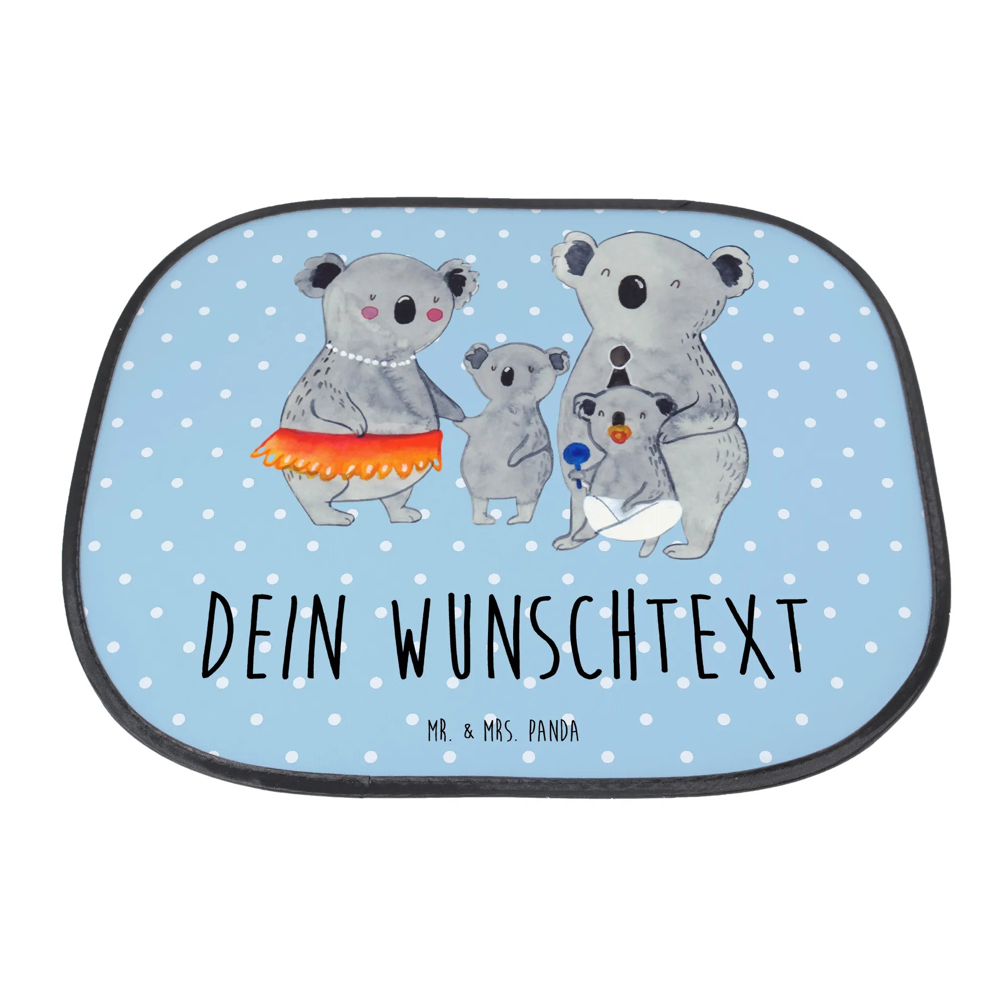 Personalisierbarer Sonnenschutz Koala Familie - Blau Pastell