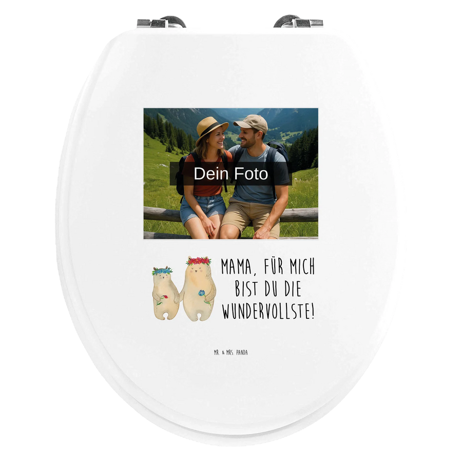 Personalizowany motyw zdjęcia na desce WC Niedźwiedzie z wianuszkiem - Hartfaser Holzkern Weiß