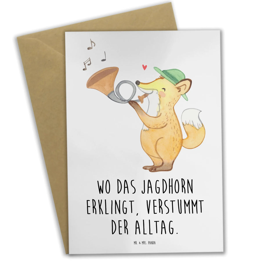 Die wunderschöne Grußkarte mit dem Motiv Jagdhorn aus der Kollektion Musizieren & Instrumente von Mr. & Mrs. Panda ist das perfekte Geschenk für Musikliebhaber, Jäger und Freunde traditioneller Blasinstrumente. Egal ob zur Hochzeit, zum Geburtstag oder als Einladung, diese Karte bringt Freude und Liebe auf eine ganz besondere Weise zum Ausdruck.