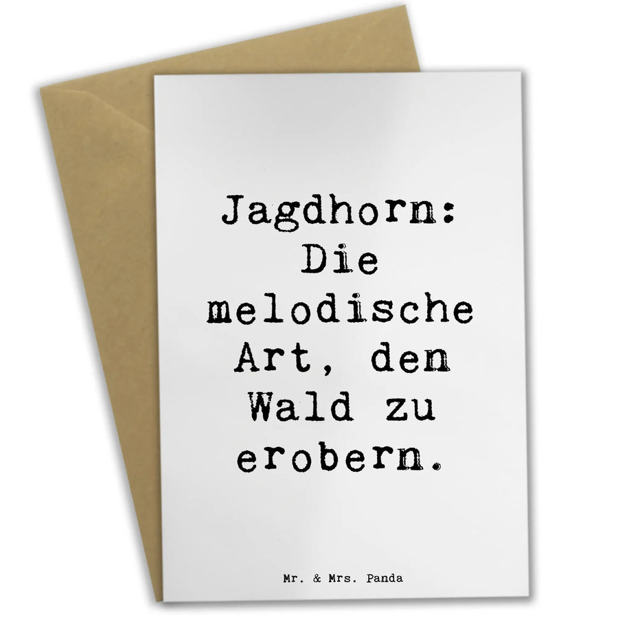 Die wunderschöne Grußkarte von Mr. & Mrs. Panda mit dem Motiv "Jagdhorn" ist nicht nur ein einfaches Stück Papier, sondern ein echtes kleines Kunstwerk, das Freude und Kreativität ausstrahlt. Sie ist in einer handlichen Größe von 148 mm x 105 mm gefertigt und besteht aus hochwertigem 300 Gramm Karton, der edel und besonders fest wirkt.
