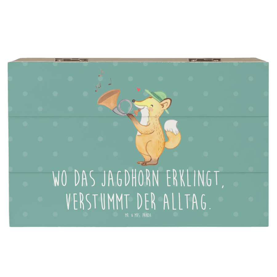 Die wunderschöne Holzkiste mit dem bezaubernden Jagdhorn-Motiv von Mr. & Mrs. Panda ist nicht nur ein schlichtes Aufbewahrungsmöbel, sie ist viel mehr! Diese Erinnerungskiste bringt ein Stück Tradition und musikalisches Flair in dein Zuhause. Mit dem Slogan 'Wo das Jagdhorn erklingt, verstummt der Alltag.' wird jedes Öffnen der Kiste zu einem besonderen Erlebnis. Ob als Schatzkiste für die Erinnerungen deines Lebens oder als stilvolle Dekokiste für deine ganz persönlichen Schätze, diese Kiste ist die perfekte Wahl.