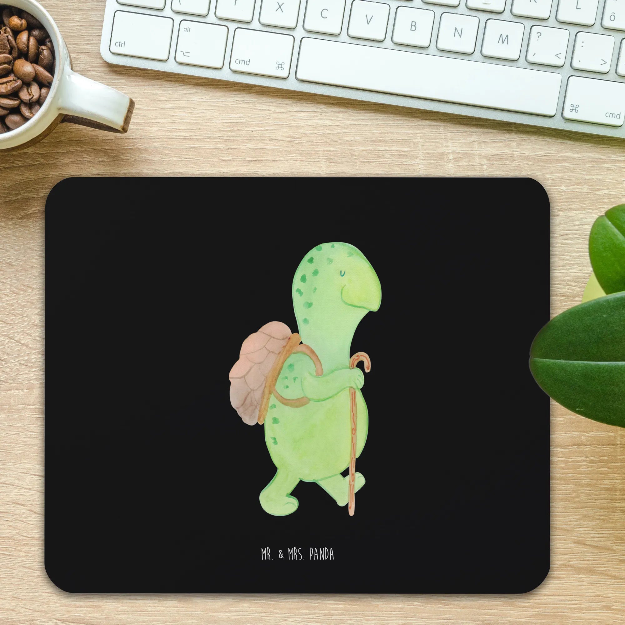 Podkładka pod mysz żółw Wędrowiec - z napisem - Czarny