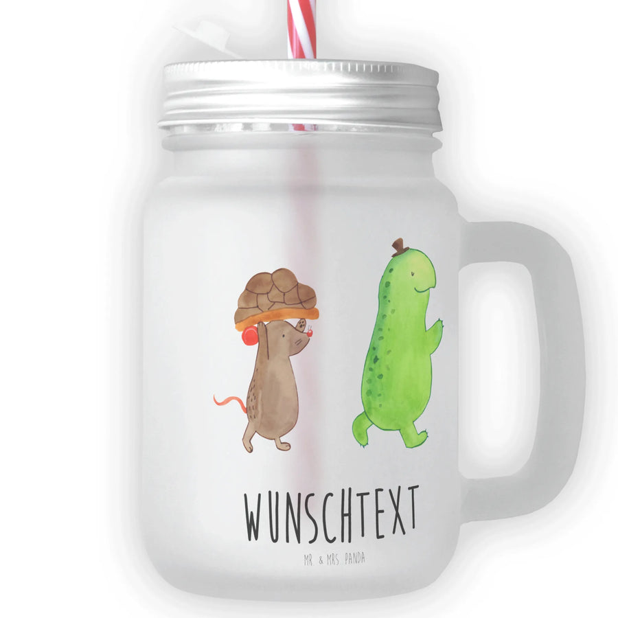 Personalised mason jar drinking glass żółw mysz