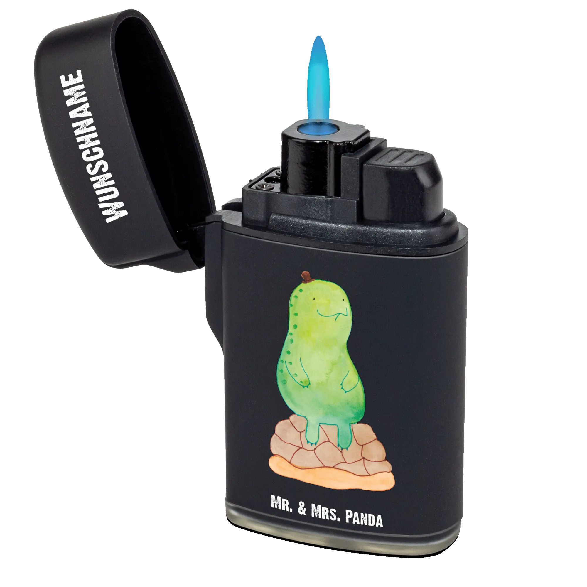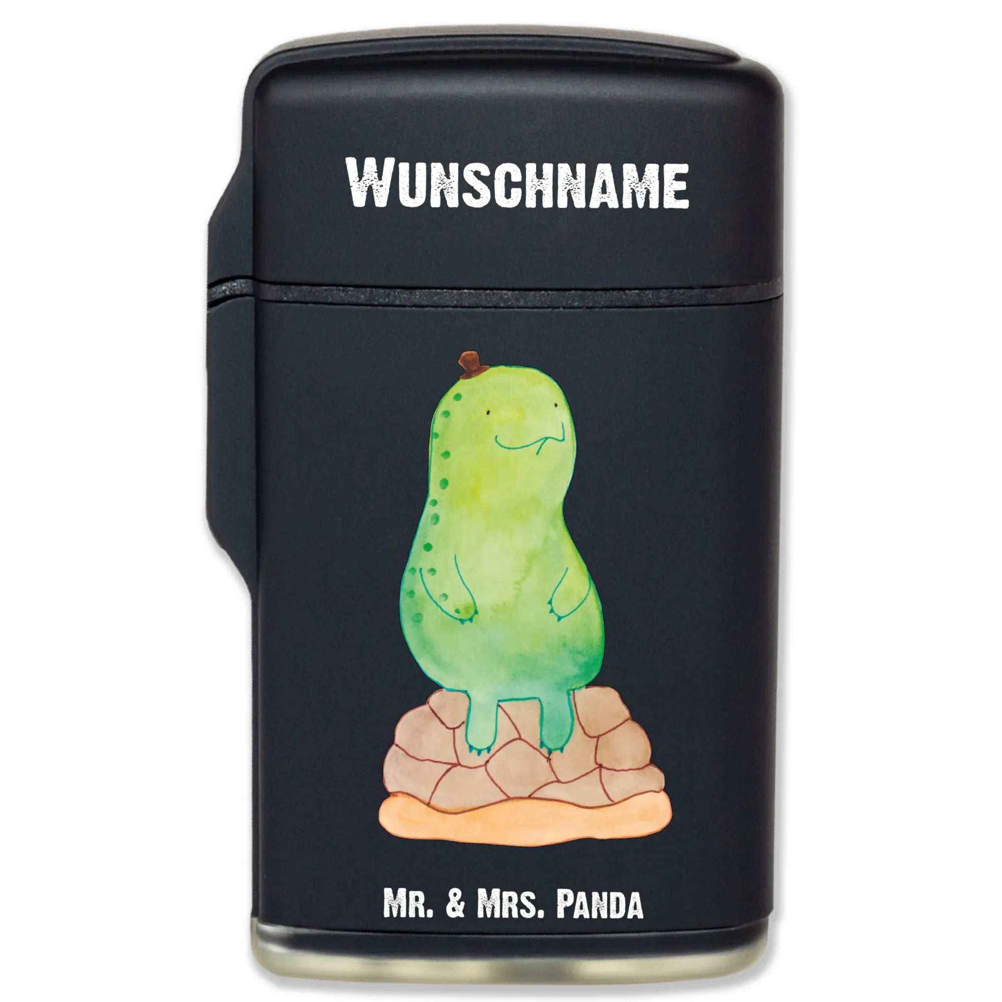 Mach das Leben ein Stück entspannter und bring einen Hauch von Achtsamkeit in den Alltag – mit dem personalisierten Feuerzeug "Schildkröte pausiert" von Mr. & Mrs. Panda!