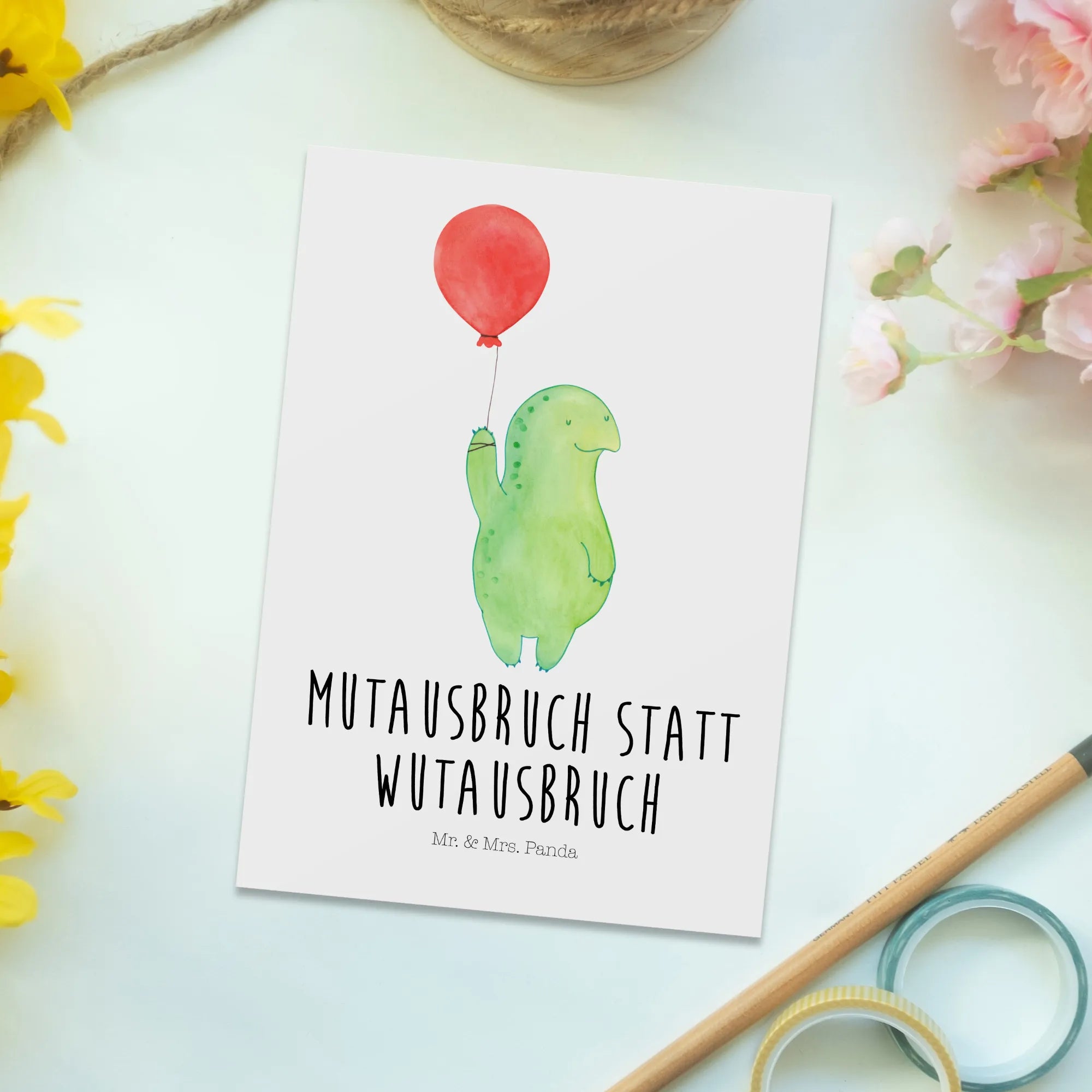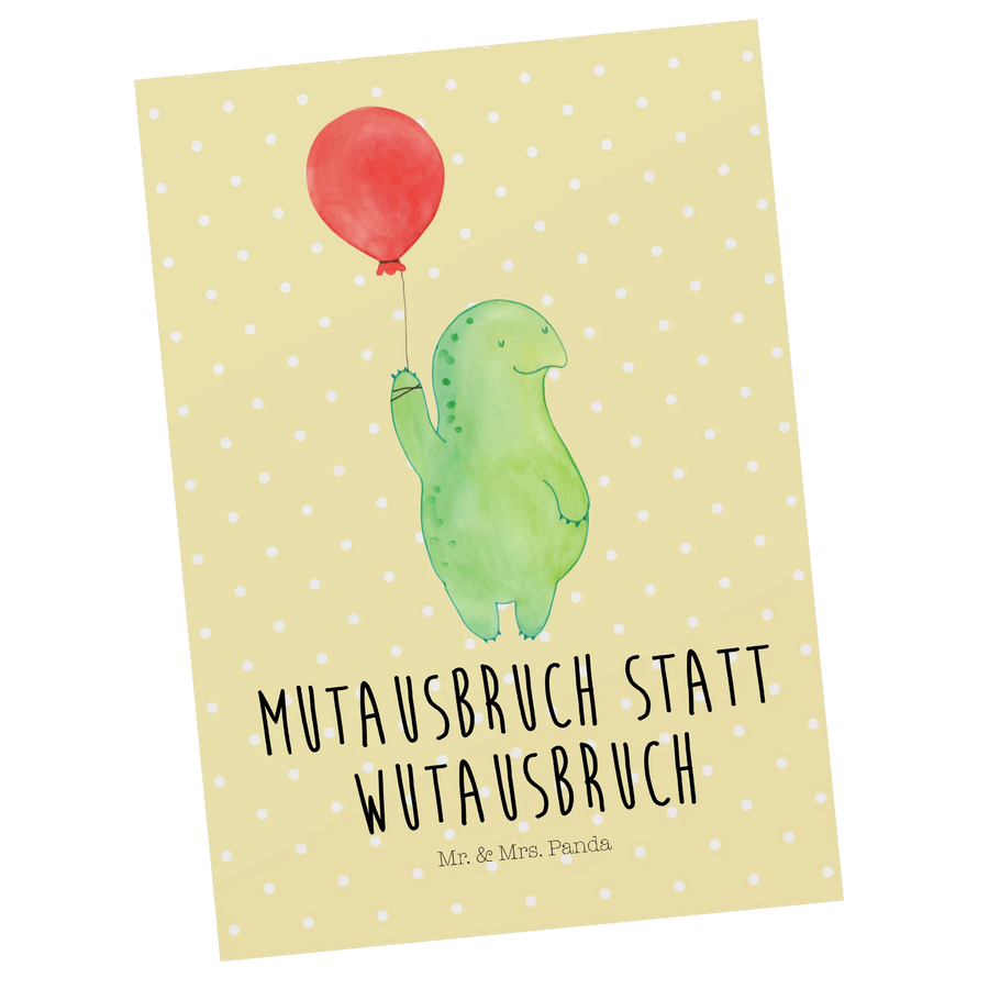 Pocztówka żółw balon - z napisem - Żółty Pastel
