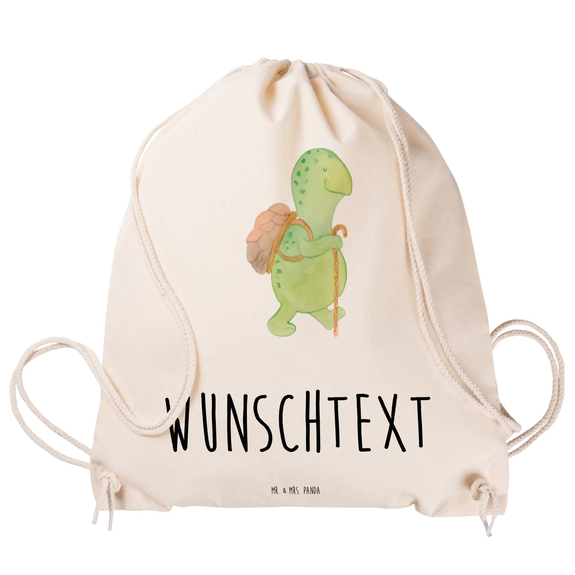Der personalisierte Sportbeutel 'Schildkröte Wanderer' von Mr. & Mrs. Panda ist der perfekte Begleiter für all jene, die die Welt entdecken wollen. Diese süße Schildkröte, die ihren Panzer wie einen kleinen Rucksack mit sich trägt, symbolisiert Abenteuer und Freiheit. Egal, ob du ins Fitnessstudio gehst, zum Yoga oder in den Park spazierst – dieser Sportbeutel wird dich stets begleiten.