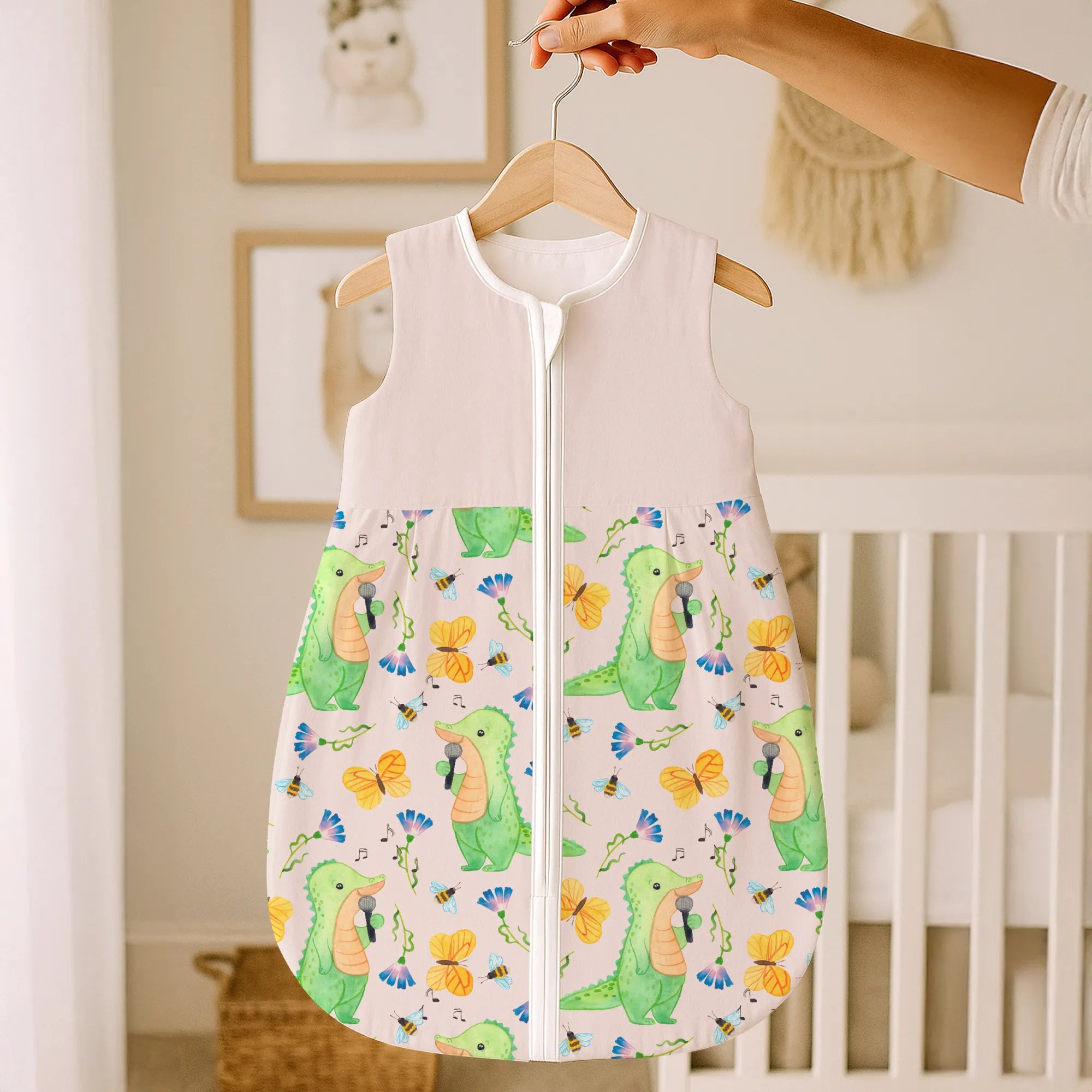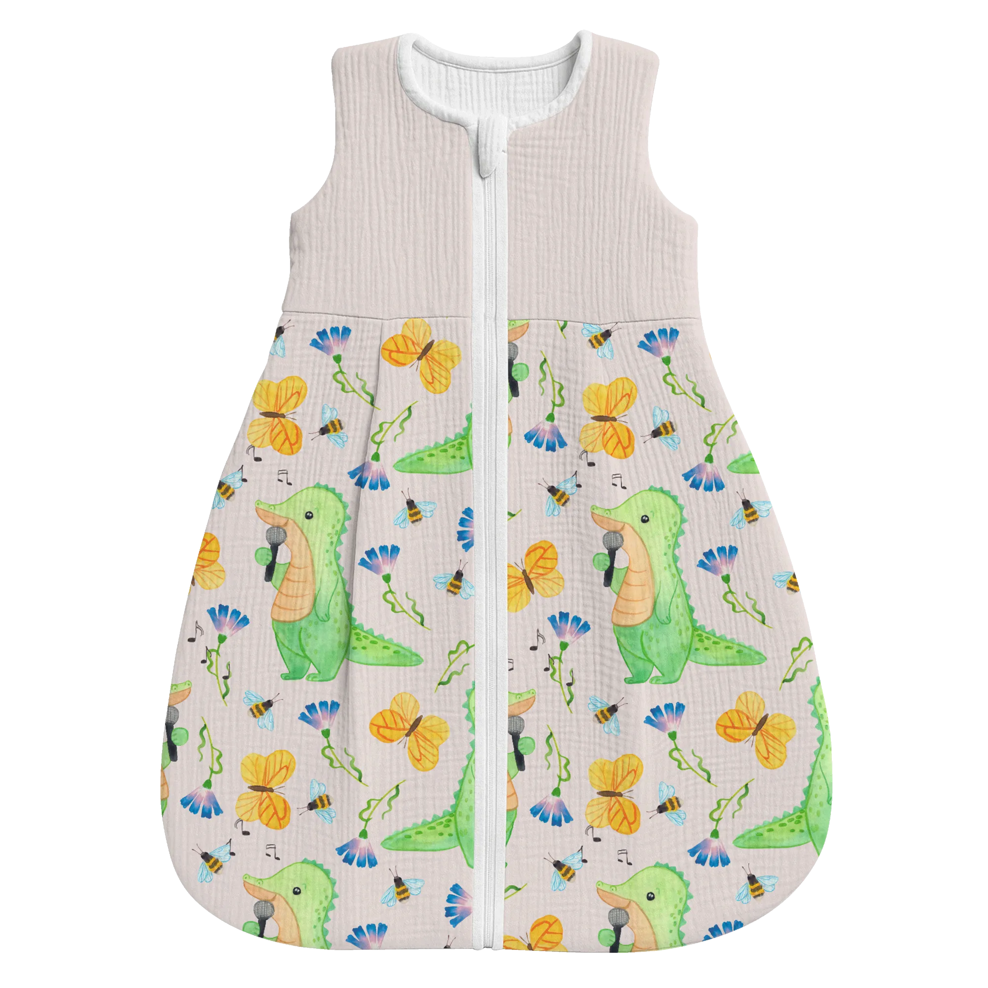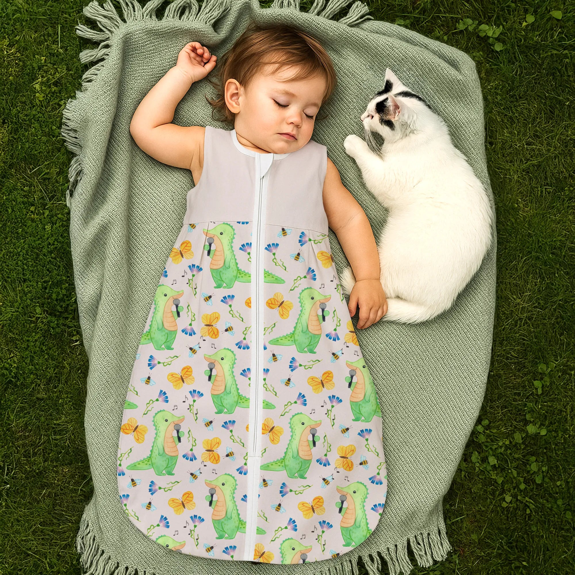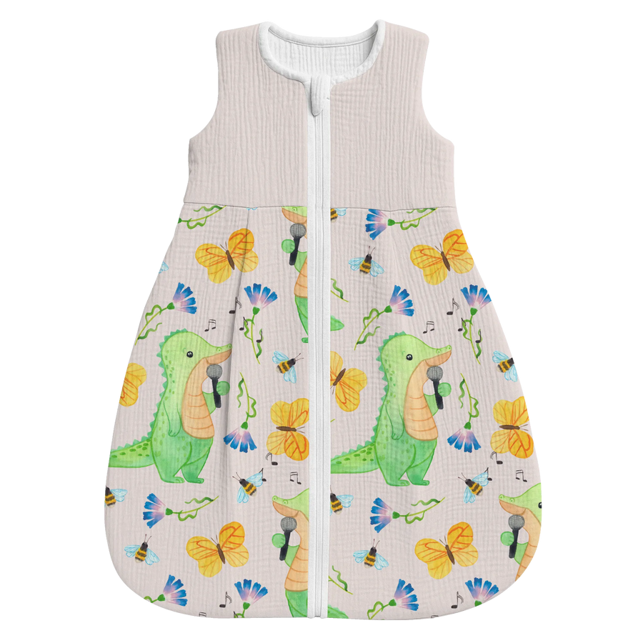 Dieses besondere Modell mit dem Motiv Krokodil Singen Tage aus unserer beliebten Hobby & Sport Kollektion fängt die Lebensfreude ein, die Musik in unseren Alltag bringt. Das Krokodil auf der Vorderseite singt mit voller Hingabe und erinnert uns an die Botschaft des Slogans: Es gibt schlechte Tage, und es gibt Tage, an denen ich singe. Dieser Babyschlafsack ist das ideale Geschenk für alle Eltern, die selbst Hobbysänger sind, in einer Band spielen oder einfach die Musik lieben und diese Leidenschaft an die nächste Generation weitergeben möchten. 🎤✨
