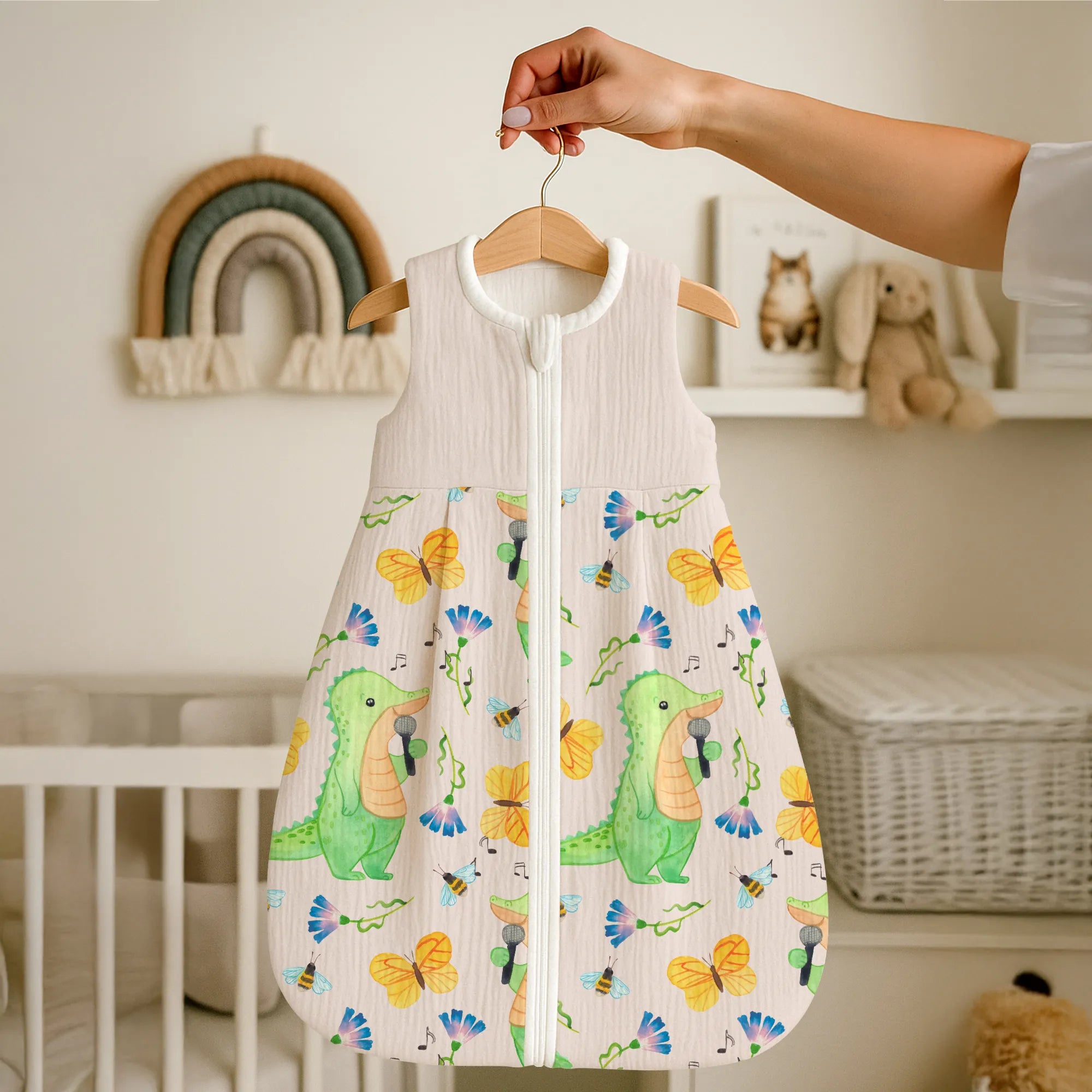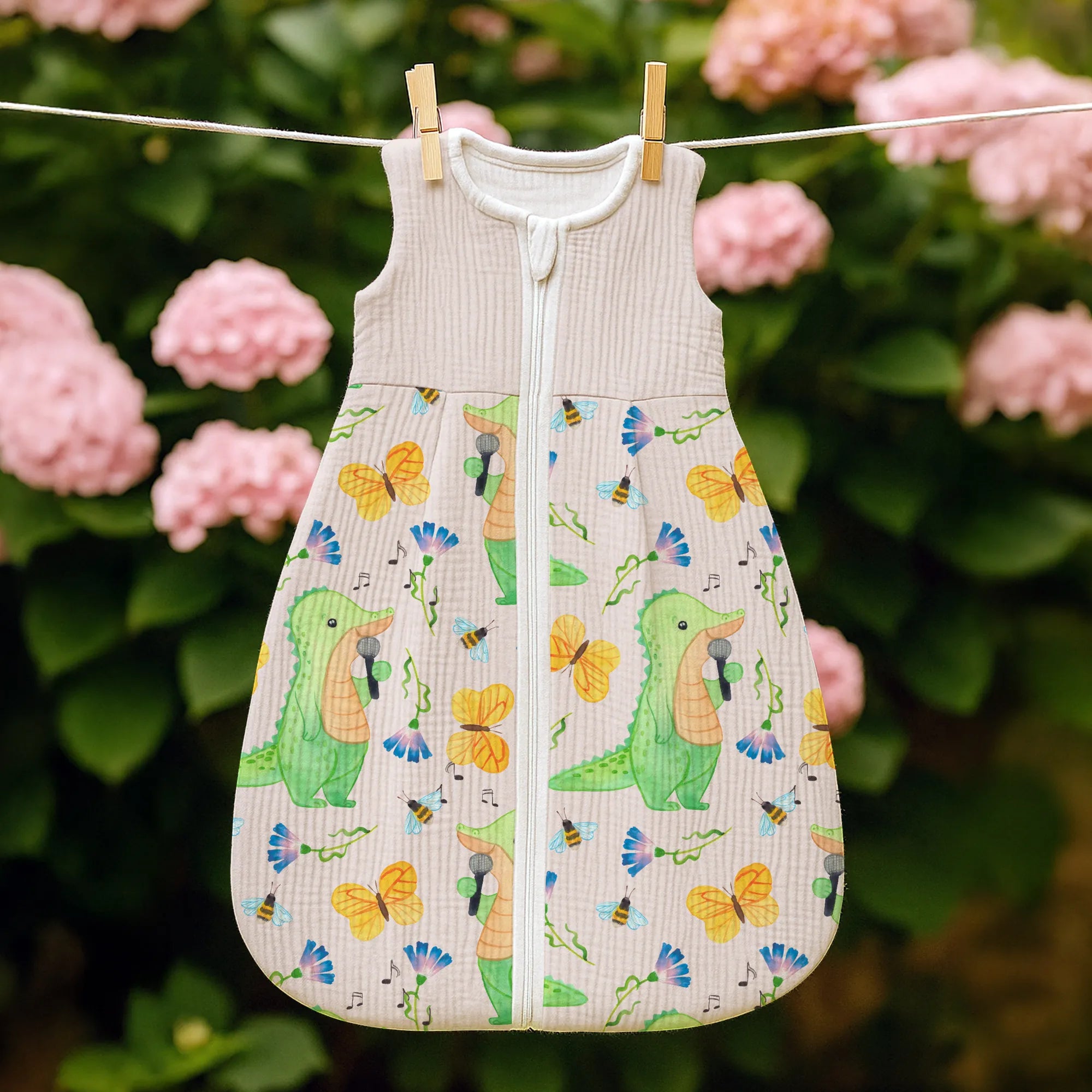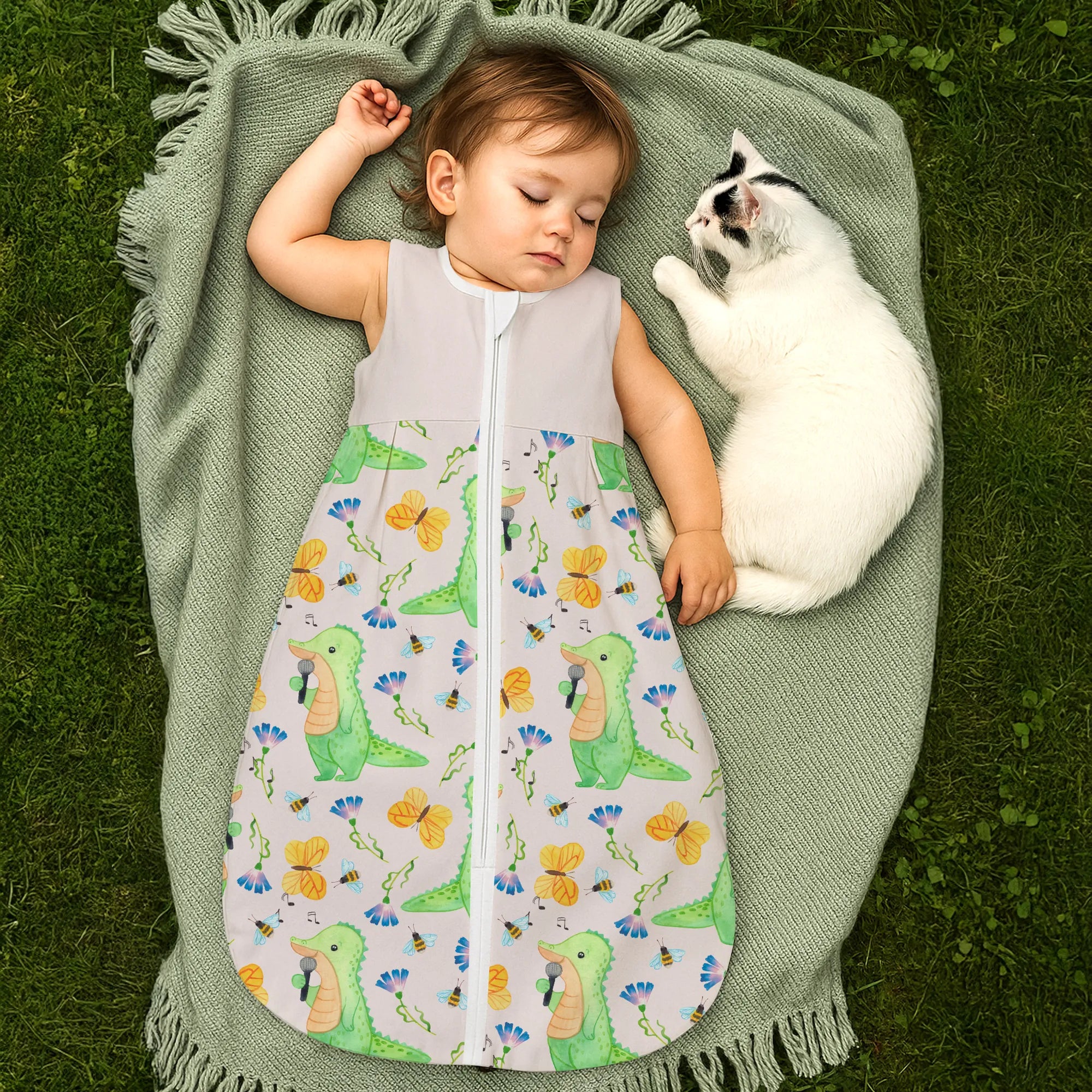 Dieses besondere Modell mit dem Motiv Krokodil Singen Tage aus unserer beliebten Hobby & Sport Kollektion fängt die Lebensfreude ein, die Musik in unseren Alltag bringt. Das Krokodil auf der Vorderseite singt mit voller Hingabe und erinnert uns an die Botschaft des Slogans: Es gibt schlechte Tage, und es gibt Tage, an denen ich singe. Dieser Babyschlafsack ist das ideale Geschenk für alle Eltern, die selbst Hobbysänger sind, in einer Band spielen oder einfach die Musik lieben und diese Leidenschaft an die nächste Generation weitergeben möchten. 🎤✨