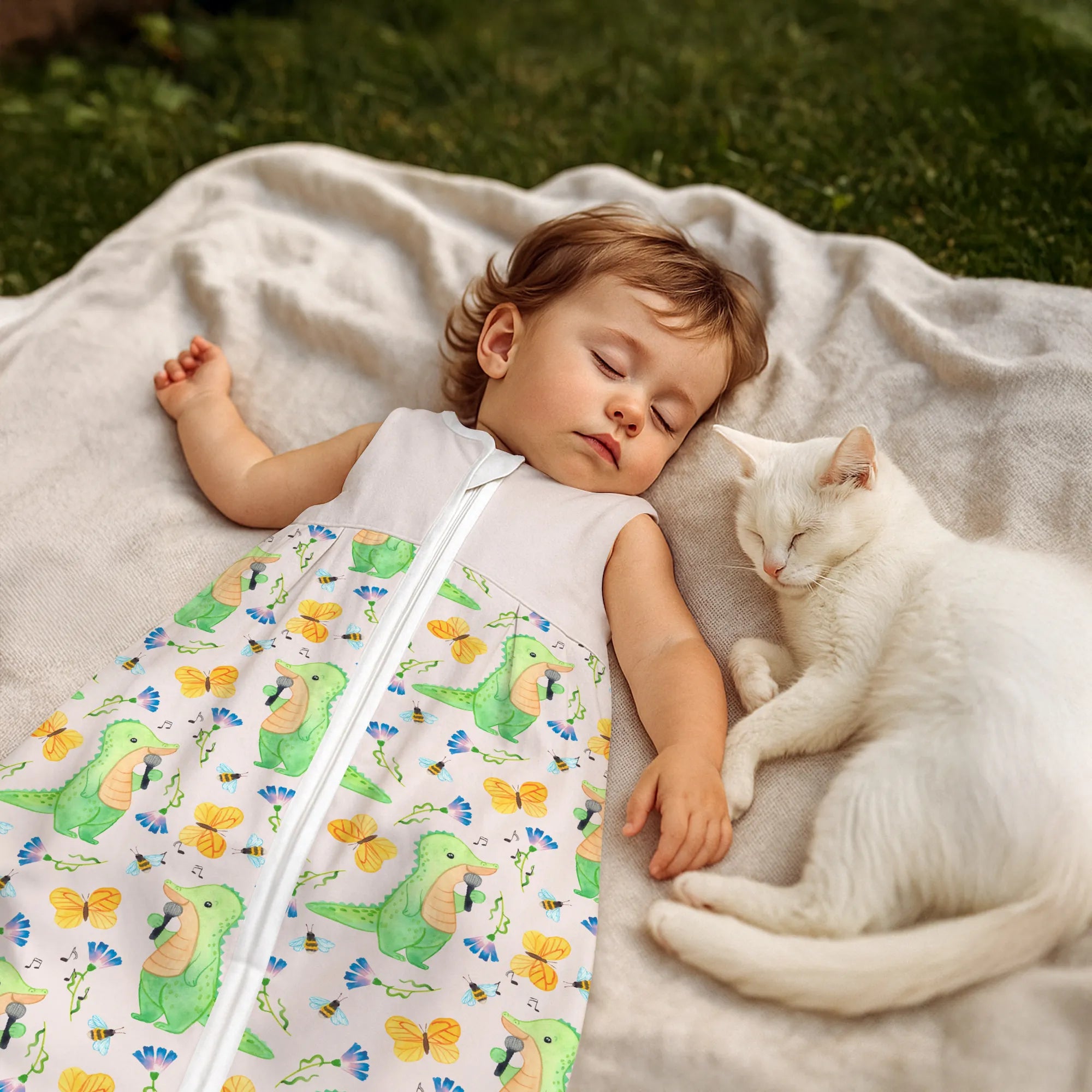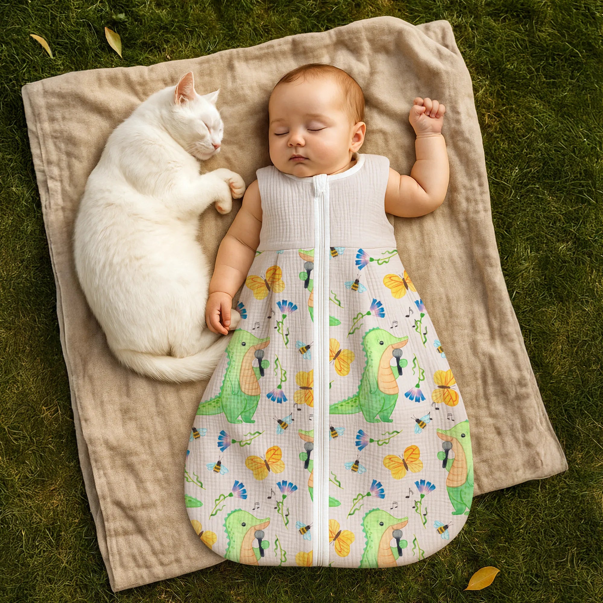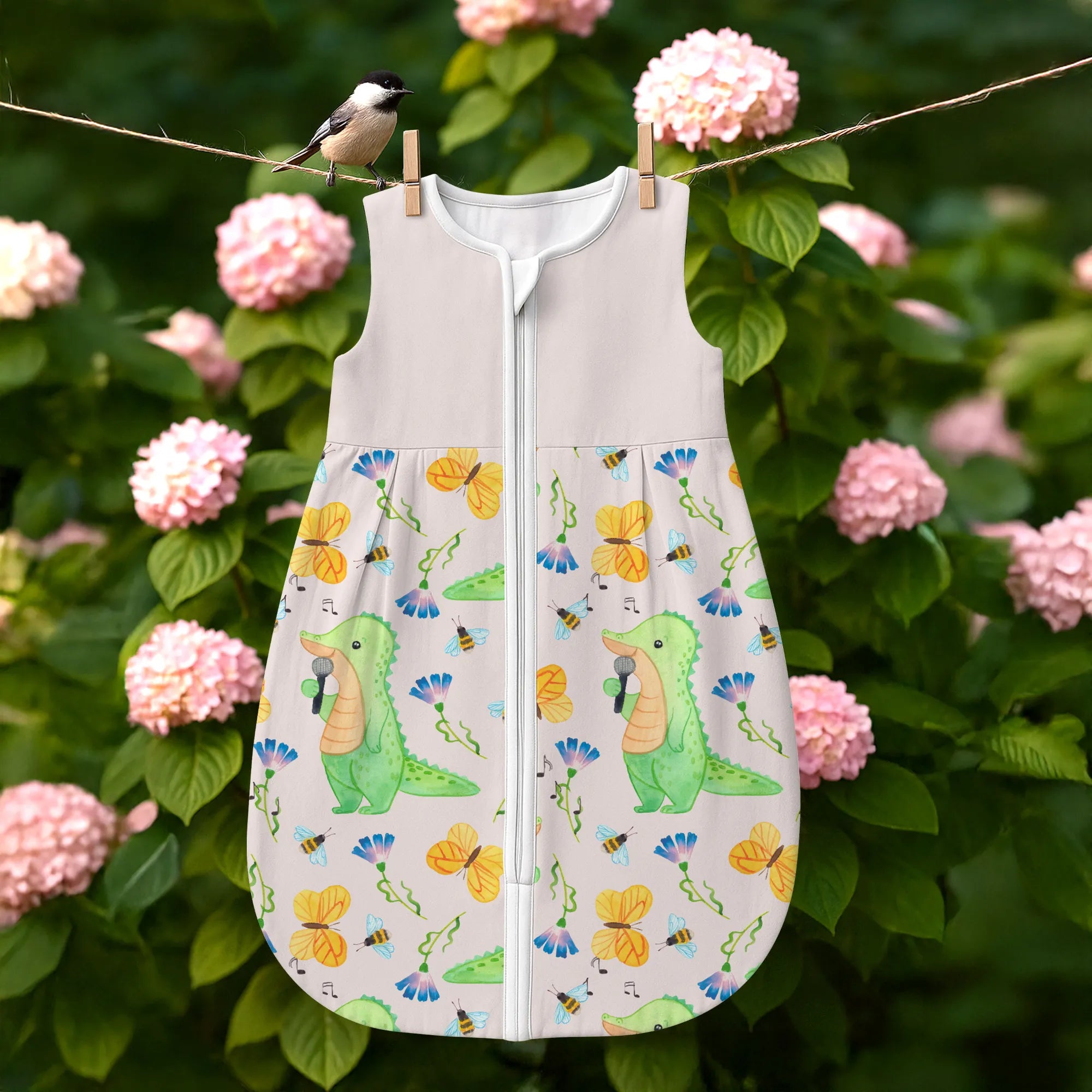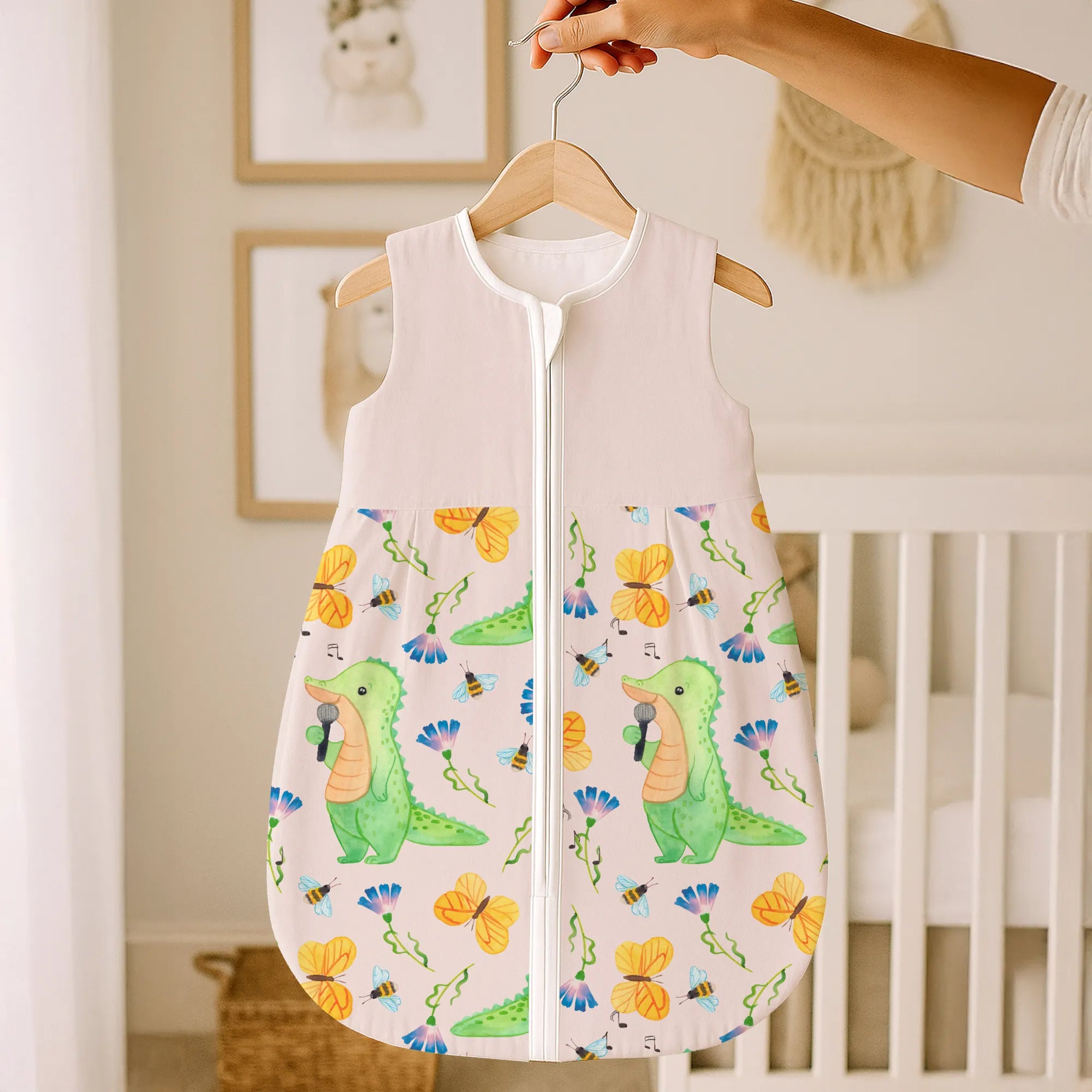 Dieses besondere Modell mit dem Motiv Krokodil Singen Tage aus unserer beliebten Hobby & Sport Kollektion fängt die Lebensfreude ein, die Musik in unseren Alltag bringt. Das Krokodil auf der Vorderseite singt mit voller Hingabe und erinnert uns an die Botschaft des Slogans: Es gibt schlechte Tage, und es gibt Tage, an denen ich singe. Dieser Babyschlafsack ist das ideale Geschenk für alle Eltern, die selbst Hobbysänger sind, in einer Band spielen oder einfach die Musik lieben und diese Leidenschaft an die nächste Generation weitergeben möchten. 🎤✨