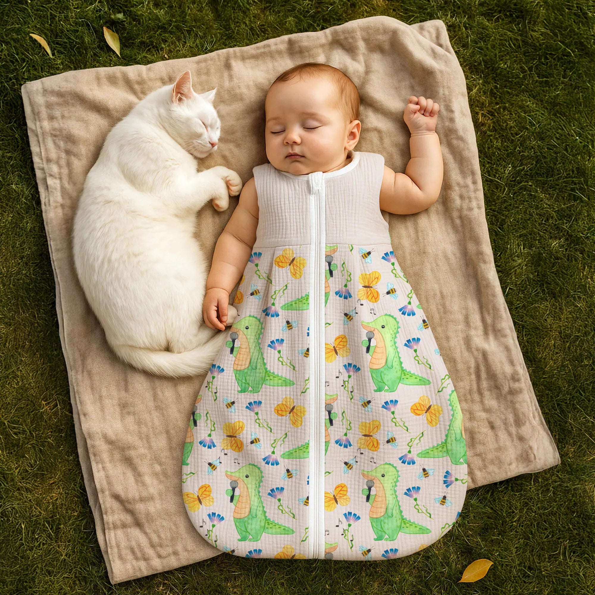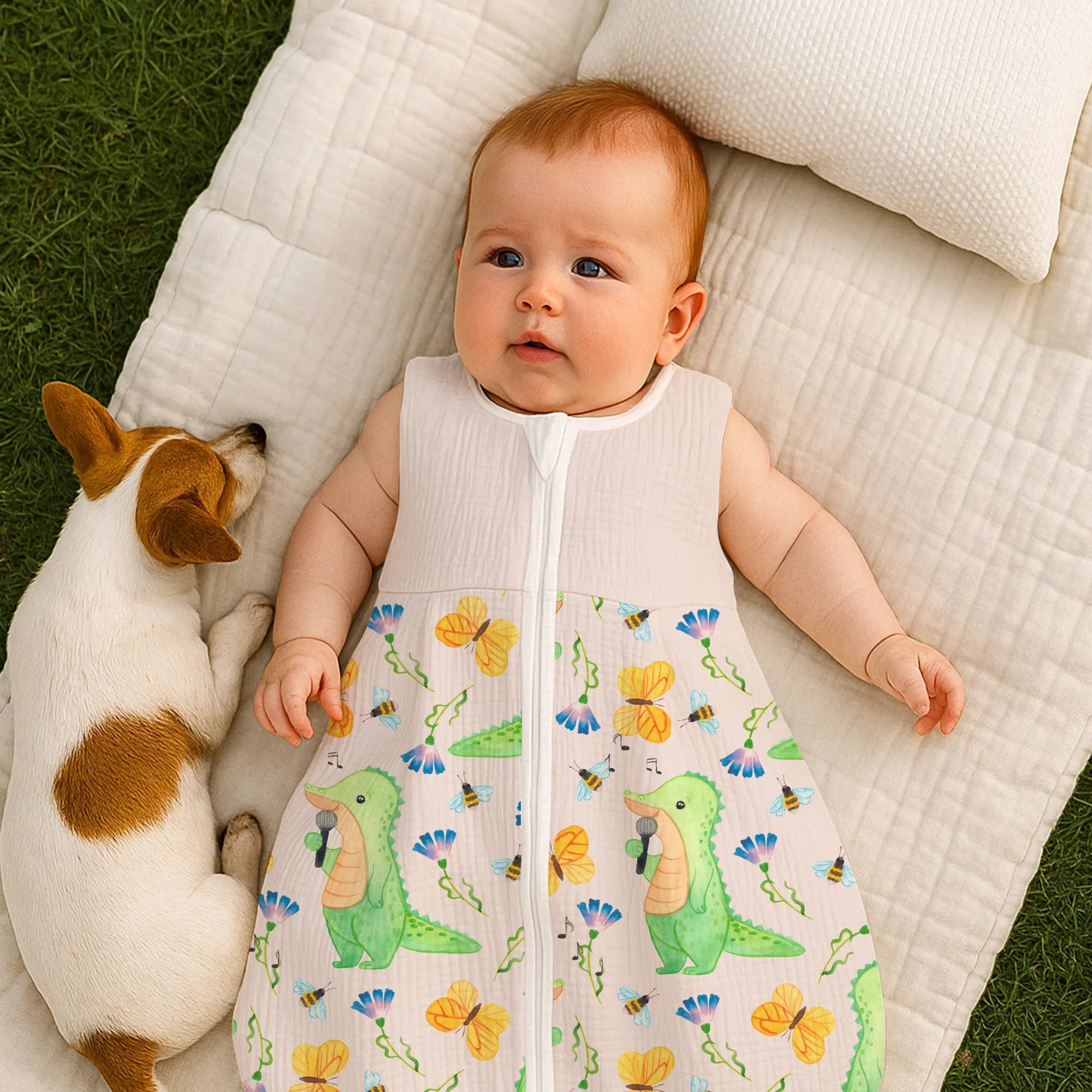 Stell dir vor, dein kleiner Schatz wird von einem fröhlich singenden Krokodil in das Reich der Träume begleitet. Unser Schlafsack Baby von Mr. & Mrs. Panda ist nicht einfach nur ein Schlafutensil, sondern eine warme Umarmung für die Nacht. 🐊🎶