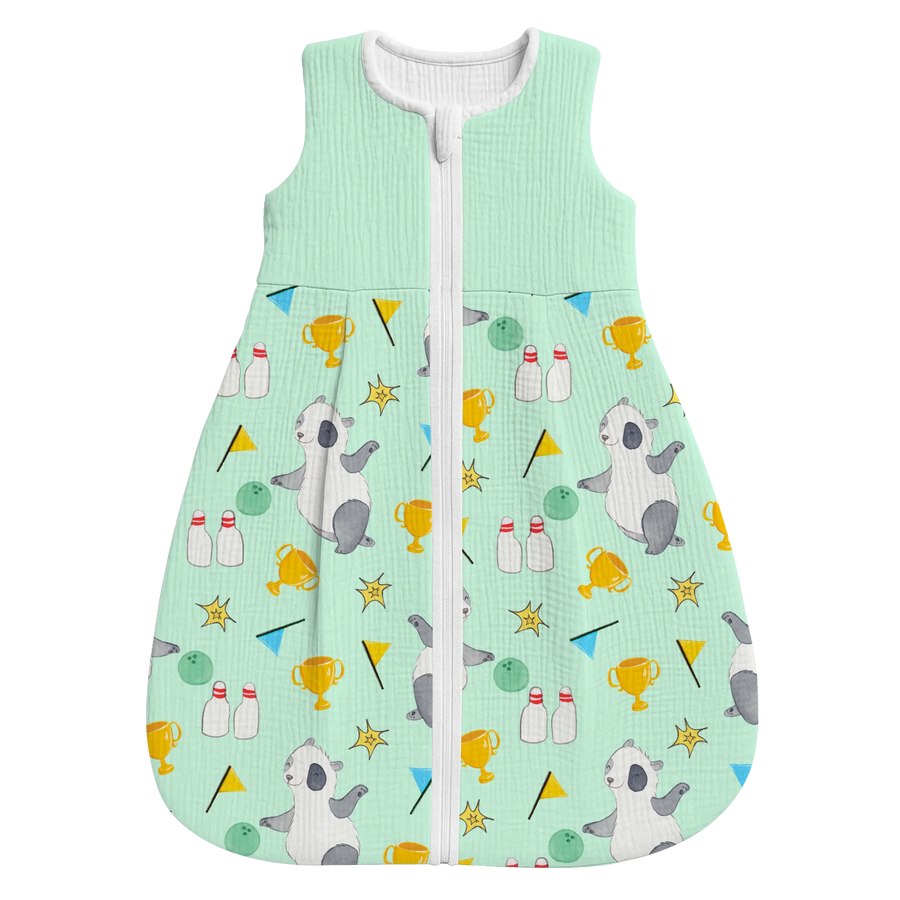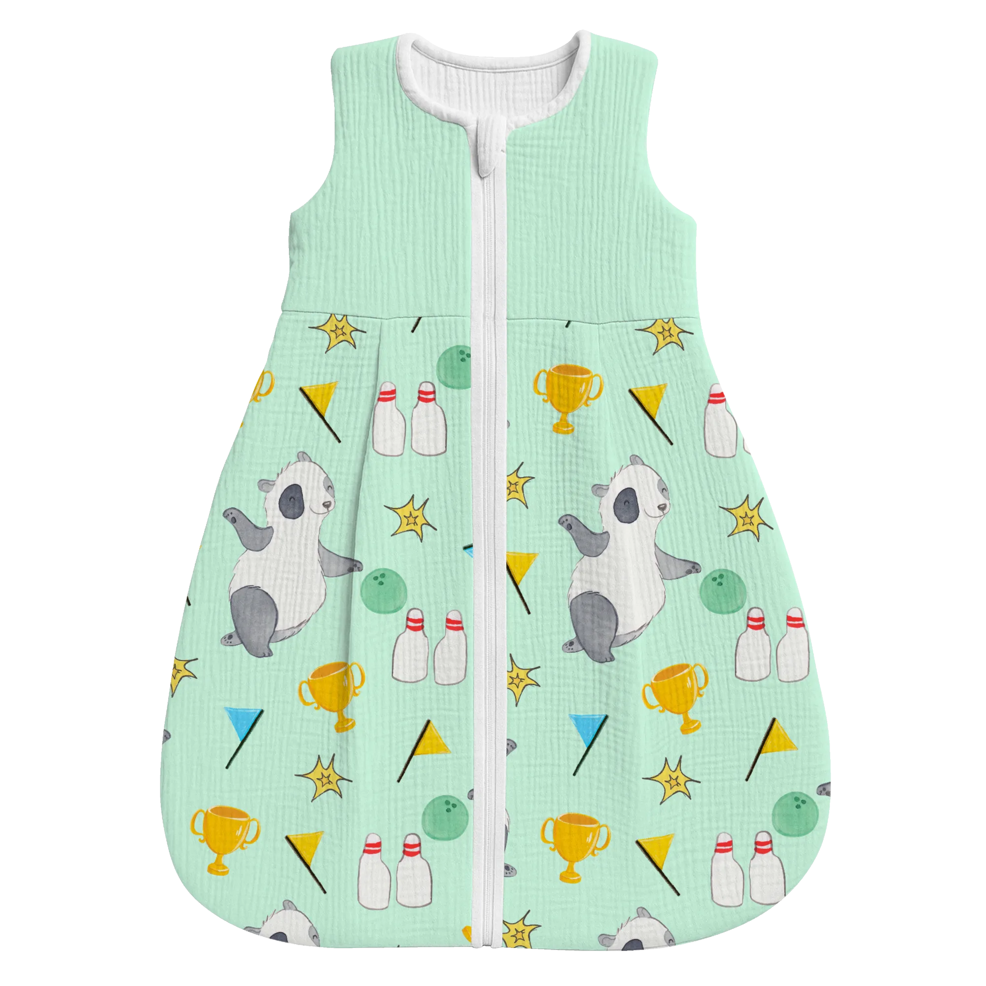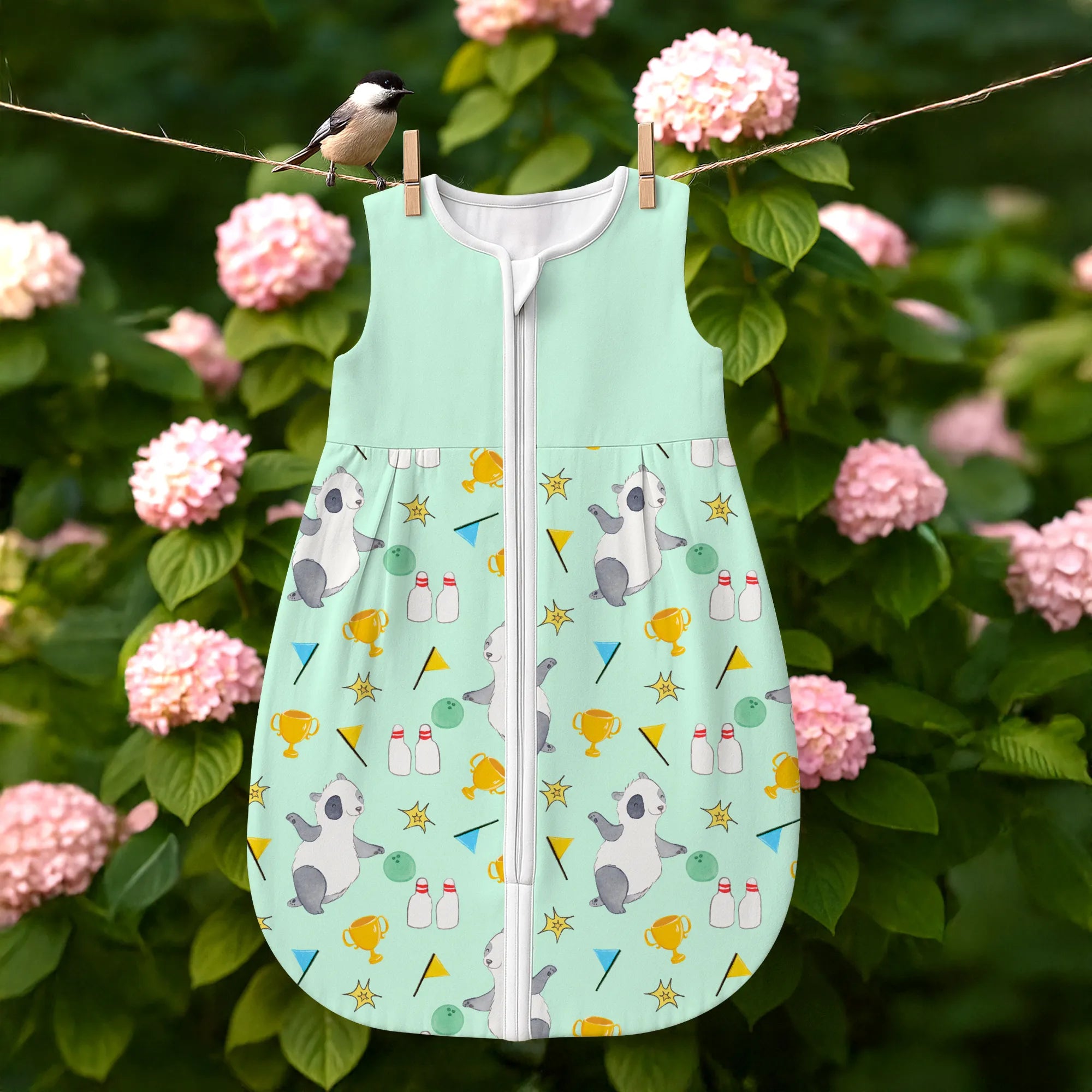 Das niedliche Motiv Panda Bowling Tage aus unserer beliebten Hobby & Sport Kollektion ist die ideale Wahl für alle Eltern, die ihre Leidenschaft für die Bowlingbahn oder die Kegelbahn an die nächste Generation weitergeben möchten. Der kleine Panda, der voller Elan seine Bowlingkugel präsentiert, wird sofort zum Liebling im Kinderzimmer. Kombiniert mit dem humorvollen Spruch „Es gibt schlechte Tage, und es gibt Tage, an denen ich zum Bowling gehe.“, ist dieser Babyschlafsack ein echtes Statement-Piece.