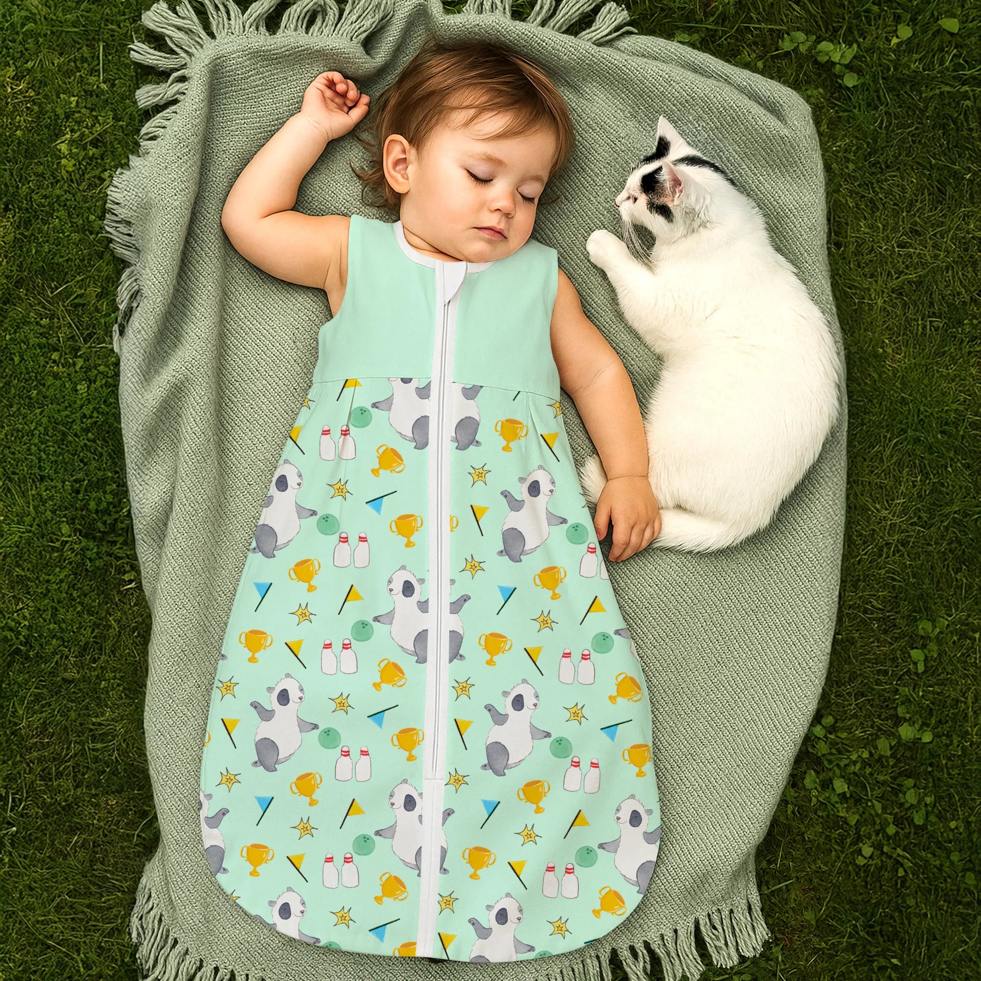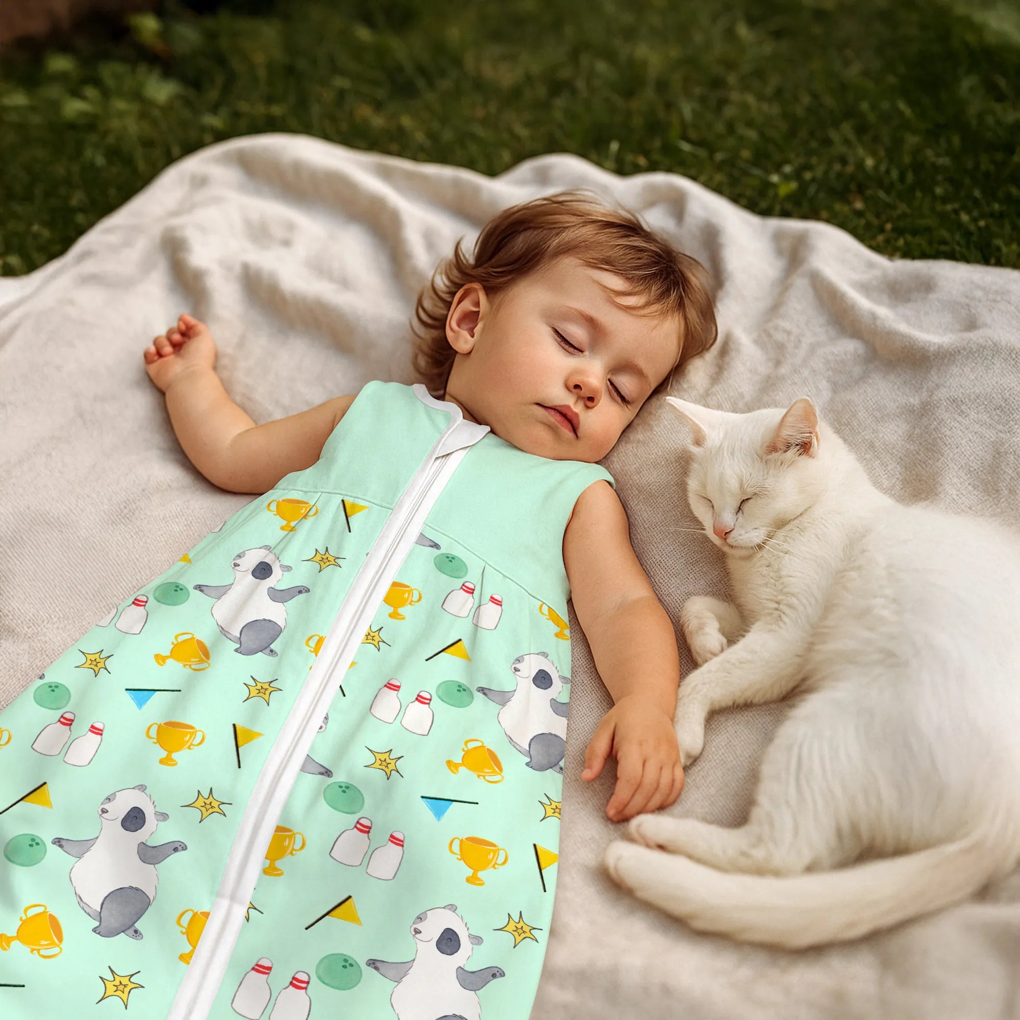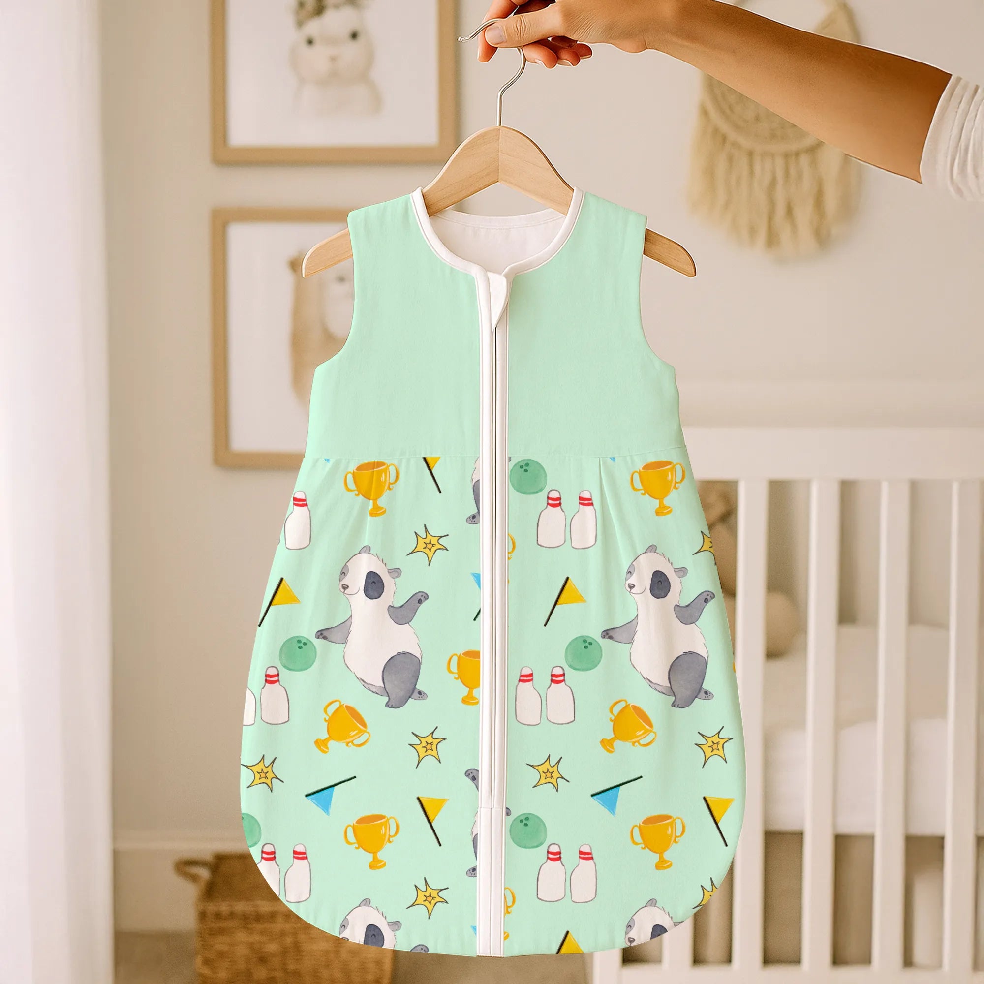 Das niedliche Motiv Panda Bowling Tage aus unserer beliebten Hobby & Sport Kollektion ist die ideale Wahl für alle Eltern, die ihre Leidenschaft für die Bowlingbahn oder die Kegelbahn an die nächste Generation weitergeben möchten. Der kleine Panda, der voller Elan seine Bowlingkugel präsentiert, wird sofort zum Liebling im Kinderzimmer. Kombiniert mit dem humorvollen Spruch „Es gibt schlechte Tage, und es gibt Tage, an denen ich zum Bowling gehe.“, ist dieser Babyschlafsack ein echtes Statement-Piece.