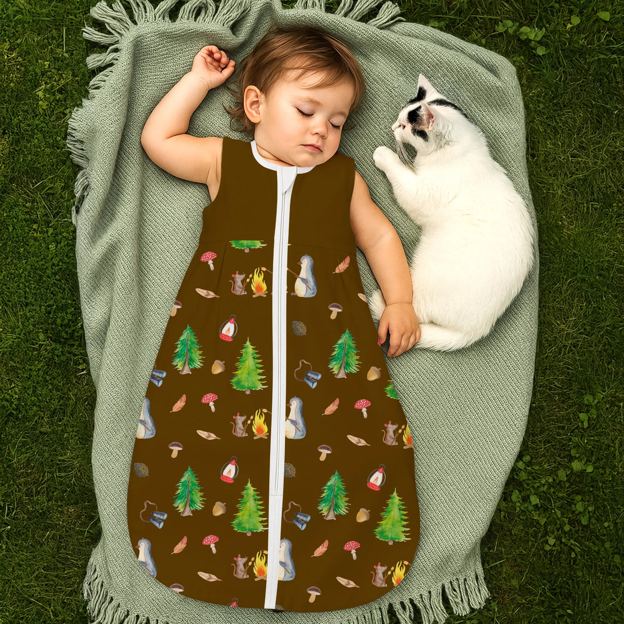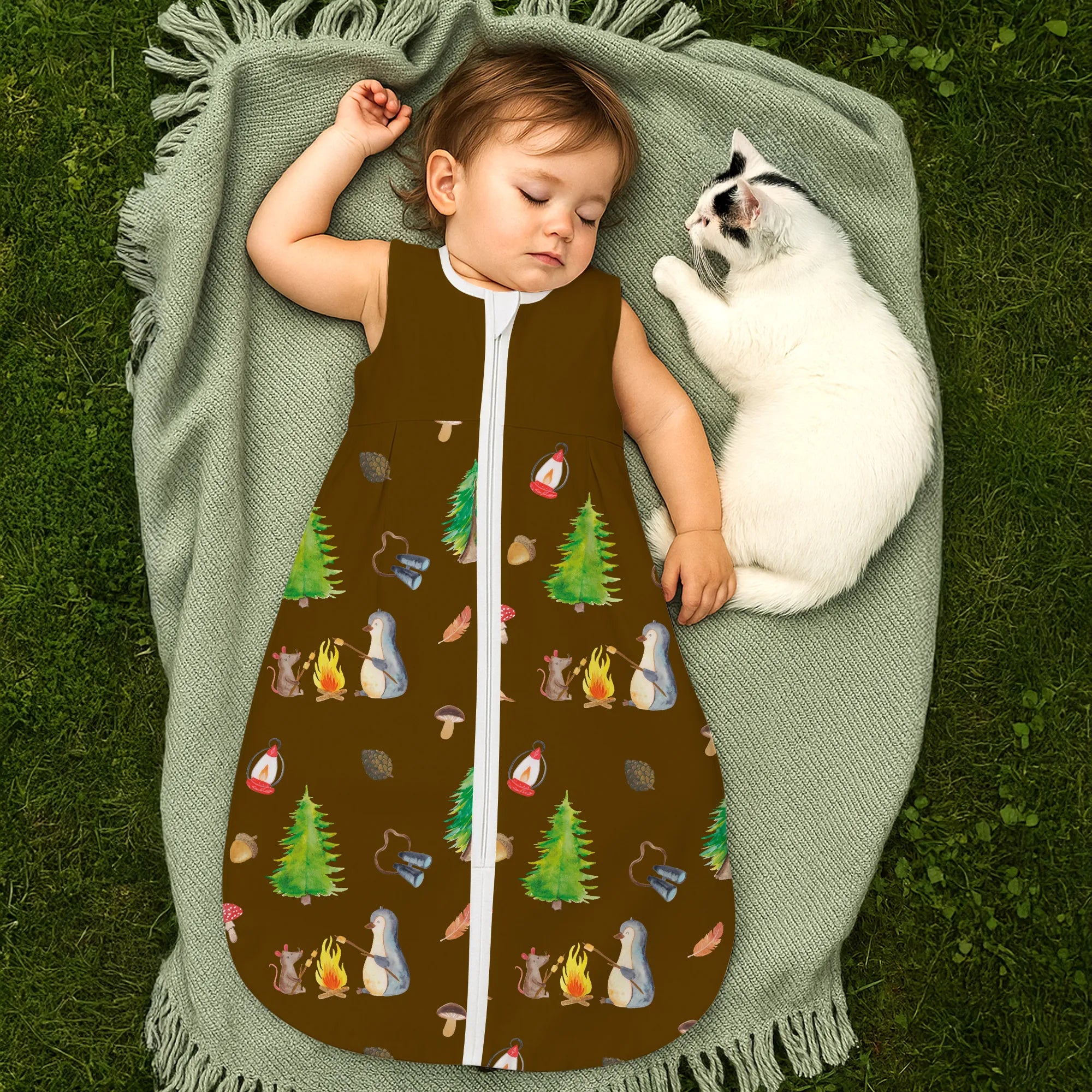 pingwin ognisko Babyschlafsack, Schlafsack Baby, Pinguin, Büro, Lebensmotivation, Lagerfeuer, Neustart, Lebensspruch, Marshmallows, Arbeit, Feuer, Grillen, Maus, Büroalltag, Job, Motivation, Leben, Pinguine, Liebe