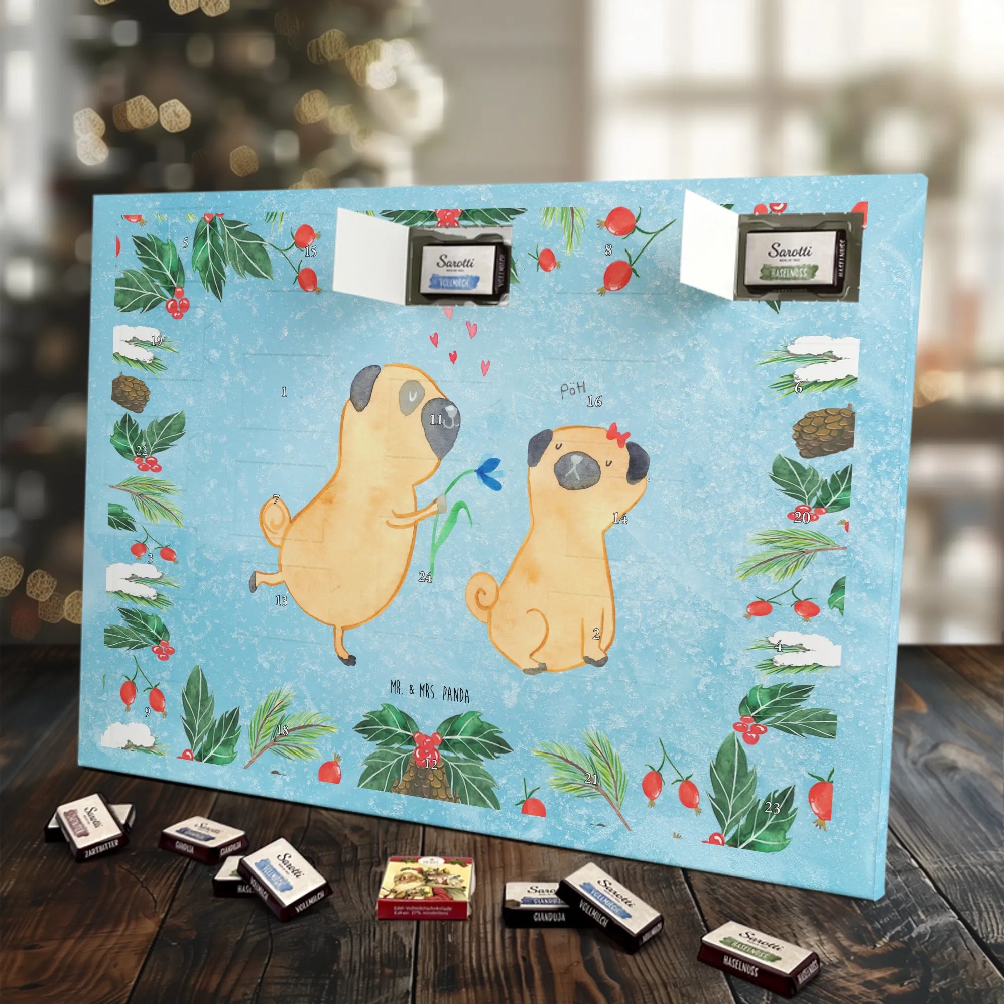 mops Zakochani - Classic - z napisem - lodowoniebieski