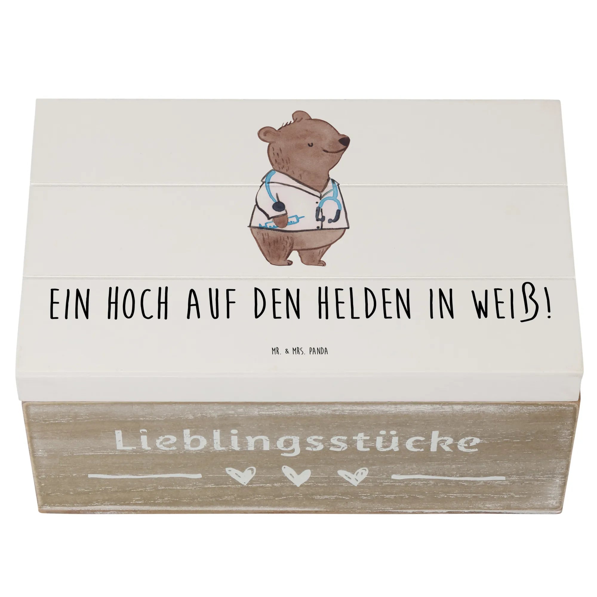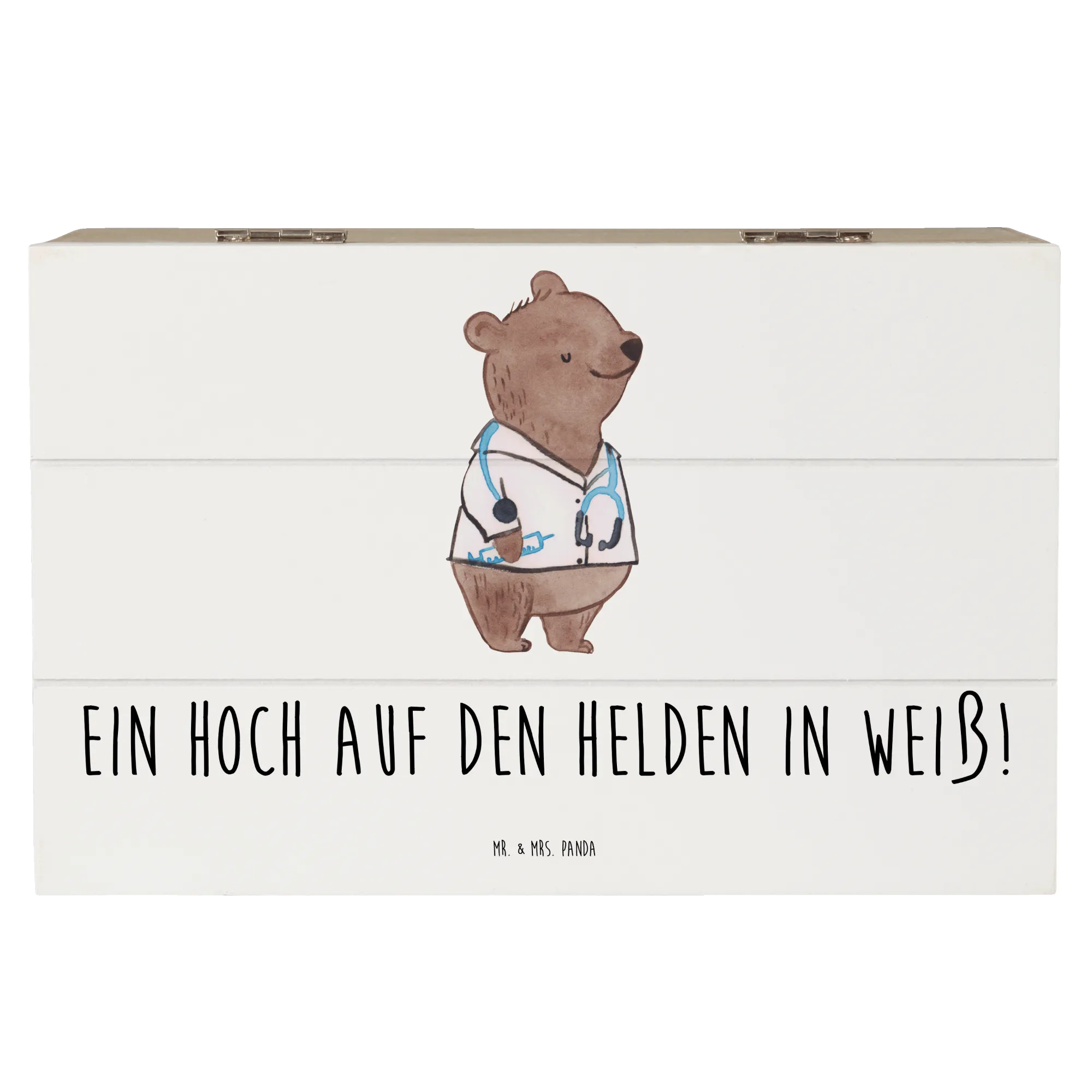 Die wunderschöne Holzkiste von Mr. & Mrs. Panda mit dem Motiv 'Arzt' ist das ideale Geschenk, um ganz besonderen Menschen deine Dankbarkeit auszudrücken. Sie kommt aus unserer zauberhaften 'Danke'-Kollektion und eignet sich hervorragend als Erinnerungskiste für all die wertvollen Schätze aus deinem Leben. Egal, ob für einen Arzt, der mit viel Hingabe für seine Patienten sorgt, oder für eine Freundin, die immer für dich da ist – diese Kiste wird garantiert für Freude sorgen!