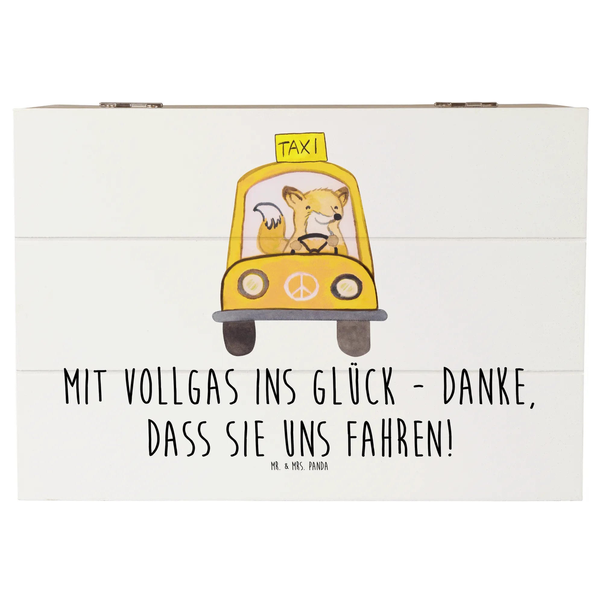 Die wunderschöne Holzkiste Chauffeur aus der Danke-Kollektion von Mr. & Mrs. Panda ist das perfekte Geschenk für jeden, der mit Gedanken an besondere Momente seine Dankbarkeit zeigen möchte. Diese stilvolle Kiste, mit dem originellen Slogan „Mit Vollgas ins Glück - Danke, dass Sie uns fahren!“, ist nicht nur ein echter Blickfang, sondern auch unglaublich praktisch. Die Holzkiste eignet sich hervorragend als Aufbewahrungsort für die schönsten Erinnerungsstücke – sei es von der Kommunion, Konfirmation, oder einfach für die Schätze der Kindheit.