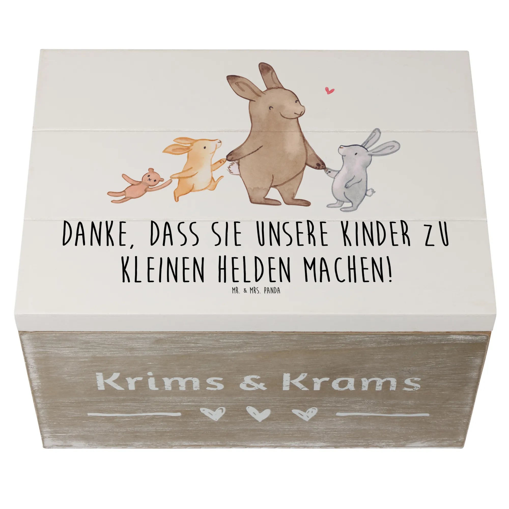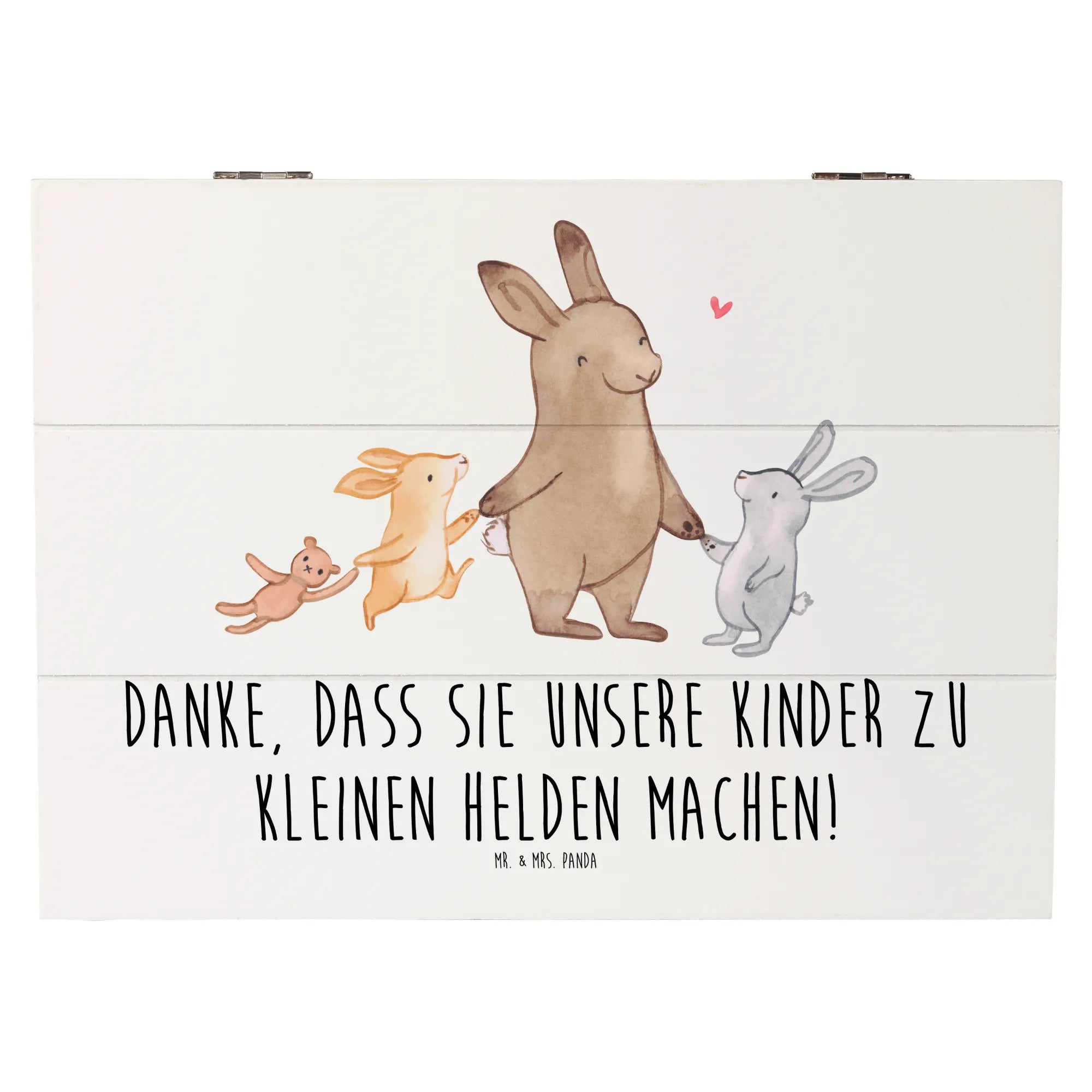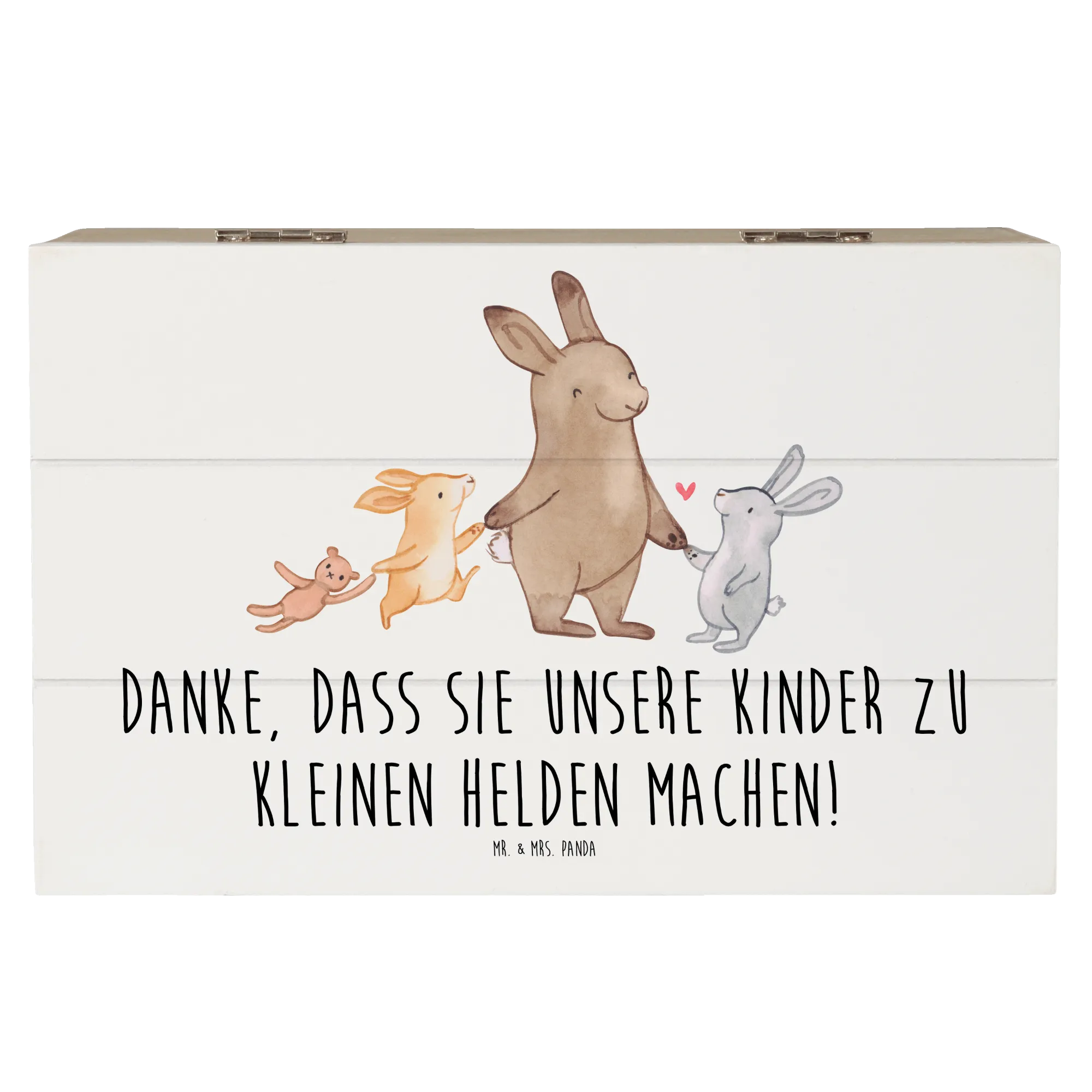 Die wunderschöne Holzkiste von Mr. & Mrs. Panda ist das perfekte Geschenk für Erzieher und Pädagogen, die jeden Tag Großes leisten. Bedruckt mit dem liebevollen Motiv 'Danke, dass Sie unsere Kinder zu kleinen Helden machen!', ist diese Erinnerungskiste eine herzliche Geste des Dankes, die immer einen Platz im Herzen der Beschenkten findet.