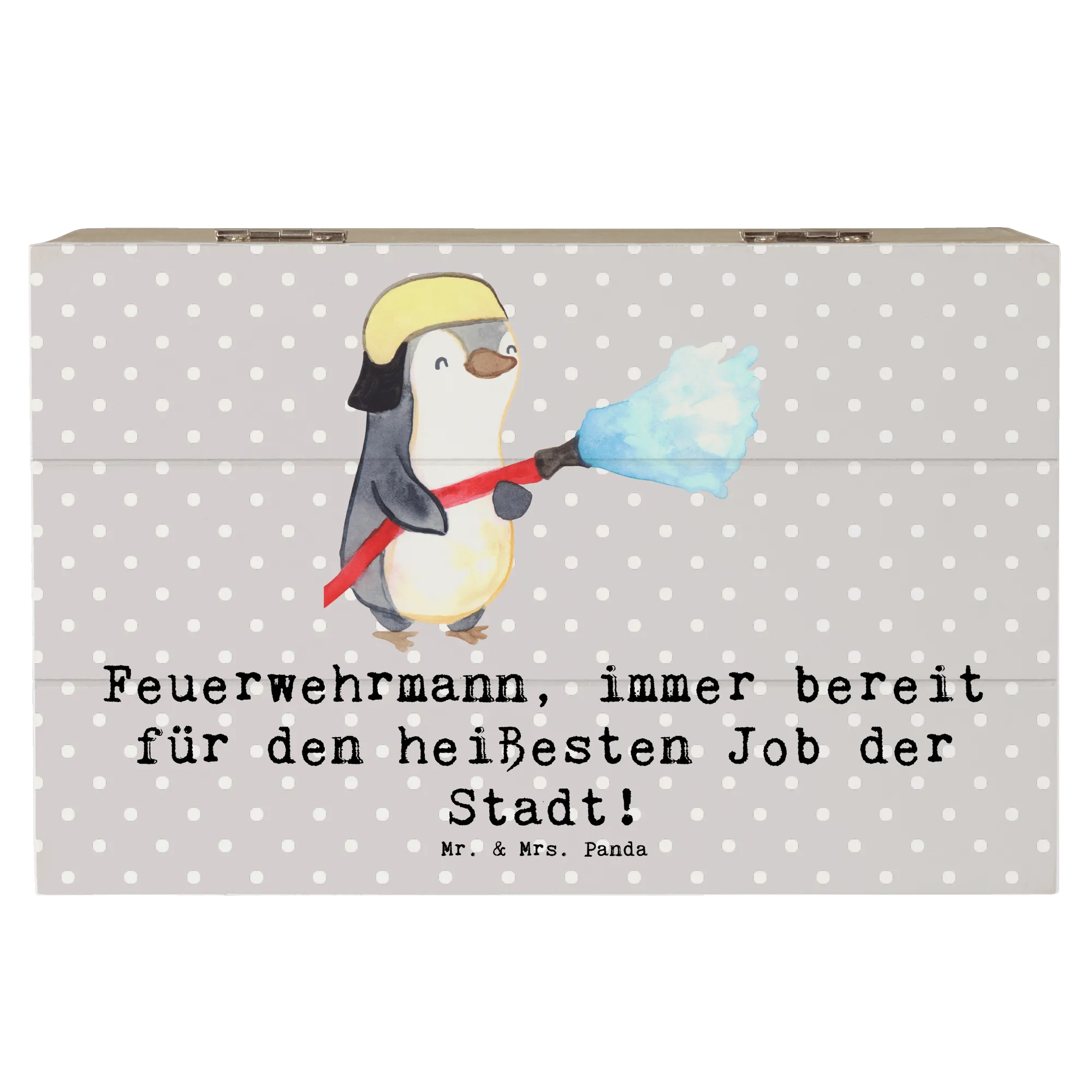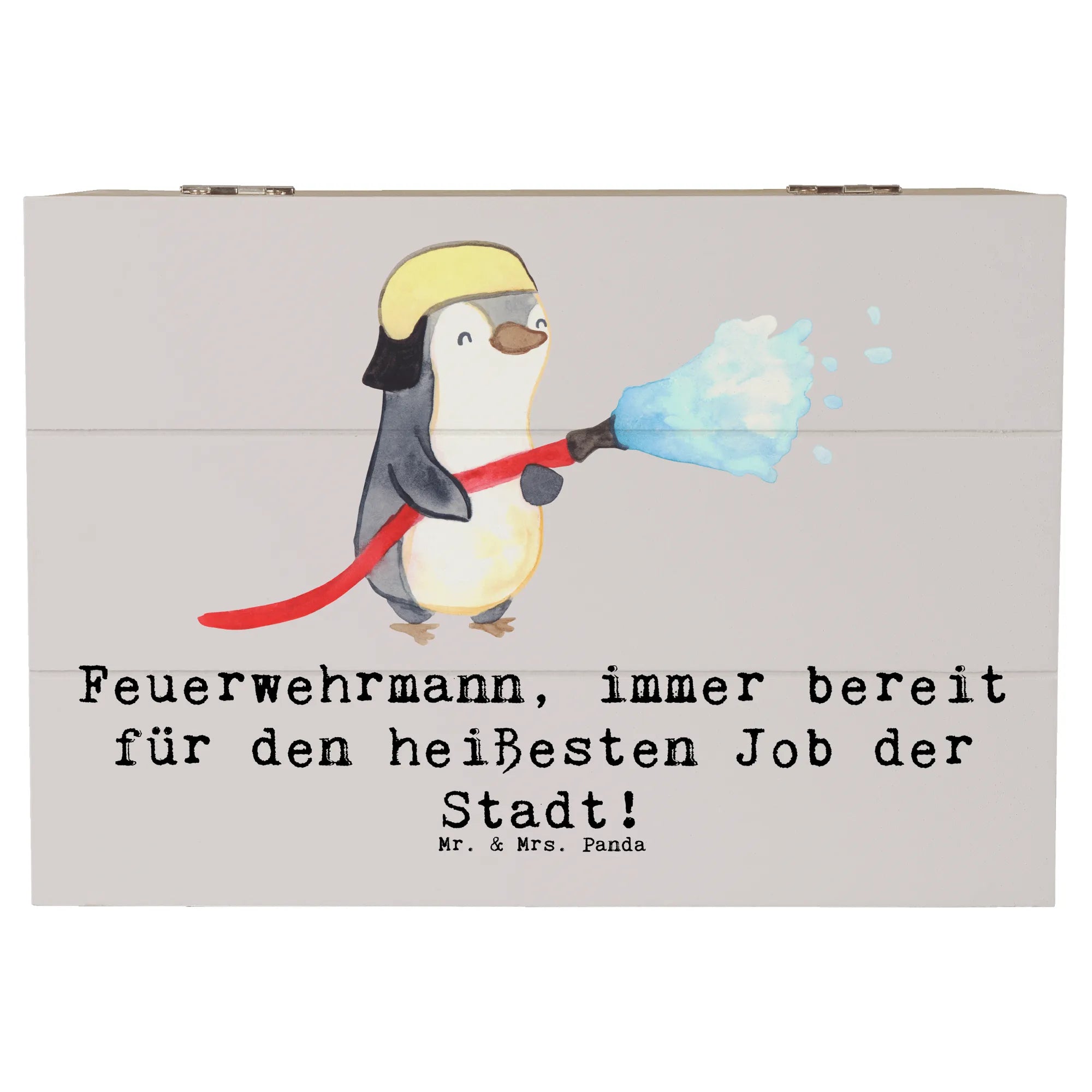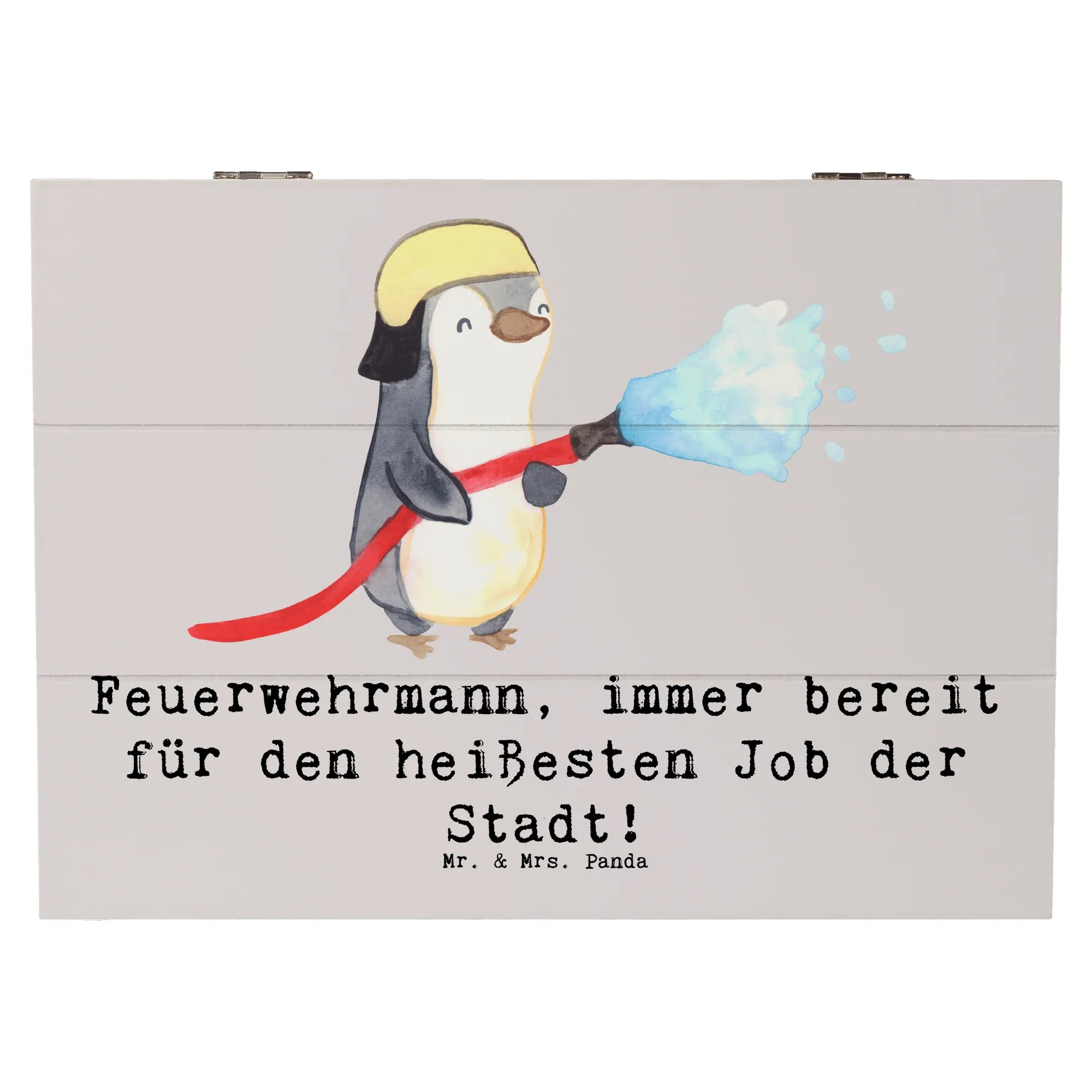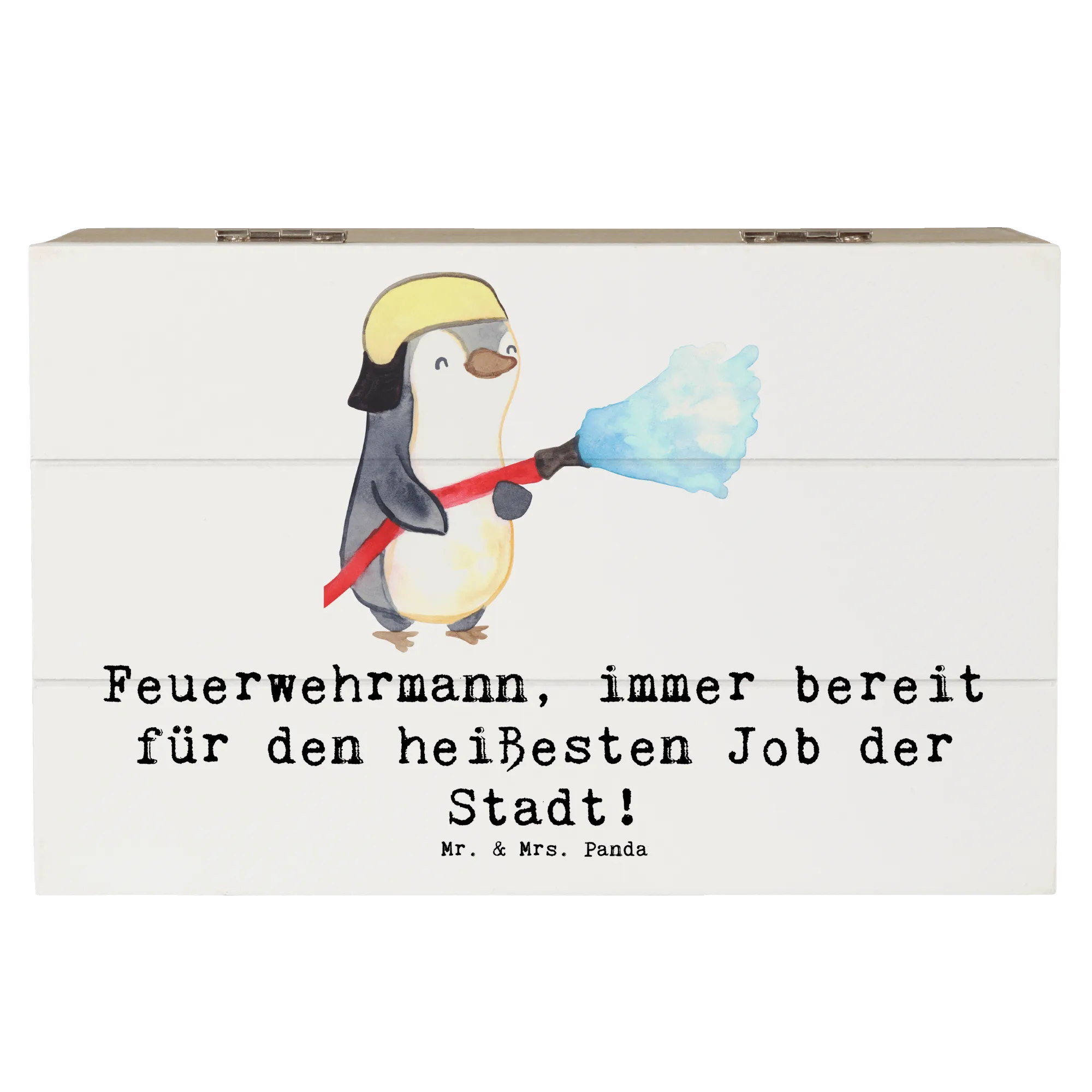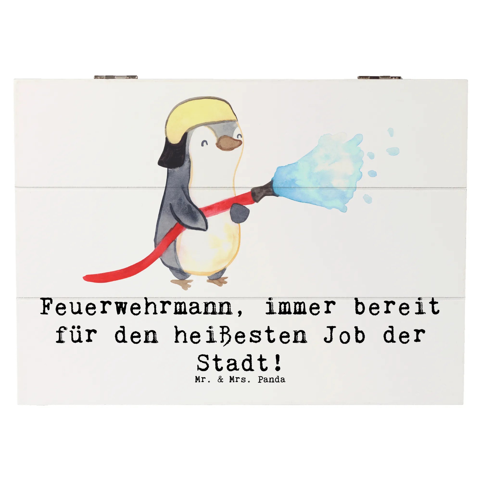 Du suchst nach dem perfekten Geschenk für einen Feuerwehrmann oder Feuerwehrfrau in Deinem Leben? Dann ist die Holzkiste "Feuerwehrmann – immer bereit für den heißesten Job der Stadt!" aus der Kollektion Berufe von Mr. & Mrs. Panda genau das Richtige! Diese bezaubernde Holzkiste bietet nicht nur einen Platz für all die kleinen Schätze und Erinnerungen, die man im Laufe der Zeit ansammeln kann, sondern bringt auch einen Hauch von Charme und Wärme in jedes Zuhause.