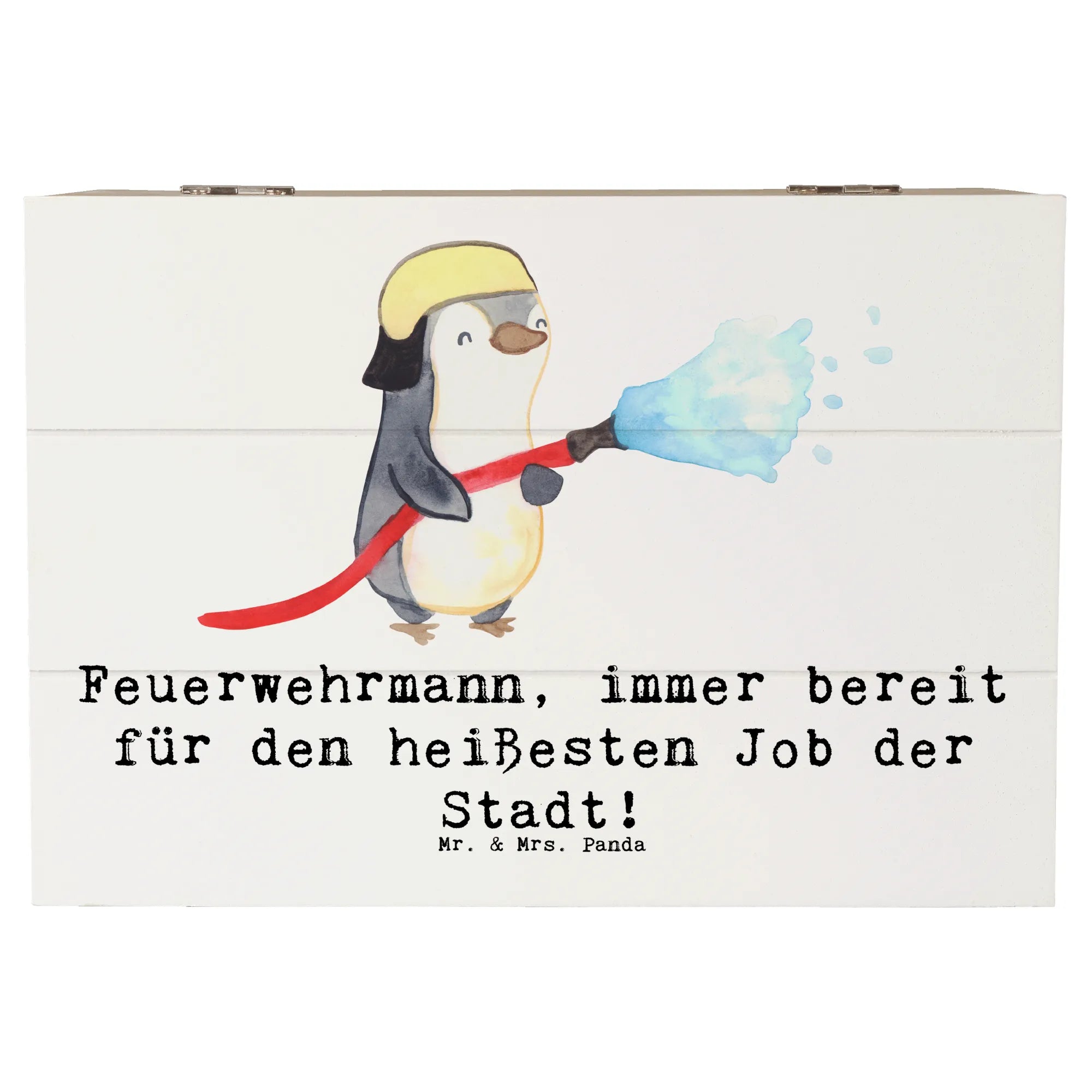 Bist du auf der Suche nach einer nachhaltigen Geschenkbox oder einer schicken Dekoration? Diese Kiste ist alles in einem! Schenke Freude und Erinnerungen mit der Feuerwehrmann-Holzkiste von Mr. & Mrs. Panda.