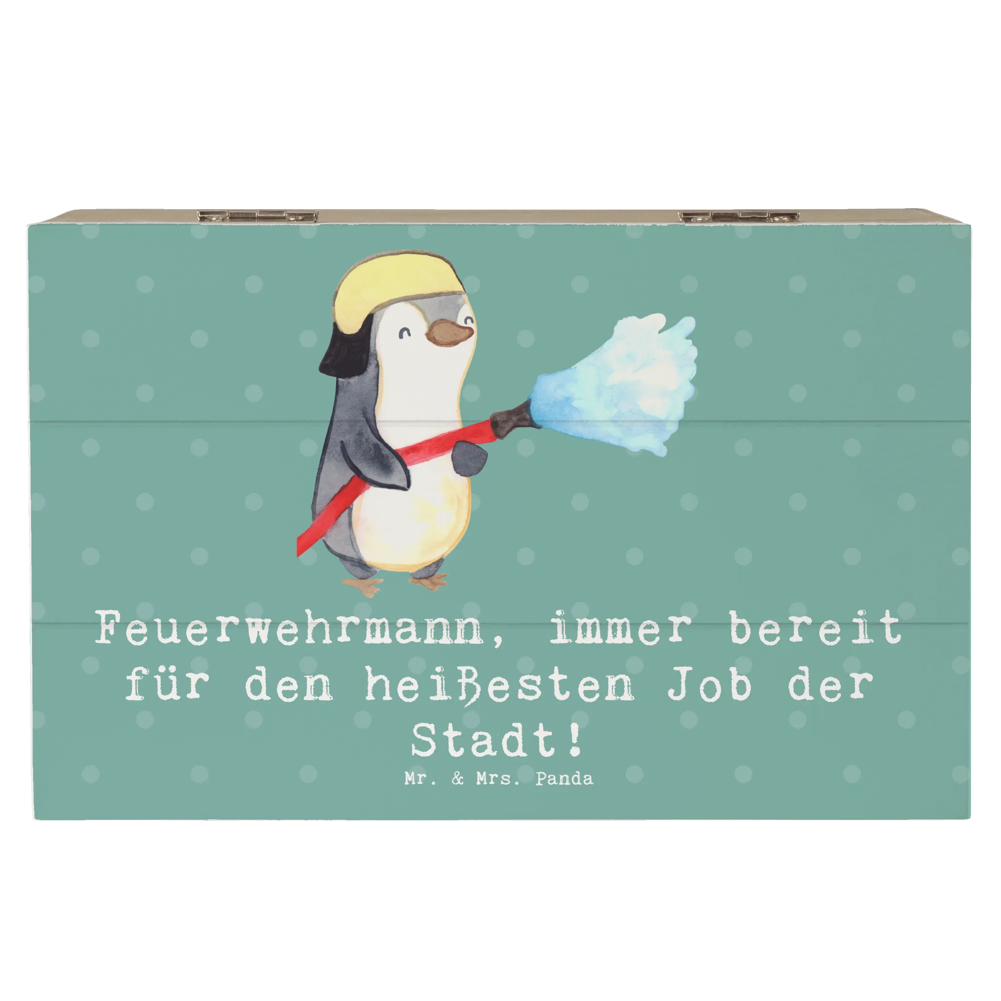Schaffe mit dieser einzigartigen Schatulle einen besonderen Platz für die schönsten Erinnerungen. Perfekt auch als ausgefallenes Geschenk zur Berufserfahrung oder als Dankeschön für deine Freunde, die im Feuerwehrdienst sind. Diese Holzkiste spricht nicht nur Feuerwehrliebhaber an, sondern ist auch ein tolles Geschenk für jeden, der die Berufe-Kollektion von Mr. & Mrs. Panda schätzt.