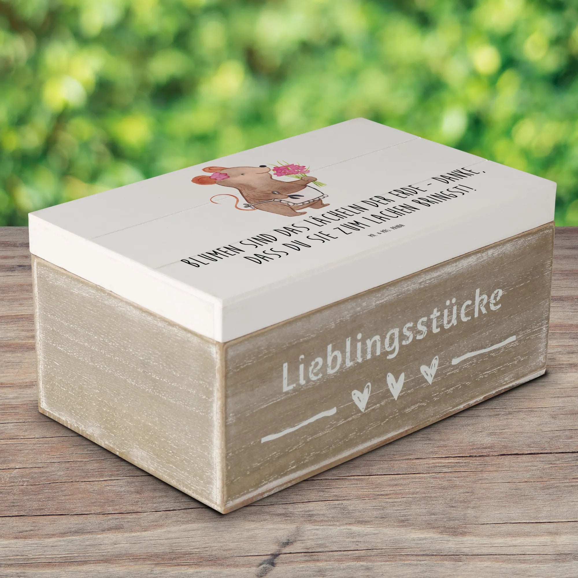 Diese wunderschöne Holzkiste von Mr. & Mrs. Panda ist der perfekte Begleiter für all deine wertvollen Erinnerungen und Schätze! Mit dem liebevollen Motiv "Florist" und dem zauberhaften Spruch "Blumen sind das Lächeln der Erde - danke, dass du sie zum Lachen bringst!" zieht sie alle Blicke auf sich. Diese Schatzkiste ist nicht nur eine Aufbewahrungsbox, sondern auch eine wunderschöne Dekokiste, die deinem Zuhause das gewisse Etwas verleiht.