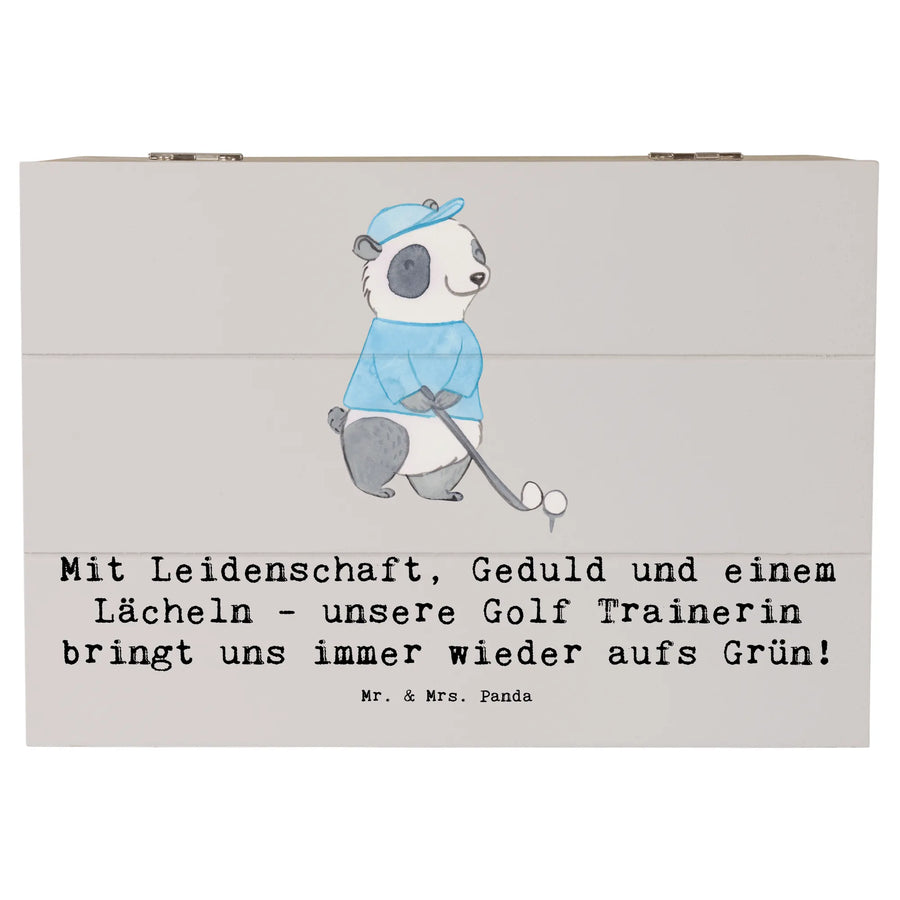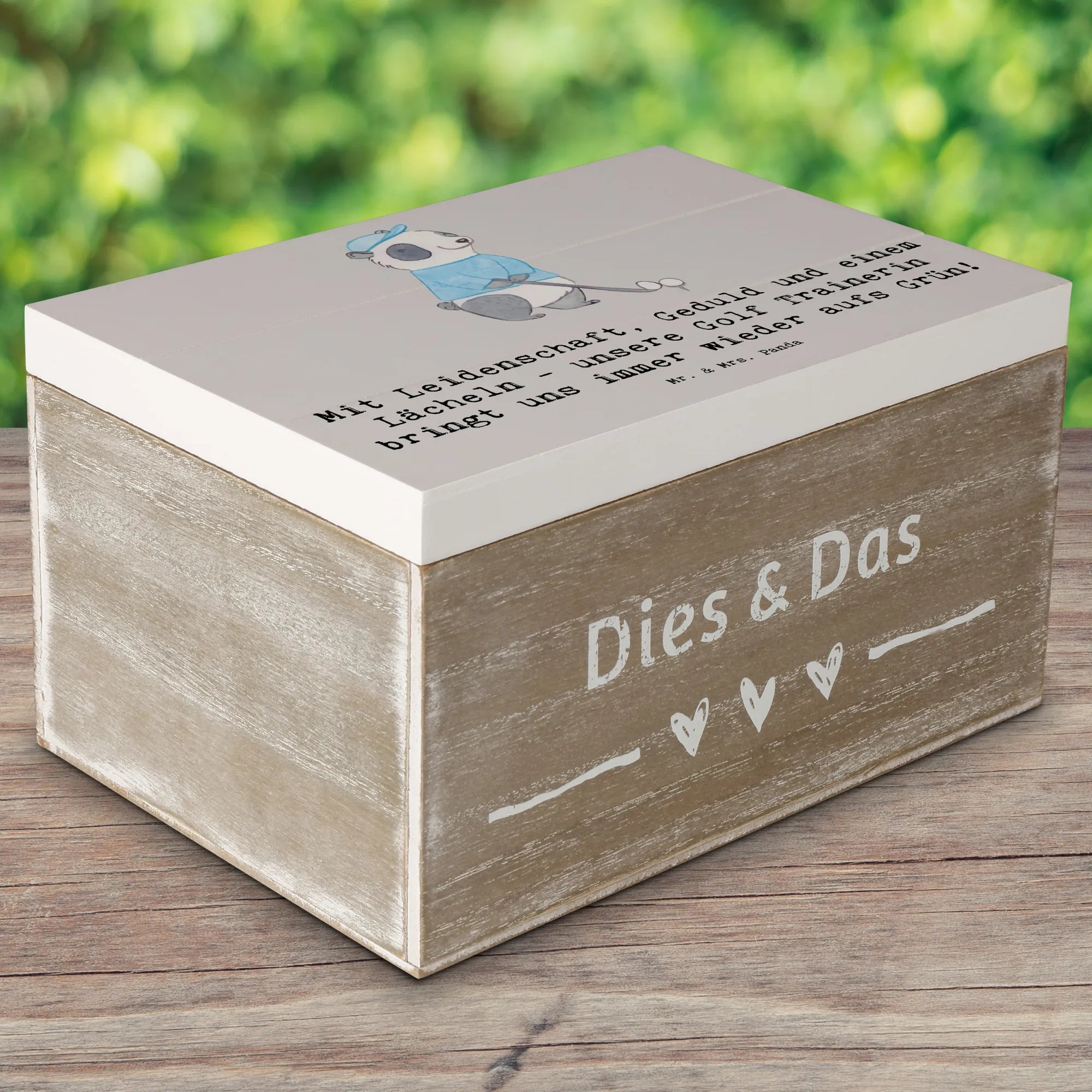 Entdecke die wundervolle Holzkiste "Golf Trainerin" von Mr. & Mrs. Panda - das perfekte Geschenk für jede Trainerin, die mit Leidenschaft, Geduld und einem Lächeln unsere Golfkünste verbessert.
